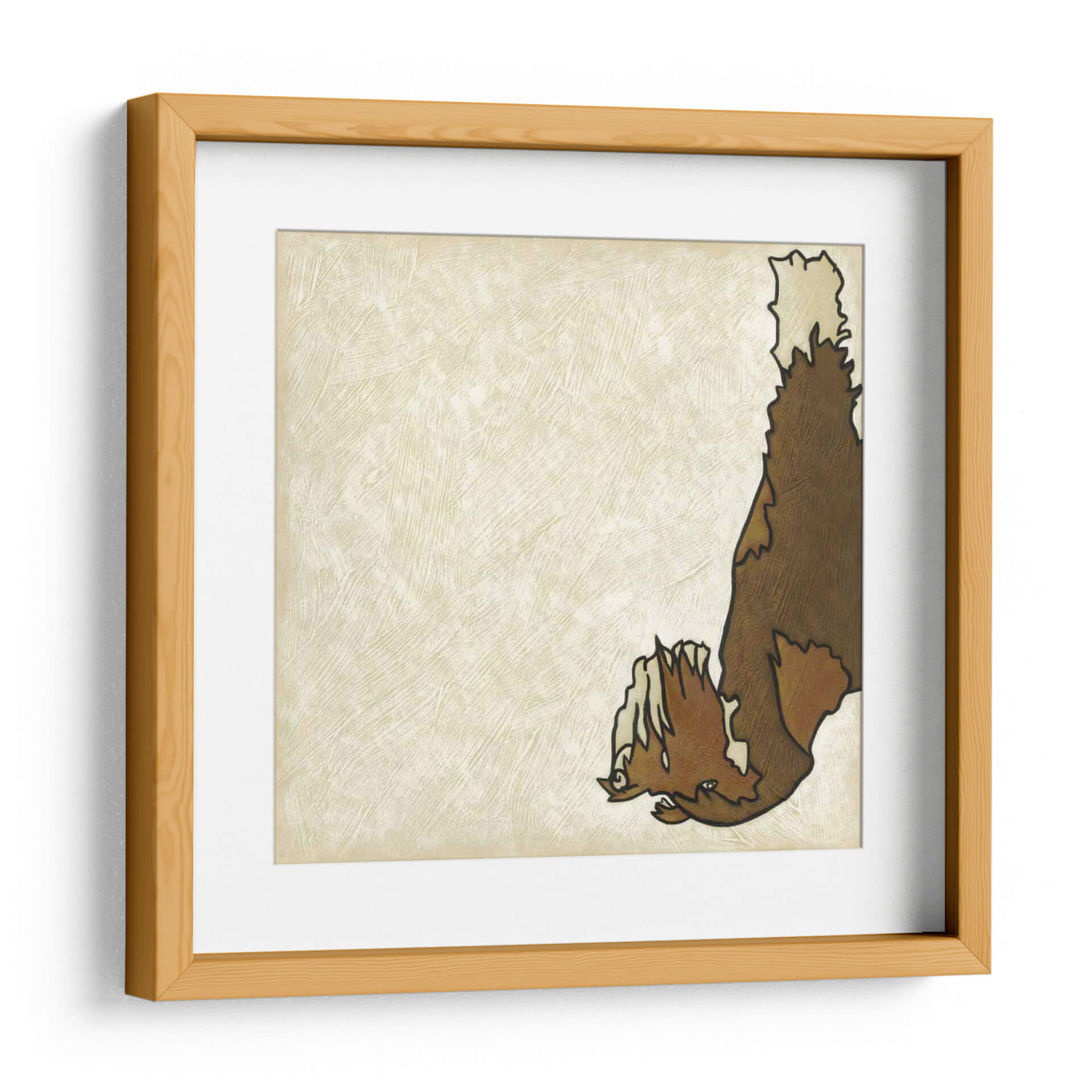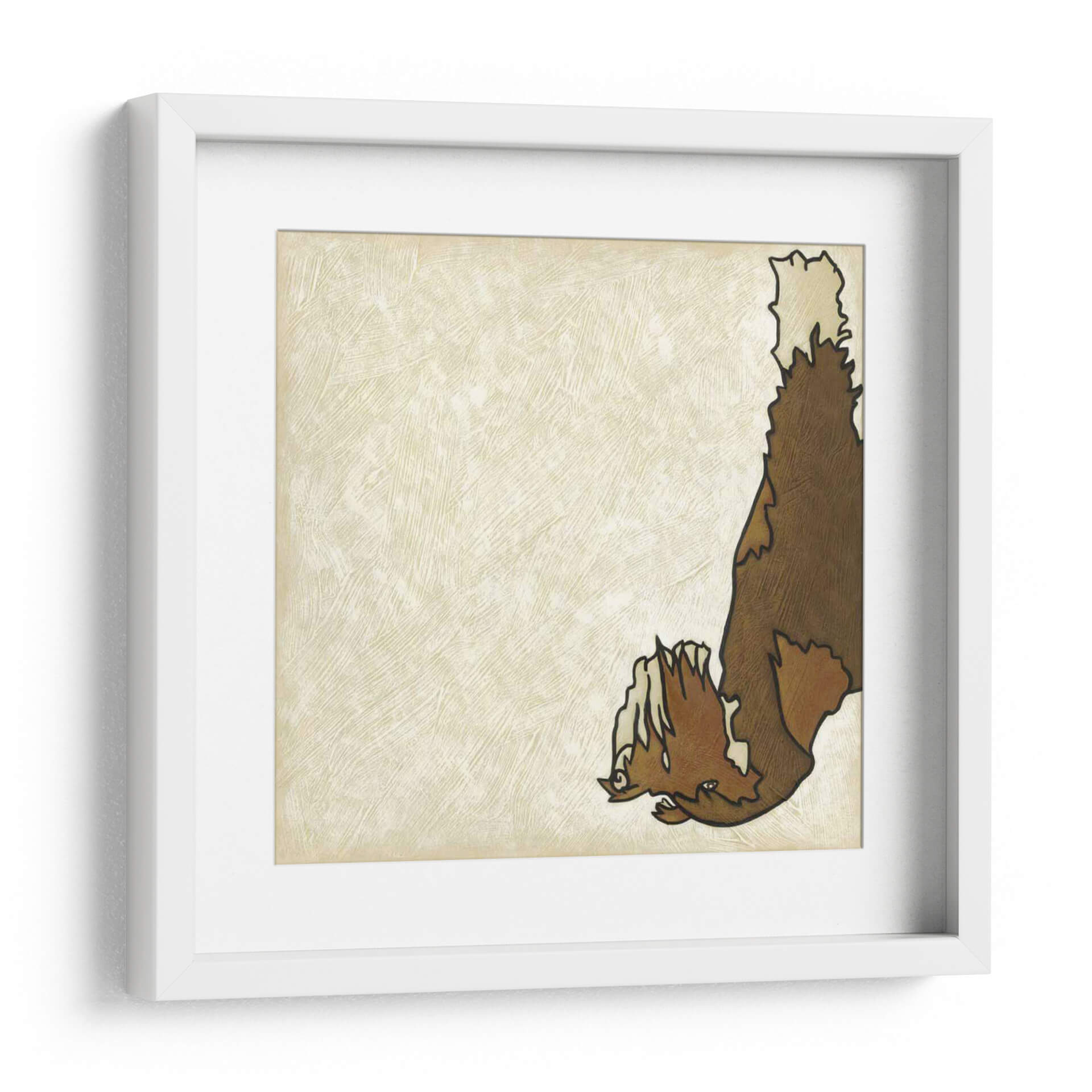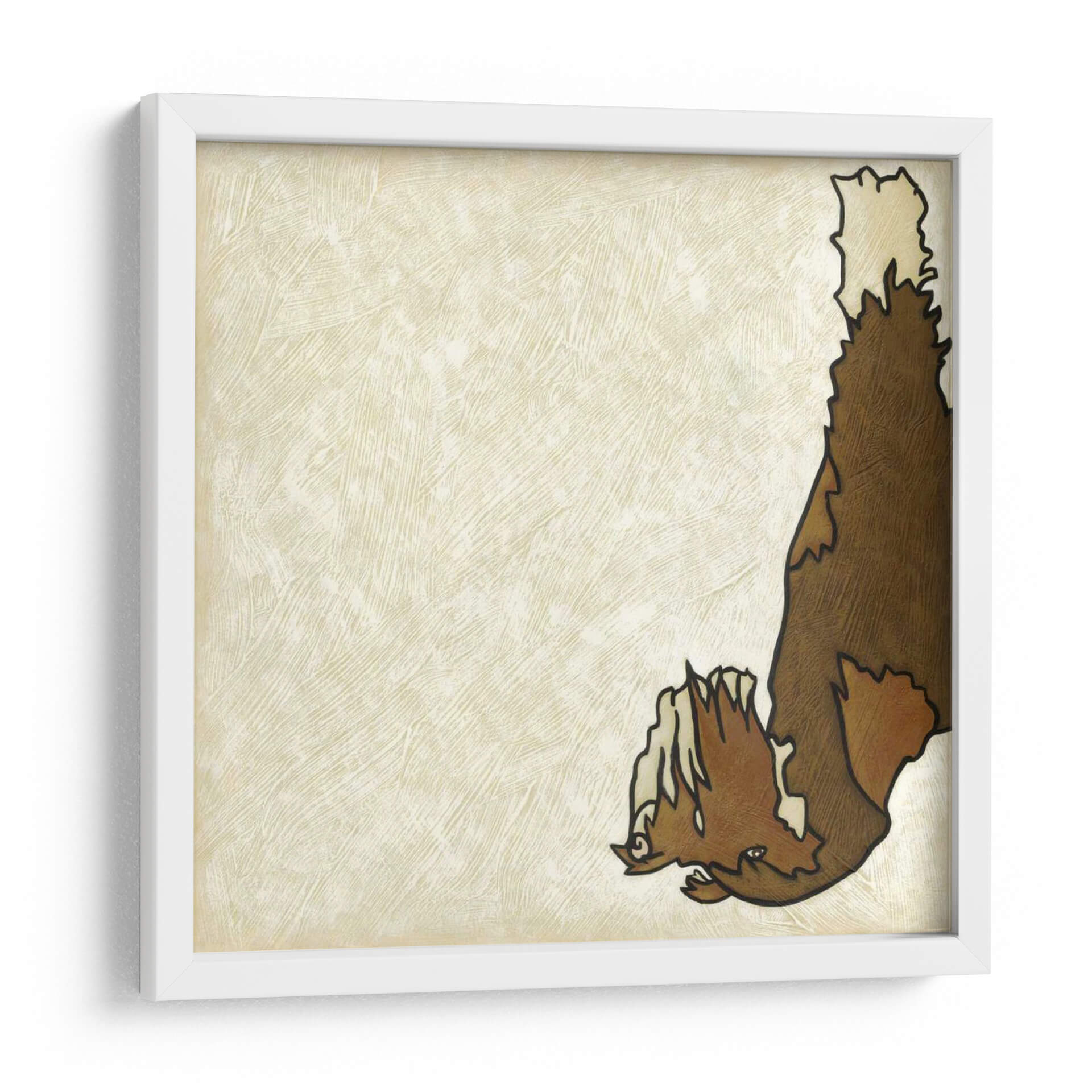 Descubre "Buen Perro Vi", una obra de arte contemporáneo de Chariklia Zarris que evoca ternura y un estilo distintivo. Este cuadro decorativo presenta una representación estilizada de un perro, destacando su pelaje detallado en tonos marrones y cremas sobre un fondo texturizado en color marfil. La composición minimalista y la paleta de colores cálidos y neutros otorgan a esta pieza una versatilidad excepcional, permitiendo que se integre armoniosamente en una amplia gama de decoraciones interiores. El estilo gráfico y la línea de contorno audaz definen la figura, creando un punto de interés visual sin abrumar el espacio. Es una elección perfecta para añadir un toque de personalidad y calidez a tu salón, dormitorio o incluso a un espacio de trabajo. "Buen Perro Vi" no es solo una imagen, es una expresión de lealtad y compañía que resonará con los amantes de los animales y del arte moderno. Su estética limpia y su temática entrañable la convierten en un regalo ideal o en una adición significativa a tu colección de arte mural, aportando carácter y un aire acogedor a cualquier rincón.