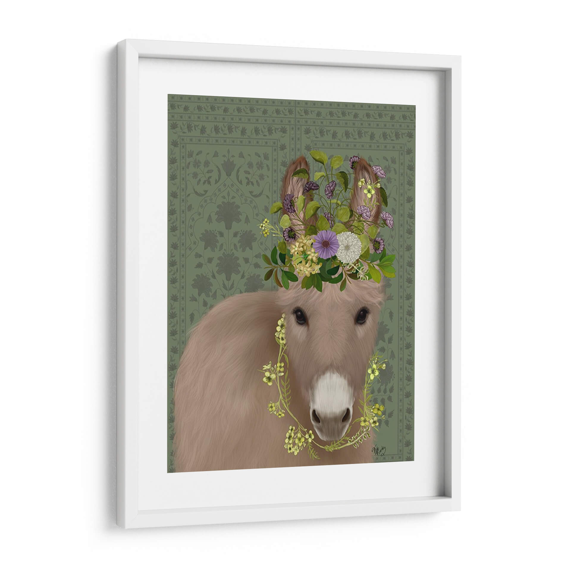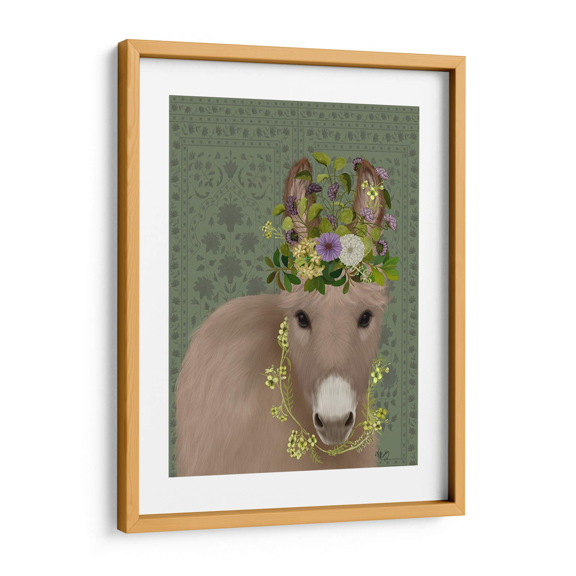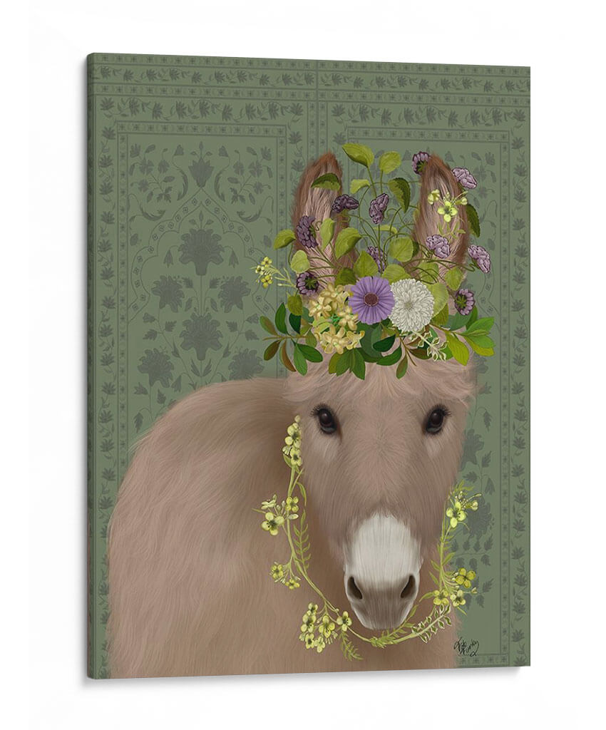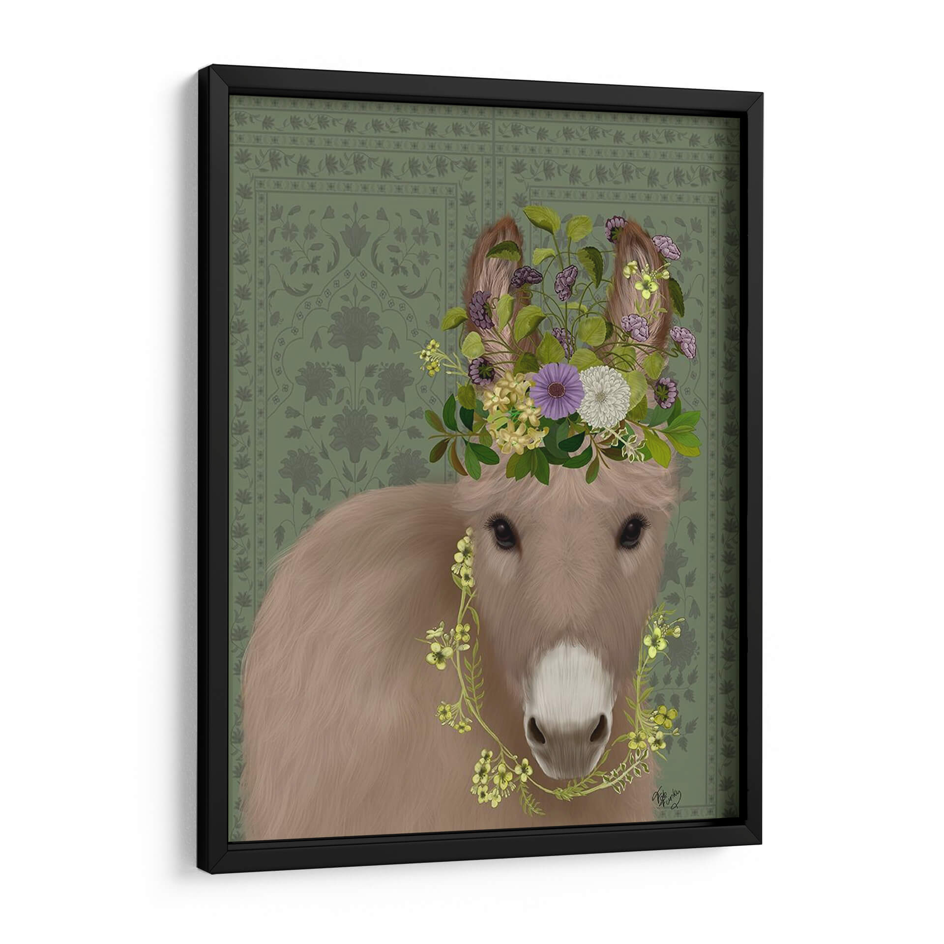 Sumérgete en la encantadora obra de arte 'Burro Bohemio 2' de Fab Funky, una pieza que fusiona la dulzura animal con la elegancia floral. Este cuadro decorativo presenta un tierno burro adornado con una exuberante corona de flores silvestres y un delicado collar floral, creando una imagen llena de ternura y un aire bohemio chic. El fondo texturizado en tonos verdes musgo, con un sutil patrón damasco, complementa la paleta de colores suave de la figura central, destacando las flores en tonos púrpuras, blancos y amarillos que contrastan armoniosamente con el pelaje del animal. El estilo es una mezcla de realismo detallado en la figura del burro y un toque ilustrativo en los elementos florales, resultando en una pieza única que evoca paz y serenidad. Ideal para añadir un toque de originalidad y calidez a salones, dormitorios o estudios, este cuadro es perfecto para quienes buscan una decoración que hable de naturaleza, estilo y un espíritu libre. Su composición centrada y el diseño evocador lo convierten en un punto focal atractivo y conversacional, capaz de transformar cualquier espacio en un refugio de tranquilidad y buen gusto artístico. Añade esta obra maestra a tu colección y deja que su encanto bohemio ilumine tu hogar.