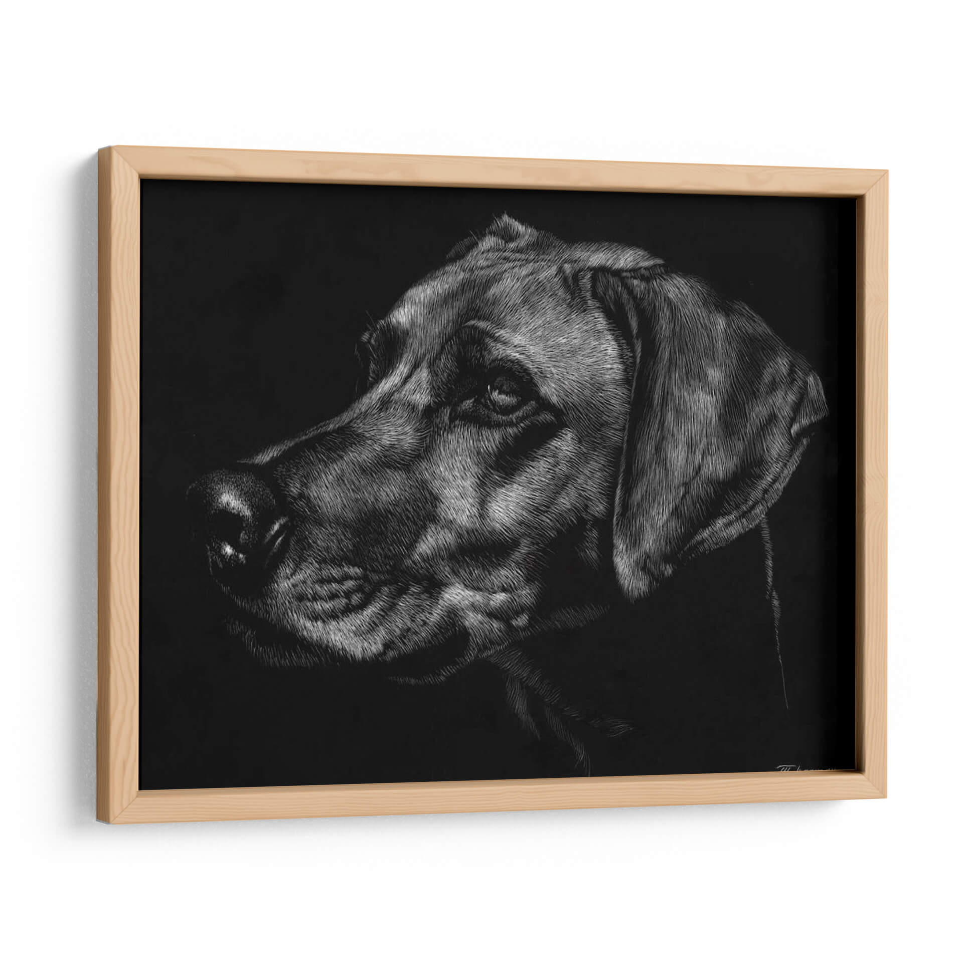 Captura la esencia leal y la mirada profunda de un compañero canino con "Canino Scratchboard Xxviii", una obra maestra de arte de pared que evoca la nobleza y la conexión animal. Esta pieza, creada por la talentosa Julie T. Chapman, se distingue por su técnica de scratchboard, donde finas líneas blancas sobre un fondo negro profundo dan vida a la textura del pelaje y a la expresión melancólica del perro. Los contrastes dramáticos y la paleta monocromática confieren a este cuadro una atmósfera sofisticada y atemporal, ideal para añadir un toque de carácter y elegancia a cualquier espacio. Su realismo detallado y el enfoque íntimo en el rostro del animal lo convierten en un punto focal cautivador para salones, estudios o entradas. Este cuadro decorativo es perfecto para amantes de los perros, aficionados al arte realista o para aquellos que buscan una pieza que inspire introspección y calidez. La obra "Canino Scratchboard Xxviii" no es solo una decoración, es una ventana a la profunda conexión entre humanos y animales, aportando profundidad y personalidad a tu hogar.