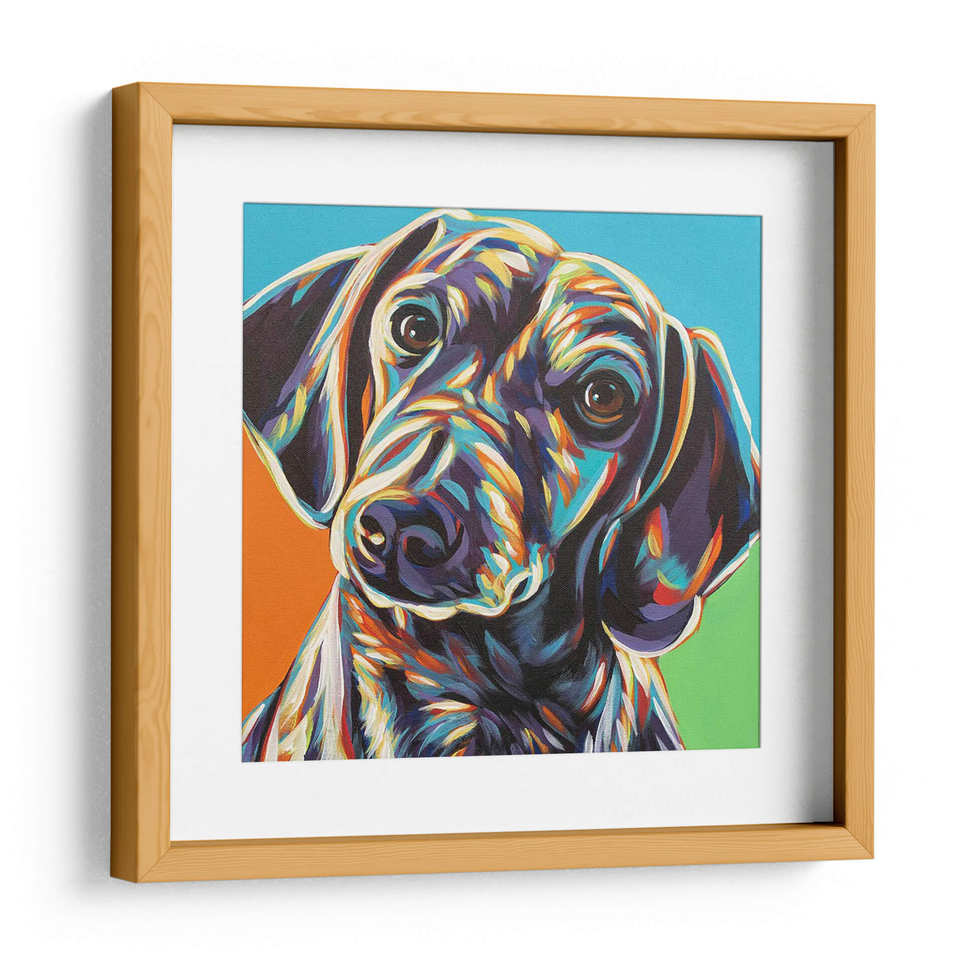 Transforma tu espacio con este vibrante cuadro decorativo del artista Carolee Vitaletti, titulado "Dachshund Pintado II". Esta obra captura la esencia juguetona y leal de un perro salchicha a través de una explosión de colores audaces y trazos expresivos. La paleta, que abarca desde azules eléctricos y verdes intensos hasta naranjas cálidos y toques de morado y amarillo, dota a la figura de una energía dinámica y moderna. El estilo, que fusiona elementos del arte pop con una pincelada suelta y casi abstracta, crea una pieza que es a la vez reconocible y sorprendentemente original. Las texturas sugeridas por las pinceladas añaden profundidad y movimiento, haciendo que la mirada del perro parezca cobrar vida. Este cuadro es ideal para añadir un punto focal lleno de personalidad a salas de estar, estudios o cualquier rincón que necesite un toque de alegría y color. Su composición, centrada en el rostro expresivo del dachshund, invita a la conexión y al afecto. Si buscas arte de pared que celebre la lealtad canina con un giro contemporáneo y artístico, "Dachshund Pintado II" es una elección excepcional que resonará con amantes de los animales y del arte moderno por igual. Es más que una simple decoración; es una declaración de estilo y emoción.