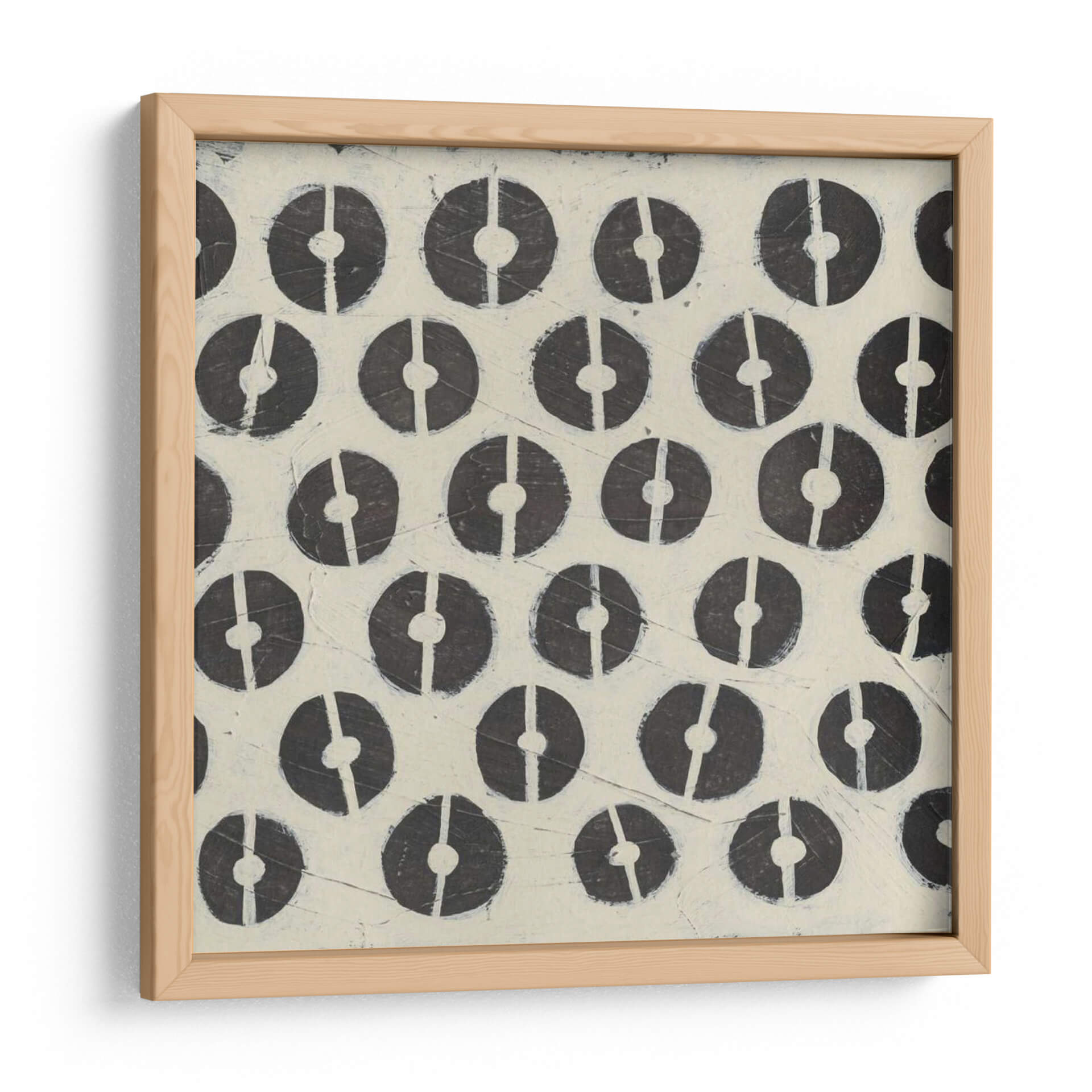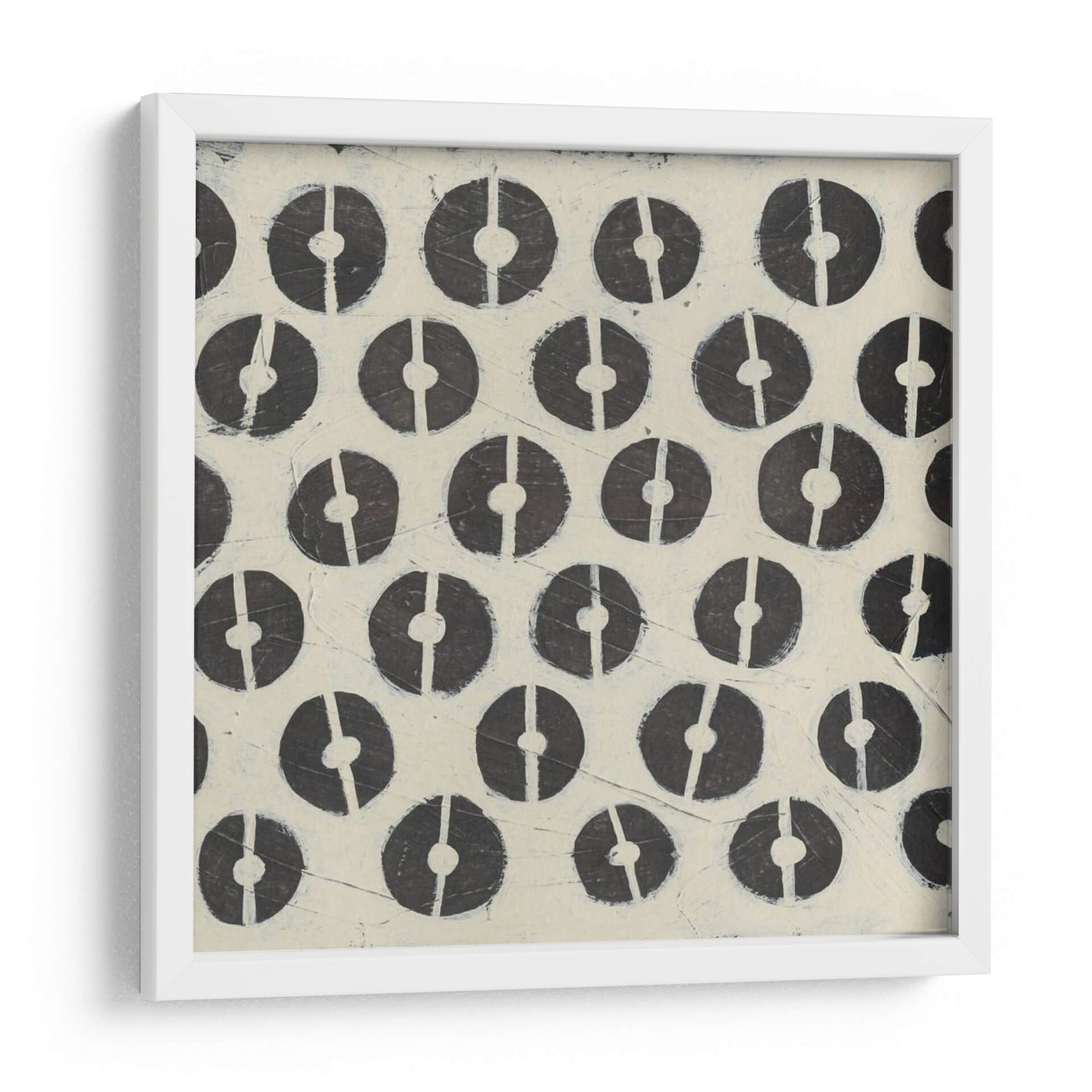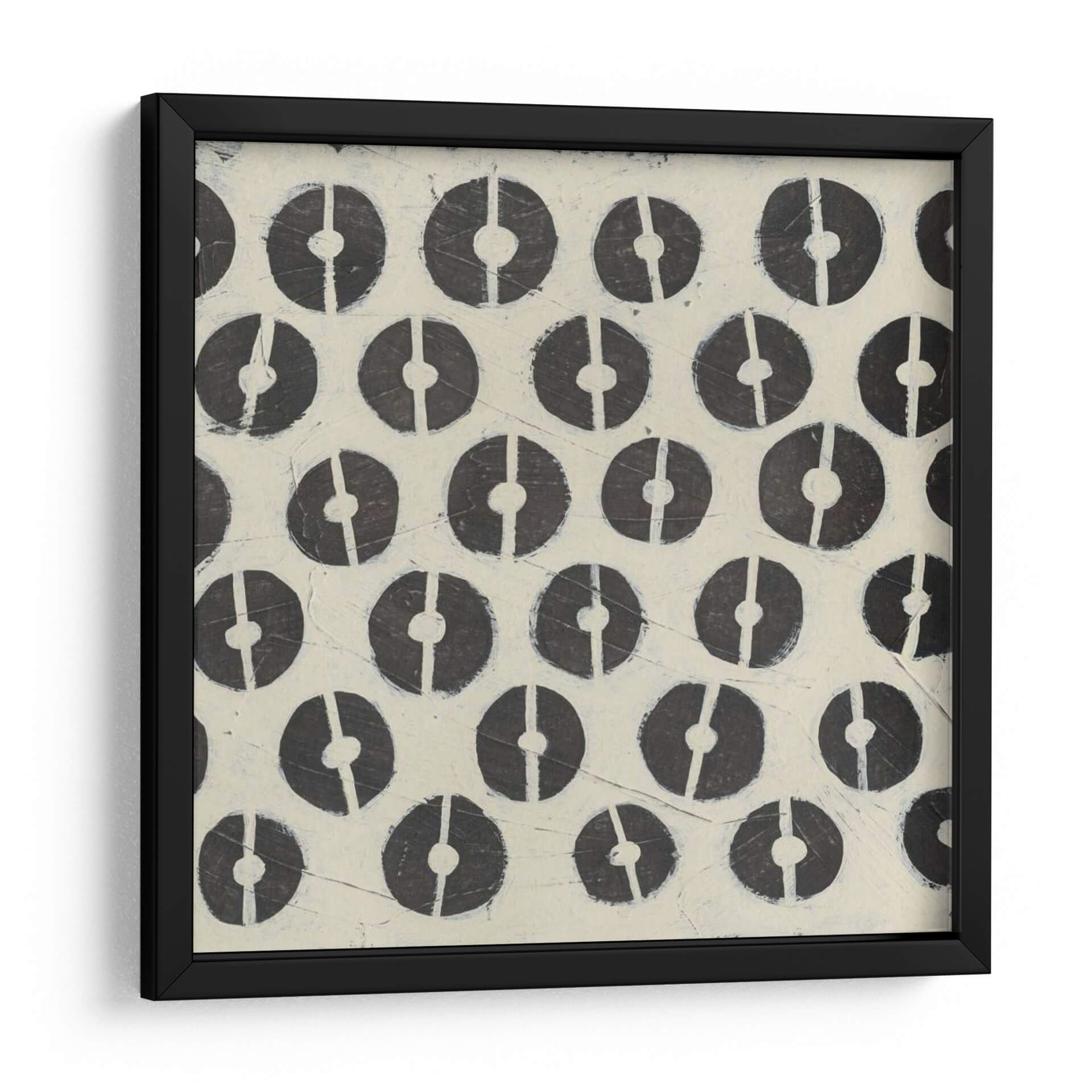 Descubre la obra de arte 'Destructor' de Megan Meagher, una pieza intrigante que fusiona patrones geométricos con una estética contemporánea y minimalista. Este cuadro decorativo presenta una repetición rítmica de círculos incompletos en tonos oscuros sobre un fondo texturizado de color crema o marfil. La composición, caracterizada por su orden y simetría, crea una sensación de calma visual y orden, a pesar del nombre evocador de la obra. Las sutiles imperfecciones y la textura en el fondo añaden profundidad y un toque artesanal, sugiriendo un proceso de creación manual y cuidadoso. El contraste entre los círculos oscuros y el fondo claro genera un impacto visual sutil pero cautivador, ideal para espacios que buscan un equilibrio entre la modernidad y la calidez. Esta obra es perfecta para añadir un toque de sofisticación discreta a tu sala de estar, oficina o dormitorio, sirviendo como un punto focal sereno o complementando una decoración existente. Su diseño abstracto y la paleta de colores neutros la convierten en una pieza versátil, capaz de integrarse en diversos estilos decorativos, desde el escandinavo hasta el contemporáneo. La obra 'Destructor' invita a la contemplación, ofreciendo una experiencia visual que es a la vez estimulante y relajante, un testimonio del talento de Megan Meagher para crear arte que resuena en el hogar.