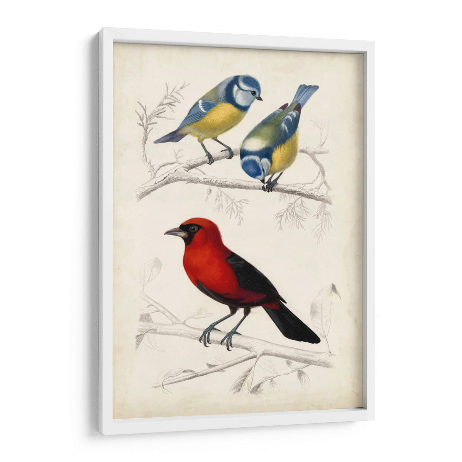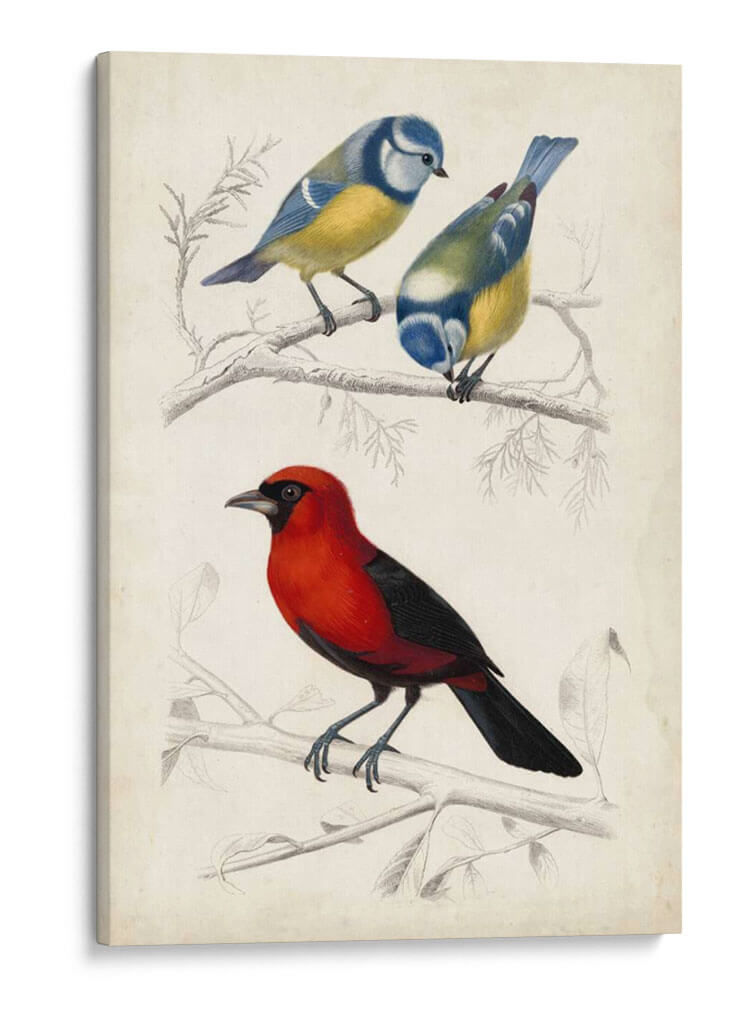 Embellece tu hogar con el encanto clásico de "Dorbigny Birds Iii", una obra maestra de M. Charles D Orbigny. Este cuadro decorativo captura la delicadeza de la naturaleza con un estilo que evoca la ilustración científica antigua, pero con un toque artístico moderno. La composición presenta tres aves detalladamente representadas, posadas sobre ramas esbeltas. Un pájaro de un vibrante color rojo carmesí, con alas y cola de un negro intenso, domina la parte inferior, mientras que dos pequeños pájaros azules y amarillos, con sus distintivos picos oscuros, se posan elegantemente en una rama superior. La paleta de colores se basa en tonos suaves y naturales, con un fondo que simula papel envejecido, lo que confiere a la pieza una atmósfera serena y atemporal. El trazo fino y la precisión en el detalle resaltan la belleza intrínseca de cada ave. Este cuadro es perfecto para añadir un toque de elegancia natural a cualquier espacio, ya sea una sala de estar, un estudio o un dormitorio. Su estilo versátil lo hace ideal para decoraciones que van desde lo clásico hasta lo contemporáneo, aportando calma y sofisticación. Una adición exquisita para amantes de la naturaleza y el arte con un gusto refinado.