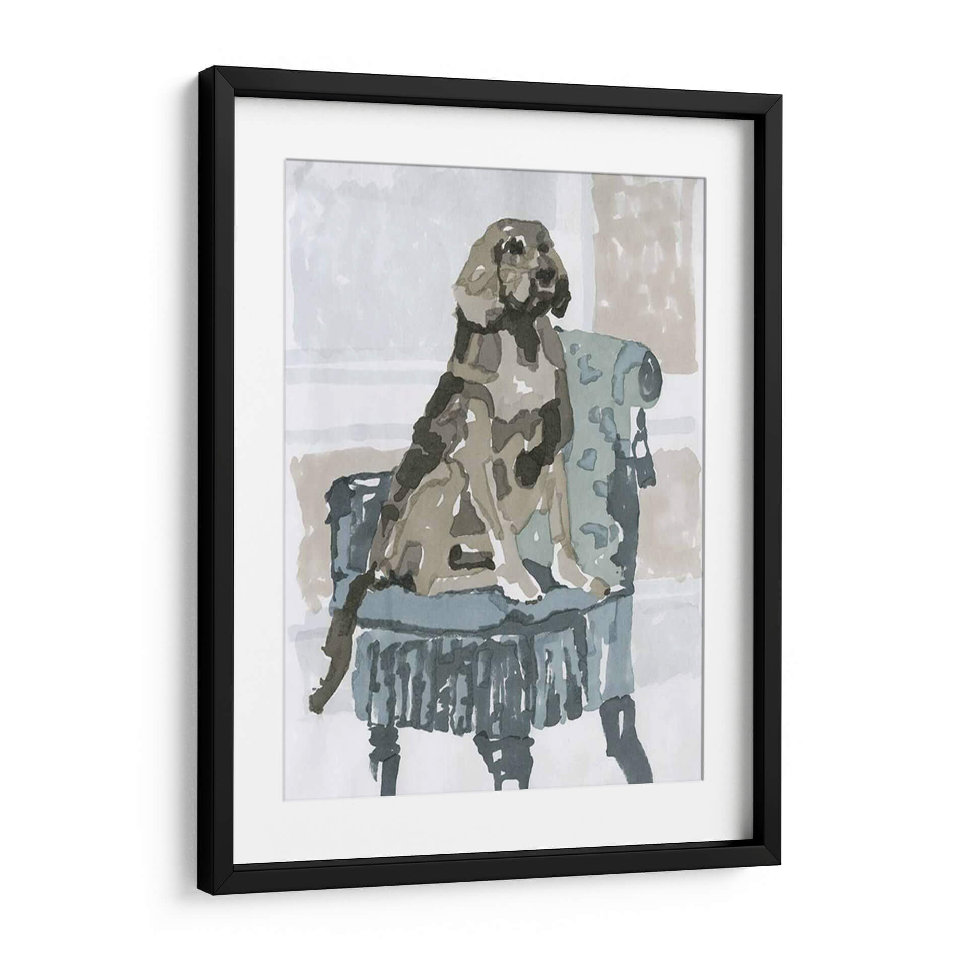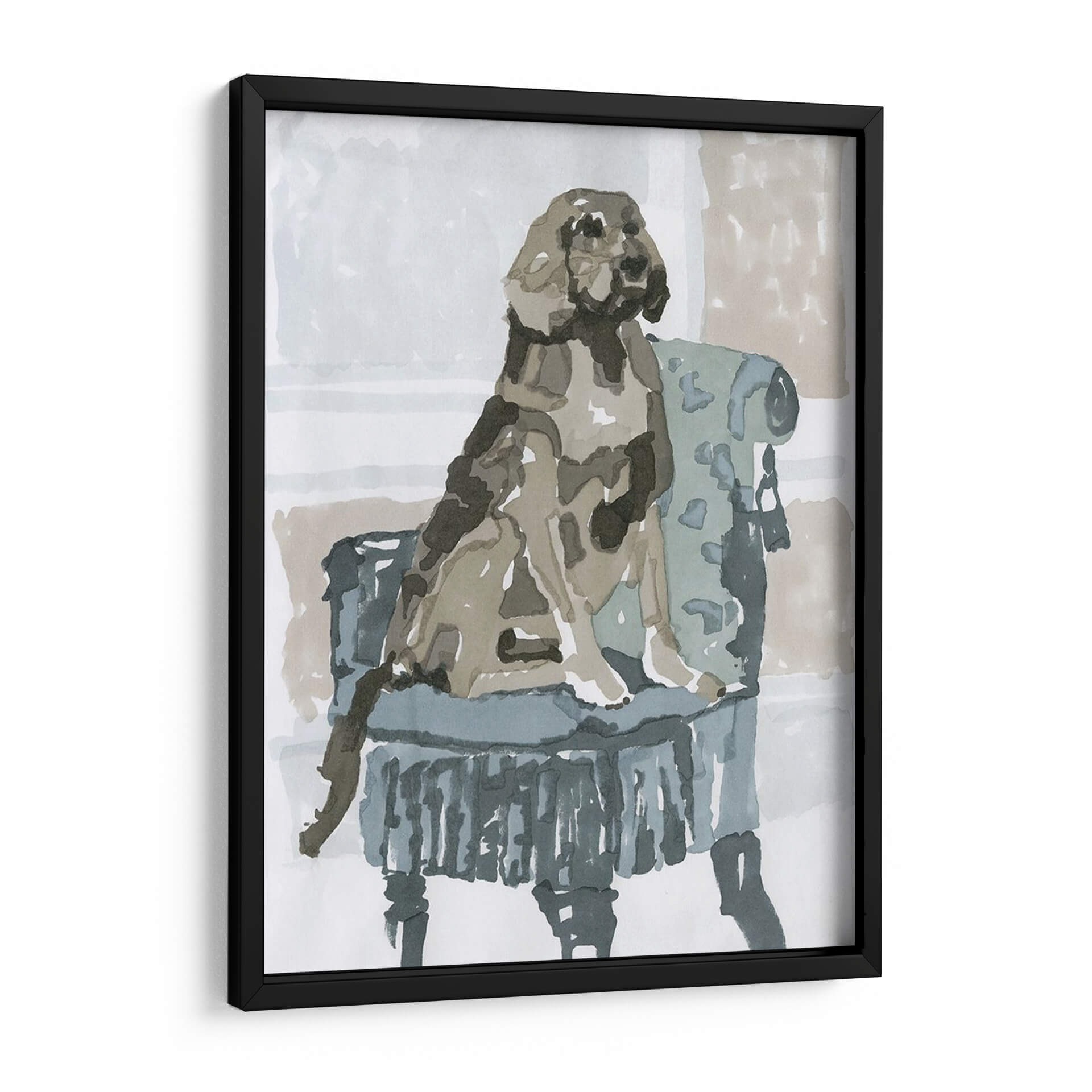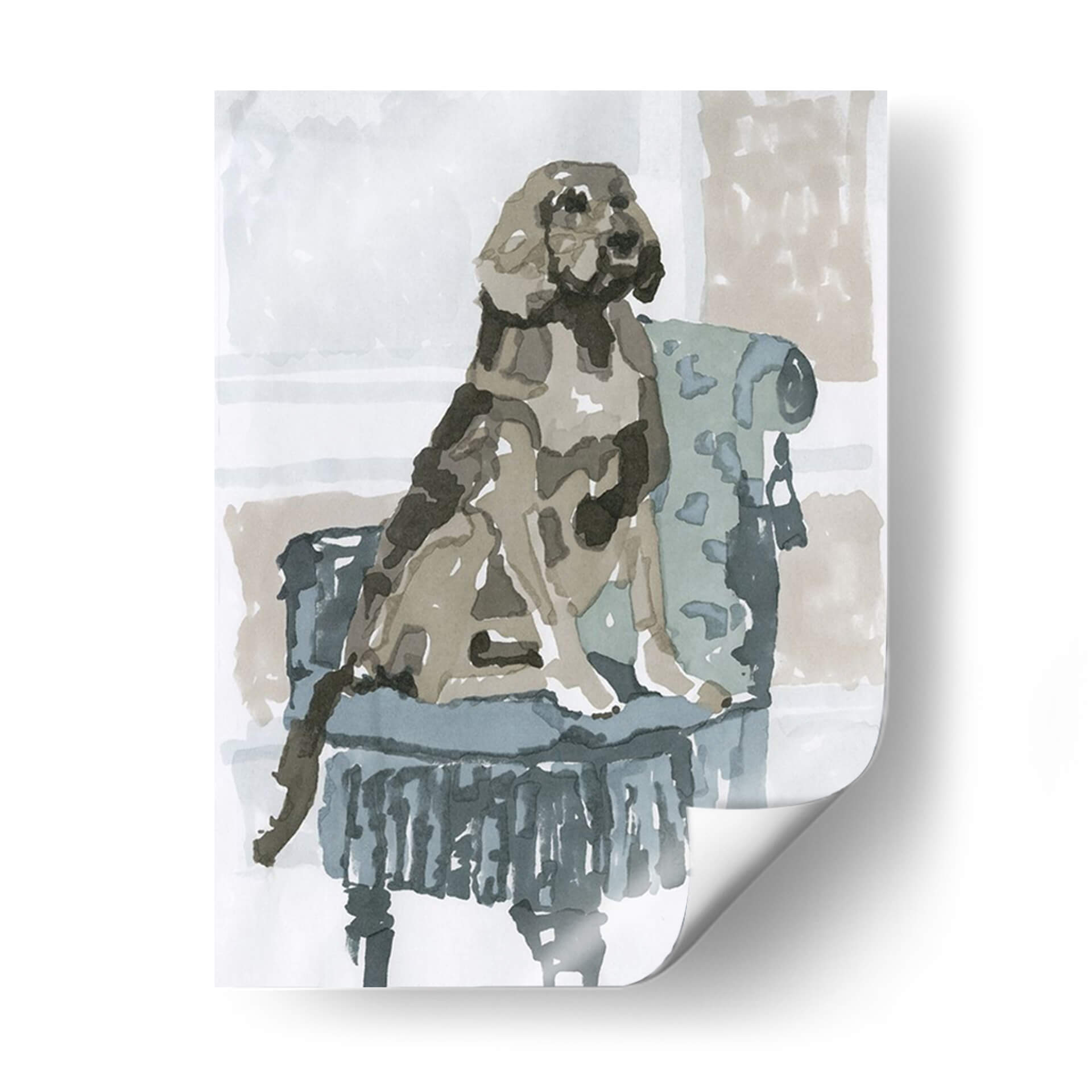 Sumérgete en la ternura y el estilo con "Estudio De Perro V", una obra de arte que captura la esencia de la compañía canina con una delicadeza excepcional. Esta pieza, creada por A.C. Warren, presenta un perro sentado majestuosamente en un sillón de época, ejecutado con una técnica que evoca la fluidez de la acuarela y la expresividad del trazo a mano alzada. La paleta de colores, dominada por tonos neutros y apacibles como grises, beiges y azules suaves, crea una atmósfera de calma y elegancia, perfecta para cualquier rincón de tu hogar u oficina. El artista ha logrado transmitir la personalidad del animal a través de pinceladas sueltas y una composición cuidadosa que centra la atención en el protagonista. Este cuadro decorativo es ideal para los amantes de los animales y aquellos que aprecian el arte contemporáneo con un toque clásico. Añade un aire de sofisticación y calidez a tu espacio vital, ya sea en la sala de estar, el dormitorio o el estudio, y deja que la mirada serena del perro invite a la contemplación y la paz. "Estudio De Perro V" no es solo una imagen, es una ventana a un momento de serena dignidad que embellecerá tu vida diaria.