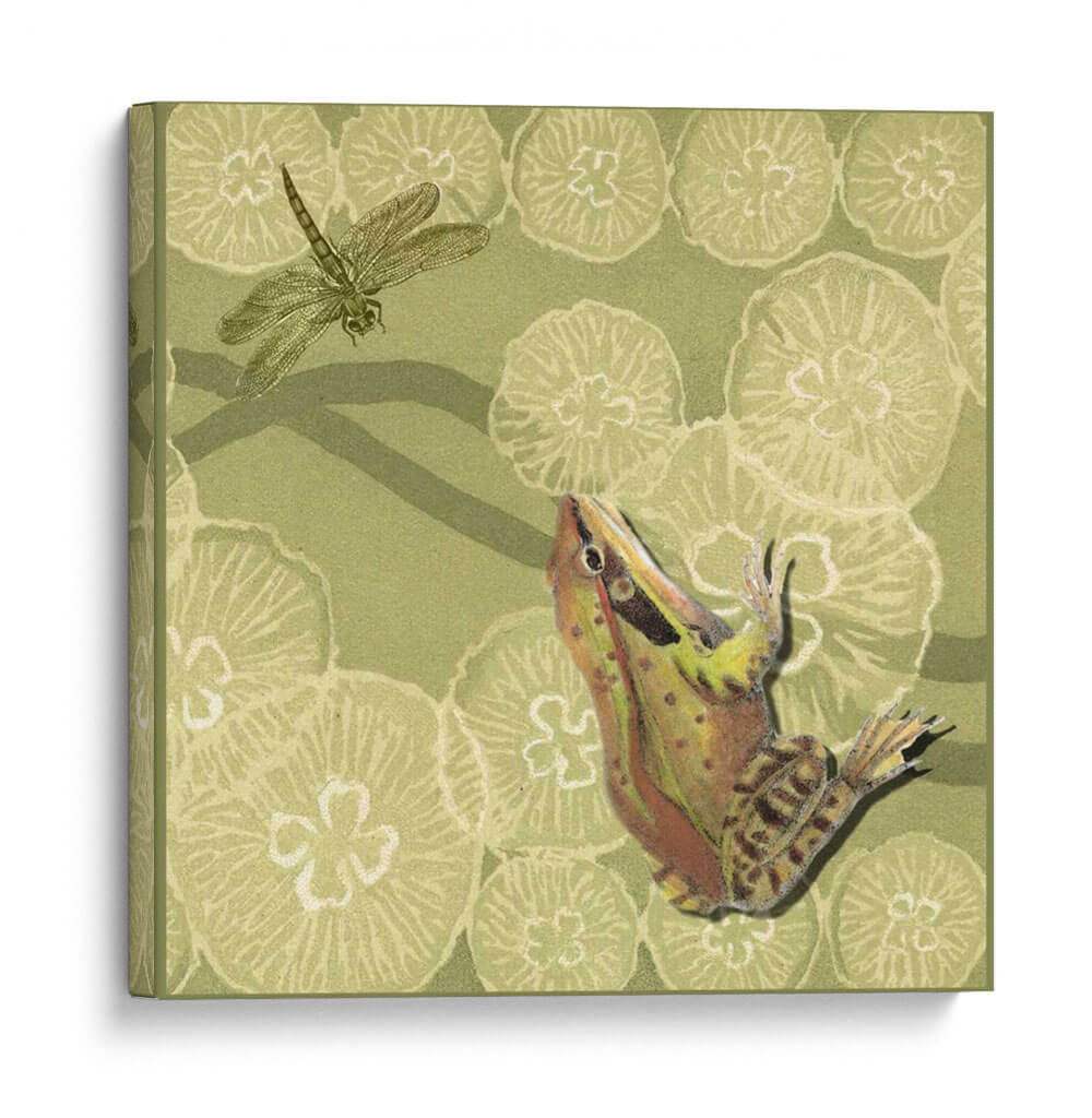 Sumérgete en la serenidad natural con "Fábula Rana I", una obra de arte decorativa que captura la esencia de un momento efímero en un estanque. Este cuadro presenta una rana vibrante, detalladamente ilustrada con tonos terrosos y verdes, en plena contemplación de una libélula que flota cerca. El fondo, compuesto por un patrón sutil de nenúfares en tonos pálidos sobre un verde suave, crea una atmósfera de tranquilidad y armonía. El estilo de la obra, que evoca ilustraciones botánicas vintage con un toque contemporáneo, la hace perfecta para añadir un elemento de la naturaleza a cualquier espacio. Ideal para salones, dormitorios o estudios que busquen un punto focal orgánico y lleno de vida, "Fábula Rana I" es una invitación a la calma y a la apreciación de los pequeños detalles del mundo natural. Añade un toque de encanto y sofisticación a tu decoración con esta pieza única.