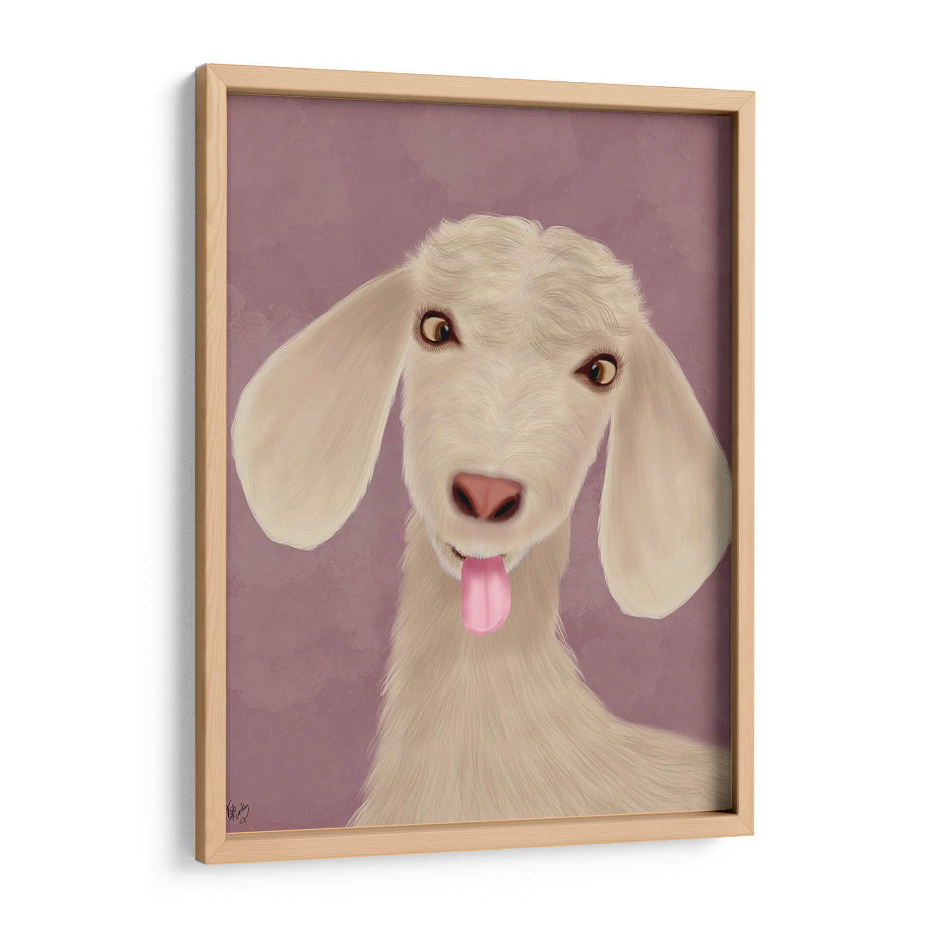 Dale vida a tus paredes con este encantador cuadro decorativo 'Funny Farm Goat 1' del artista Fab Funky. Esta obra de arte digital presenta un primer plano juguetón de una cabra blanca, con sus grandes ojos curiosos y una lengua rosada asomando traviesamente. La paleta de colores, dominada por tonos cremosos para la cabra y un fondo suave en color malva, crea una atmósfera alegre y desenfadada. El estilo de ilustración detallada, casi de cuento, captura la inocencia y el carácter juguetón del animal, haciendo de esta pieza una adición divertida y original a cualquier espacio. Es ideal para añadir un toque de humor y personalidad a una habitación infantil, una cocina moderna o una sala de estar que busque un acento singular. Este cuadro decorativo es perfecto para quienes aprecian el arte pop con un giro animalista y buscan piezas que generen conversación y sonrisas. Su composición centrada y expresiva asegura que atraiga la mirada, aportando una energía positiva y un aire de fantasía a tu decoración. Añade este toque de diversión a tu hogar y transforma tu ambiente con esta adorable cabra.