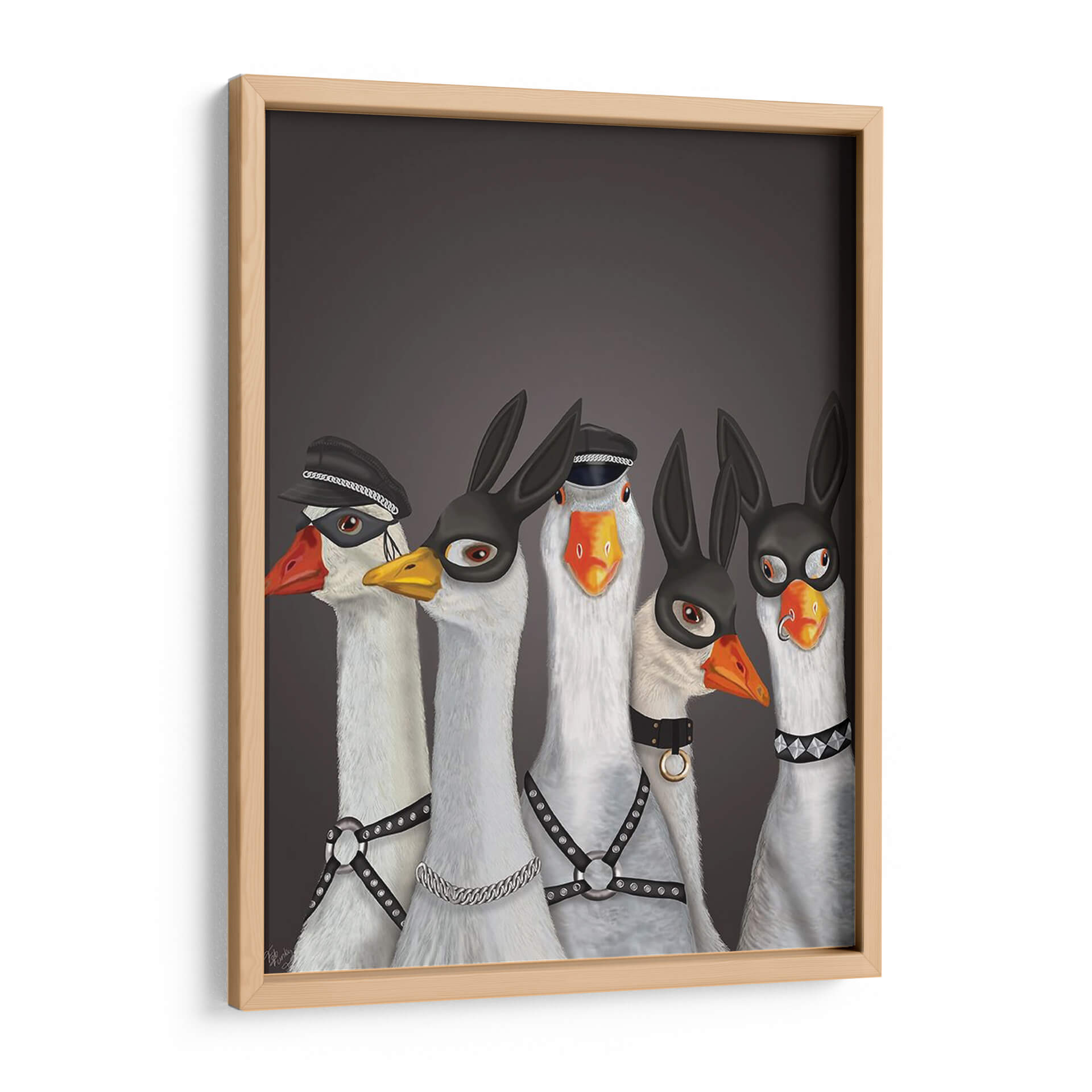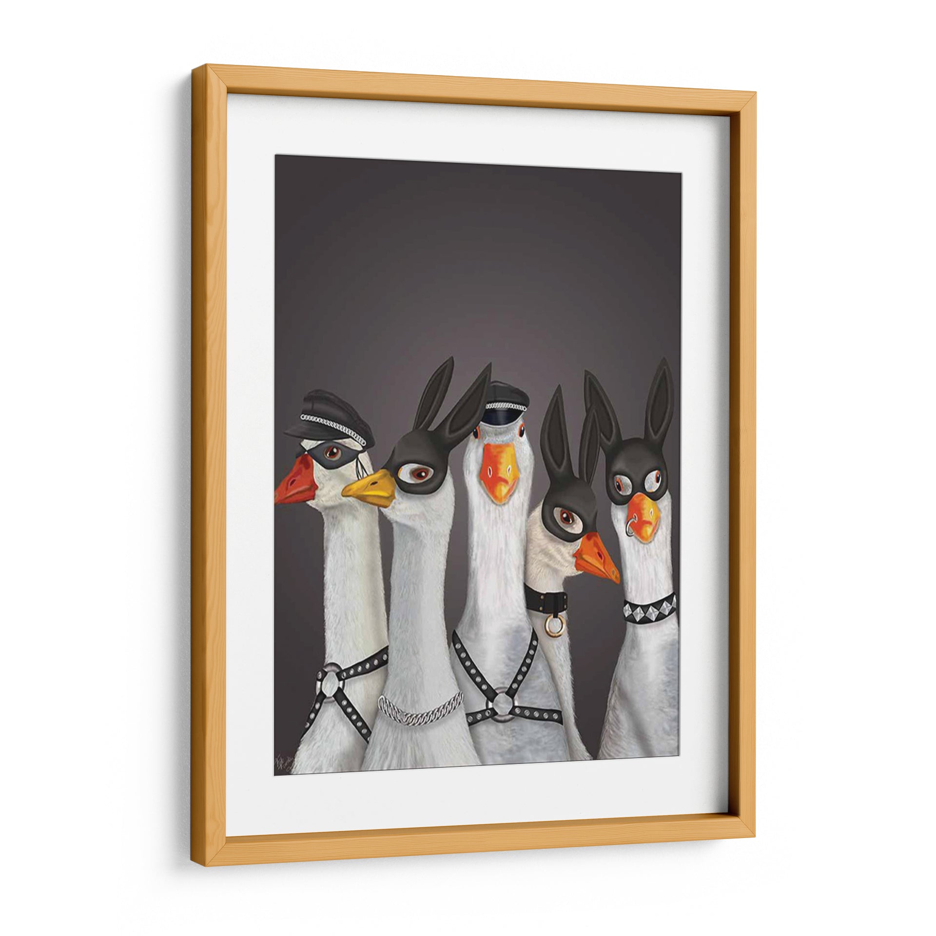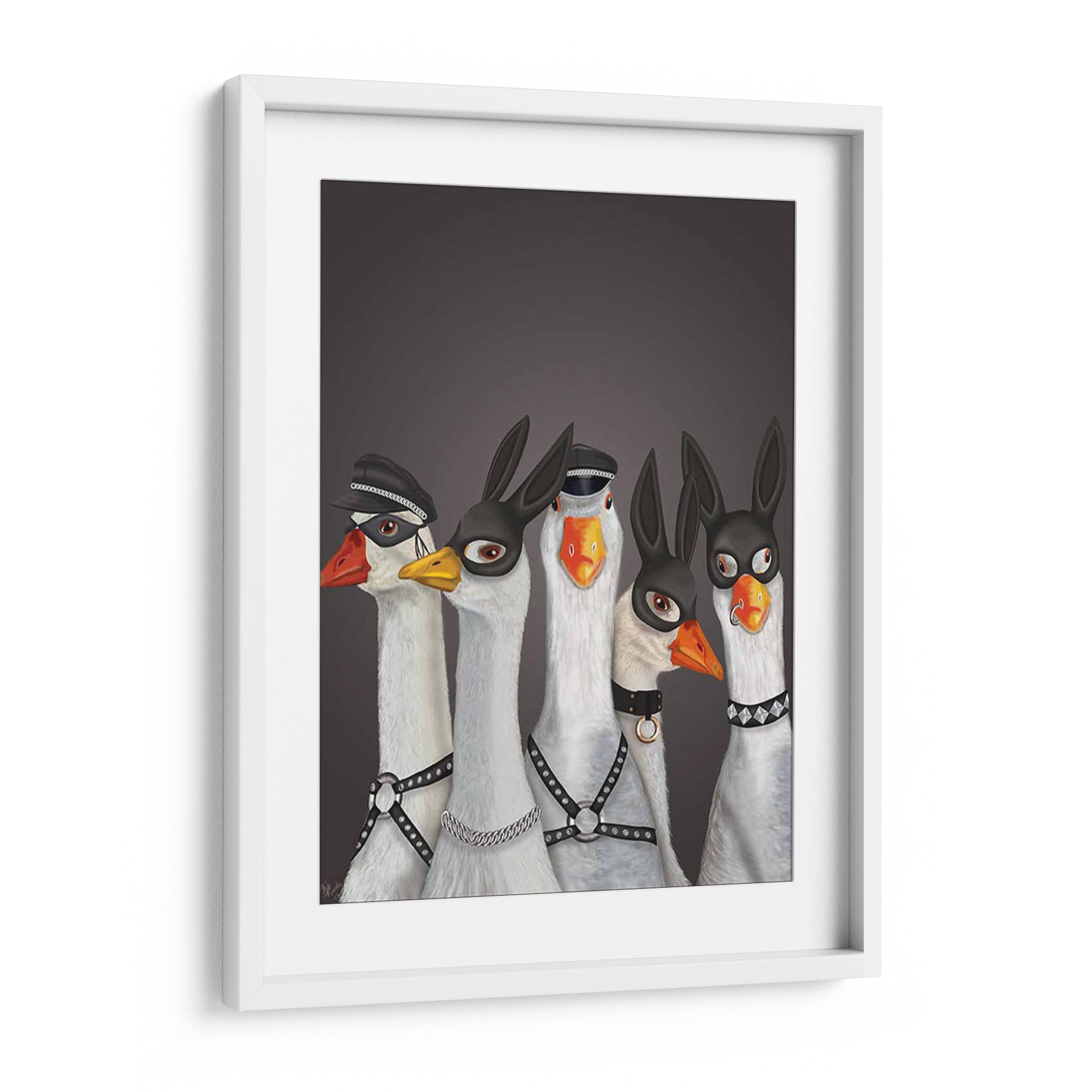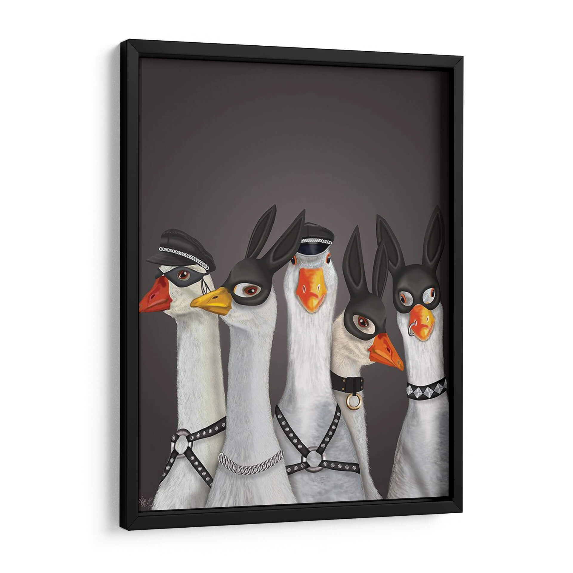 Transforma tu espacio con el enigmático cuadro decorativo "Gansos Chicos" del artista Fab Funky. Esta obra de arte digital presenta a un grupo de gansos con una estética audaz y vanguardista, luciendo accesorios que evocan un estilo rebelde y contemporáneo. La paleta de colores se centra en tonos neutros, con el blanco predominante de las aves contrastando con los detalles oscuros de sus atuendos y máscaras, y los vibrantes naranjas de sus picos. La composición, un primer plano grupal, dirige la mirada hacia las expresiones únicas de cada ganso, creando una atmósfera de intriga y humor. El estilo, una fusión de realismo con toques de surrealismo y pop art, garantiza que esta pieza sea un punto focal conversacional en cualquier habitación. Ideal para aquellos que buscan añadir un toque de originalidad y personalidad a su hogar u oficina, este cuadro decorativo es perfecto para salas de estar modernas, estudios creativos o incluso como un regalo inesperado y memorable para amantes del arte atrevido. Añade carácter y un toque de audacia a tu decoración con esta pieza única.