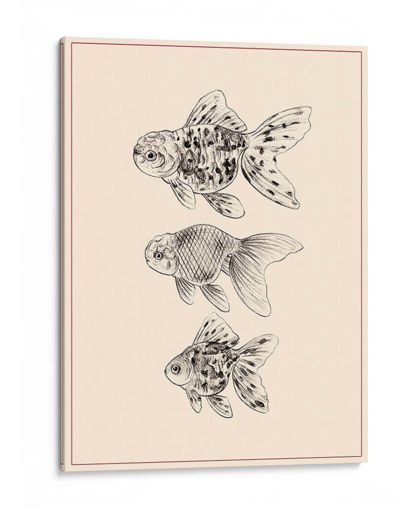 Sumérgete en la elegancia serena del cuadro decorativo 'Goldfish II' de Melissa Wang. Esta cautivadora obra de arte presenta tres peces dorados dibujados con un detalle exquisito y un trazo delicado que evoca la precisión de las ilustraciones botánicas clásicas. La paleta de colores, dominada por tonos neutros y suaves como el crema y el marfil, crea una atmósfera de calma y sofisticación, mientras que los detalles en negro de los peces añaden un contraste sutil pero impactante. La composición vertical, con los peces nadando en aparente armonía, aporta una sensación de movimiento y fluidez a cualquier espacio. Este cuadro decorativo es una elección perfecta para quienes buscan añadir un toque de naturaleza refinada y tranquilidad a su hogar u oficina. Ideal para salones, dormitorios o estudios, 'Goldfish II' se integra fácilmente en decoraciones minimalistas, escandinavas o de inspiración asiática, aportando una pieza central de conversación que irradia paz y belleza.