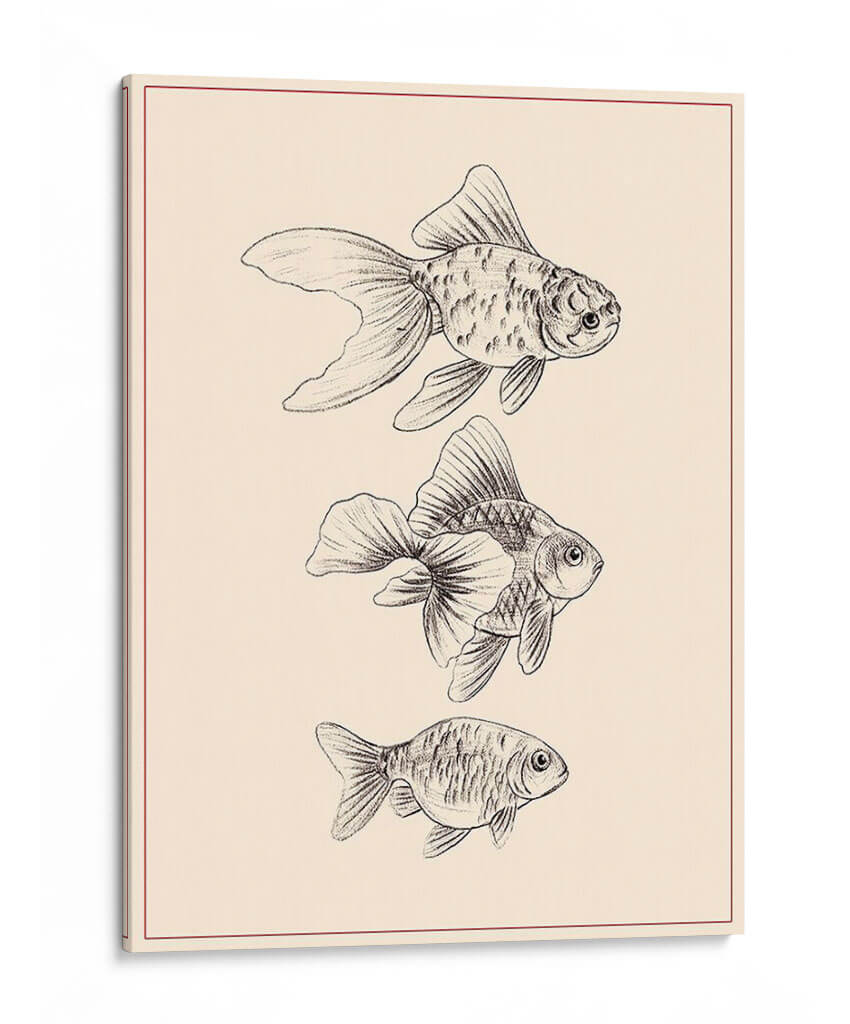 Sumérgete en la serena belleza de "Goldfish III" de Melissa Wang, una obra de arte que captura la gracia y el movimiento de los peces dorados con un estilo delicado y evocador. Este cuadro decorativo presenta tres peces dorados dibujados a mano alzada, dispuestos en una composición vertical que transmite una sensación de armonía y fluidez. La paleta de colores, dominada por tonos neutros y un sutil borde carmesí, crea una atmósfera de calma y elegancia, perfecta para cualquier espacio que busque un toque de sofisticación natural. El detallado trabajo de línea evoca la estética de las ilustraciones científicas clásicas, pero con una sensibilidad artística contemporánea que lo hace ideal para hogares modernos, oficinas zen o incluso como una pieza de acento en un baño inspirado en la naturaleza. "Goldfish III" es más que una simple decoración de pared; es una invitación a la contemplación, una ventana a la tranquilidad del mundo acuático que aportará vida y serenidad a tu decoración. Ideal para quienes aprecian el arte figurativo con un toque minimalista y un profundo respeto por la forma natural.