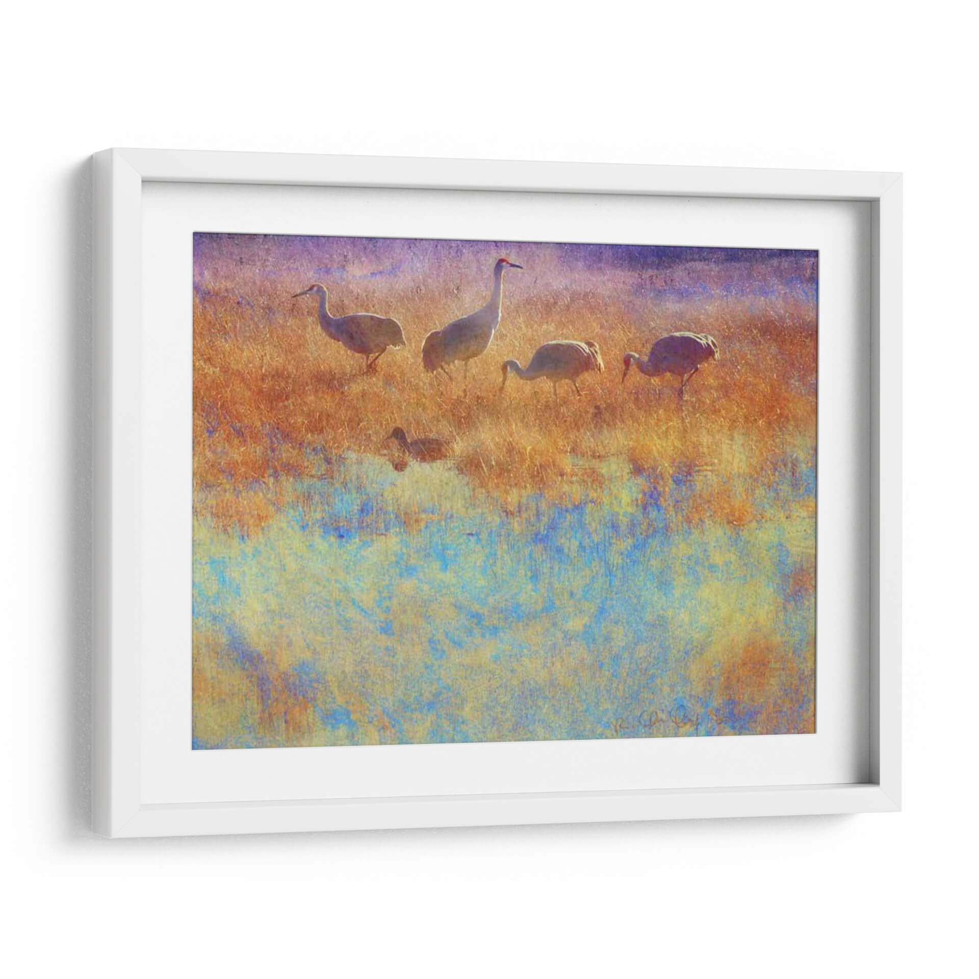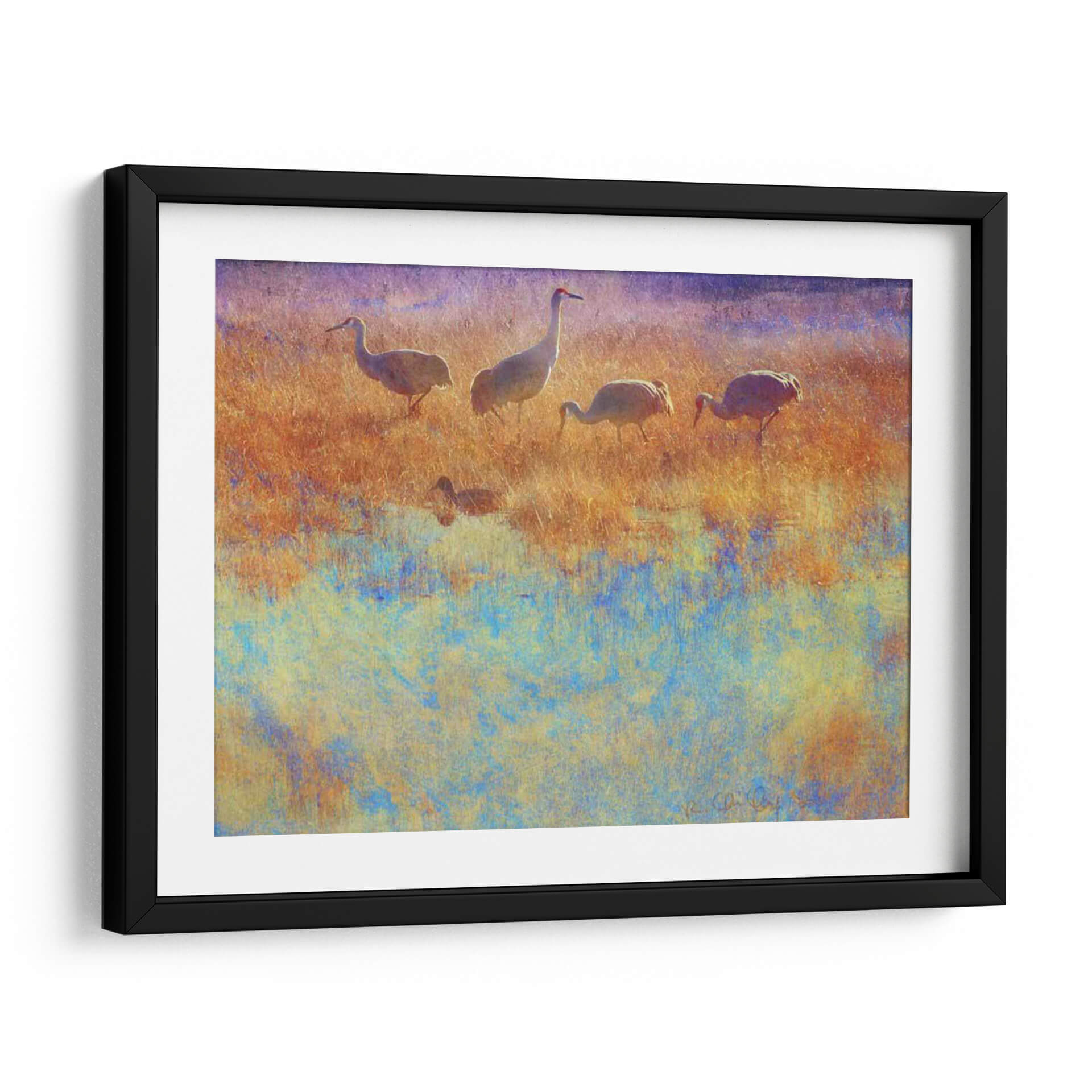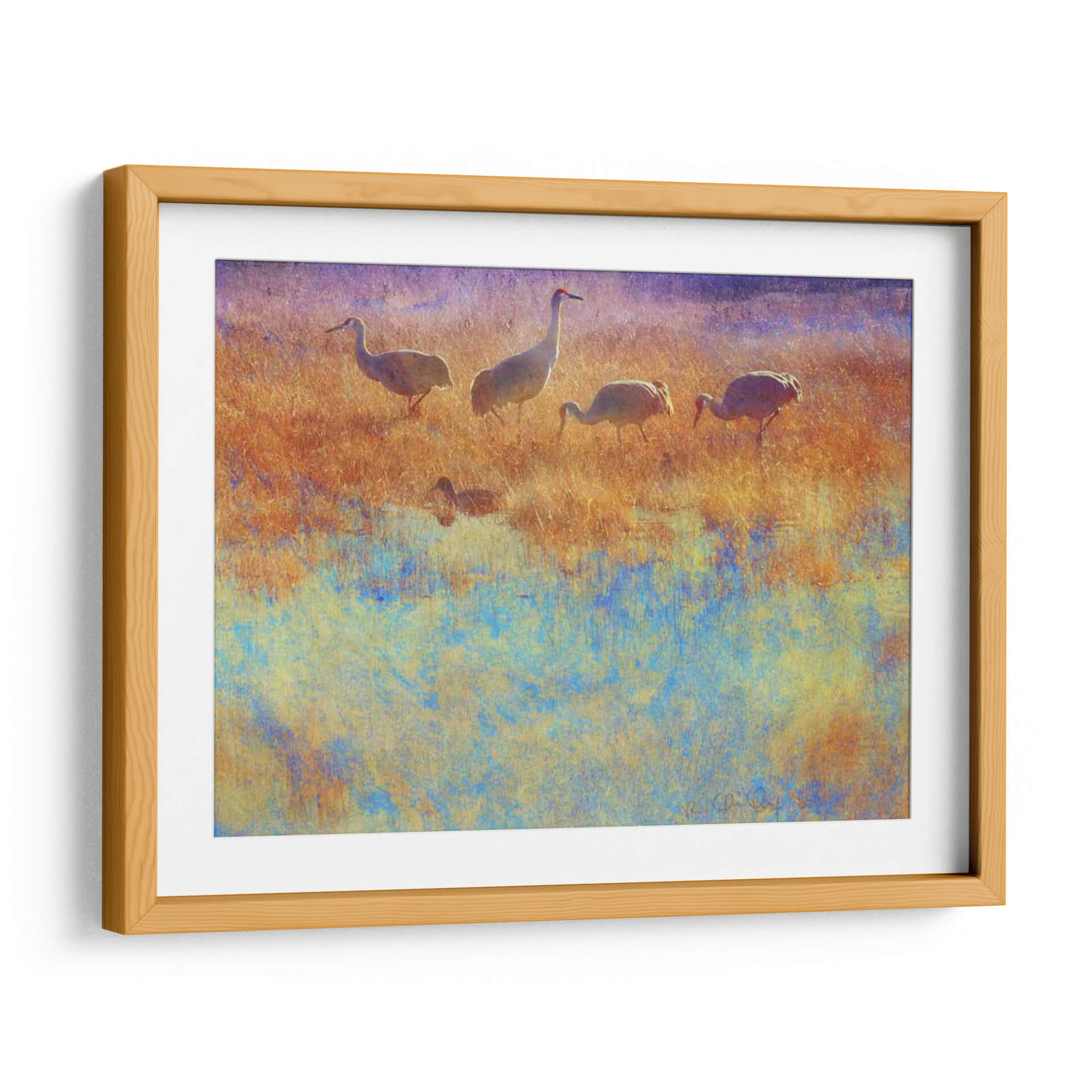 Sumérgete en la serena belleza de "Grúas en Niebla Suave", una obra de arte evocadora del artista Chris Vest. Esta cautivadora pieza transporta al espectador a un paisaje etéreo donde elegantes grúas se congregan en un entorno envuelto en una suave neblina. La paleta de colores, dominada por cálidos tonos ocres y dorados en la vegetación, contrasta sutilmente con las frías y vibrantes tonalidades azules y púrpuras del cielo y el reflejo en el agua, creando una atmósfera de paz y contemplación. La composición, con las grúas como protagonistas y la delicadeza de la niebla, sugiere un momento fugaz capturado en el tiempo, ideal para añadir un toque de tranquilidad y sofisticación natural a cualquier espacio. Este cuadro decorativo es perfecto para salones, dormitorios o estudios que busquen un punto focal que inspire calma y conexión con la naturaleza. Su estilo único, que fusiona realismo con una pincelada expresionista, añade profundidad y textura, invitando a la reflexión y al disfrute visual. Una adición artística que transformará tu hogar en un santuario de paz.