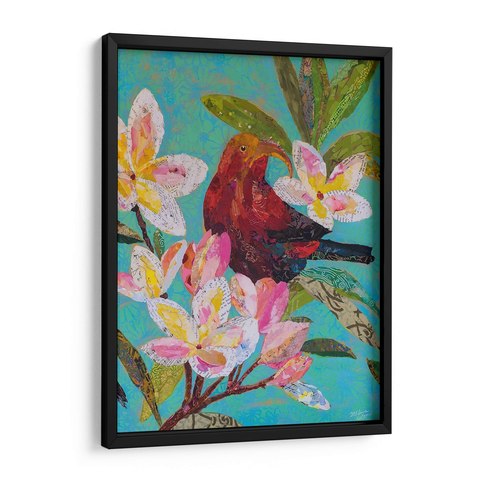 Sumérgete en la exuberante belleza tropical con nuestro cautivador cuadro decorativo 'Hawaiian Bird II'. Esta vibrante obra de arte, creada por la talentosa Elizabeth St. Hilaire, es un festín visual que captura la esencia de la vida silvestre con una técnica de collage única. El protagonista, un pájaro exótico en tonos rojizos y ocres, se posa majestuosamente entre delicadas flores de frangipani en tonos pastel de rosa y amarillo, contrastando maravillosamente con un fondo turquesa texturizado que evoca cielos serenos y aguas cristalinas. Cada pétalo y pluma está compuesto con intrincados recortes de papel, añadiendo profundidad y una dimensión táctil a la pieza. El estilo, que fusiona lo figurativo con elementos abstractos en el tratamiento del color y la textura, crea una atmósfera de alegría y vitalidad. Ideal para añadir un toque de naturaleza exótica y color a tu sala de estar, dormitorio o estudio, este cuadro decorativo es una invitación a transportarse a un paraíso tropical. Su composición equilibrada y la rica paleta de colores lo convierten en una pieza versátil, perfecta para espacios modernos o bohemios que buscan inspiración y un estallido de vida.