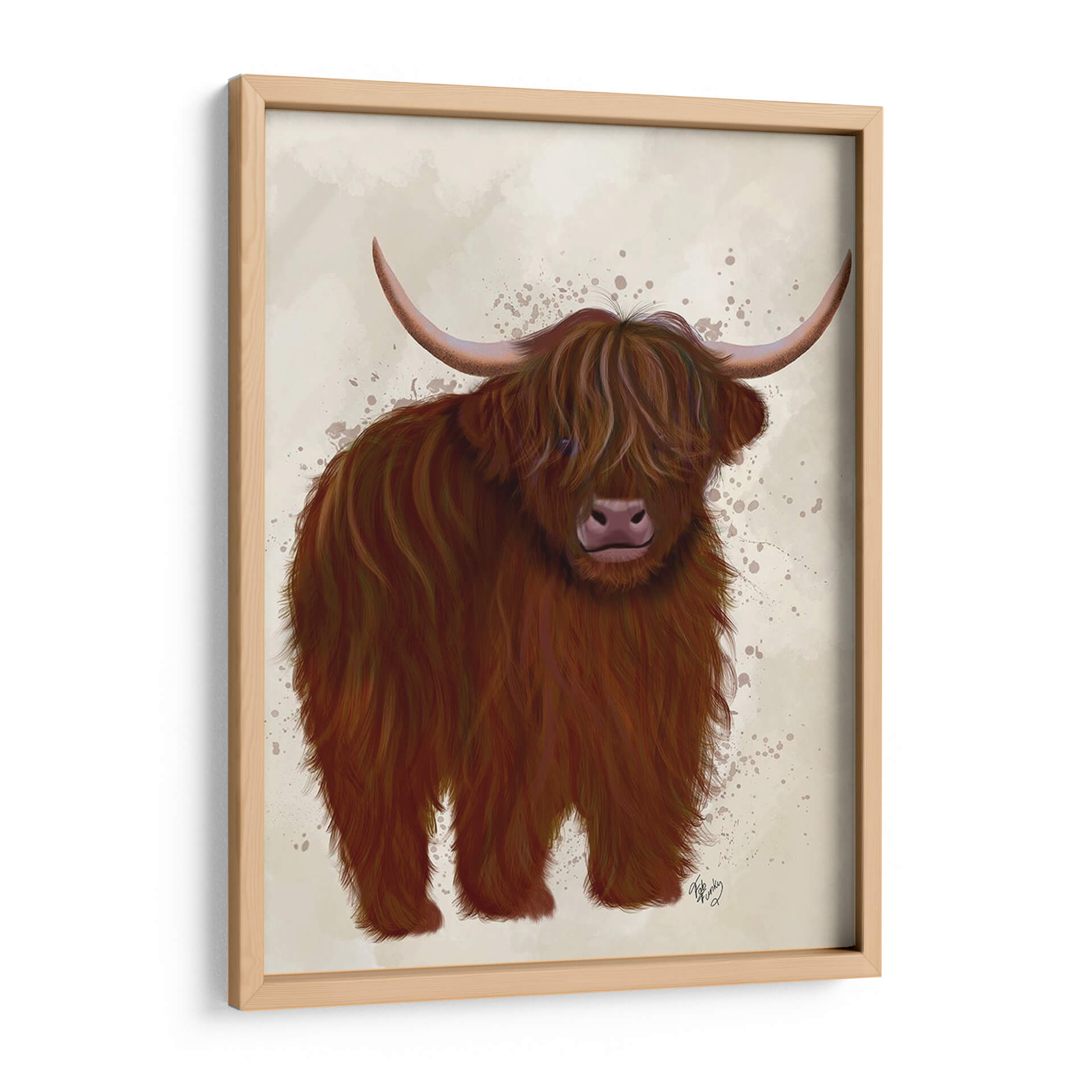Aporta un toque rústico y encantador a tu hogar con este cautivador cuadro decorativo de una vaca de las Highlands. La obra presenta a este majestuoso animal en un primer plano detallado, destacando su pelaje largo y voluminoso en tonos marrones profundos y cálidos, y sus icónicos cuernos curvados. El fondo, con una textura sutil y salpicaduras tenues en tonos beige y sepia, crea una atmósfera suave y orgánica que permite que la figura principal resalte con elegancia. El estilo artístico, una mezcla de realismo tierno con toques digitales, evoca una sensación de calma y conexión con la naturaleza. Este cuadro es ideal para añadir personalidad a salones, dormitorios o entradas, funcionando perfectamente en ambientes decorados con un estilo rústico, campestre o incluso moderno con un toque bohemio. Su presencia aporta calidez y un aire de serenidad campestre, convirtiéndose en un punto focal que invita a la contemplación y al aprecio por la belleza animal. Una pieza única para amantes de la naturaleza y el arte contemporáneo.