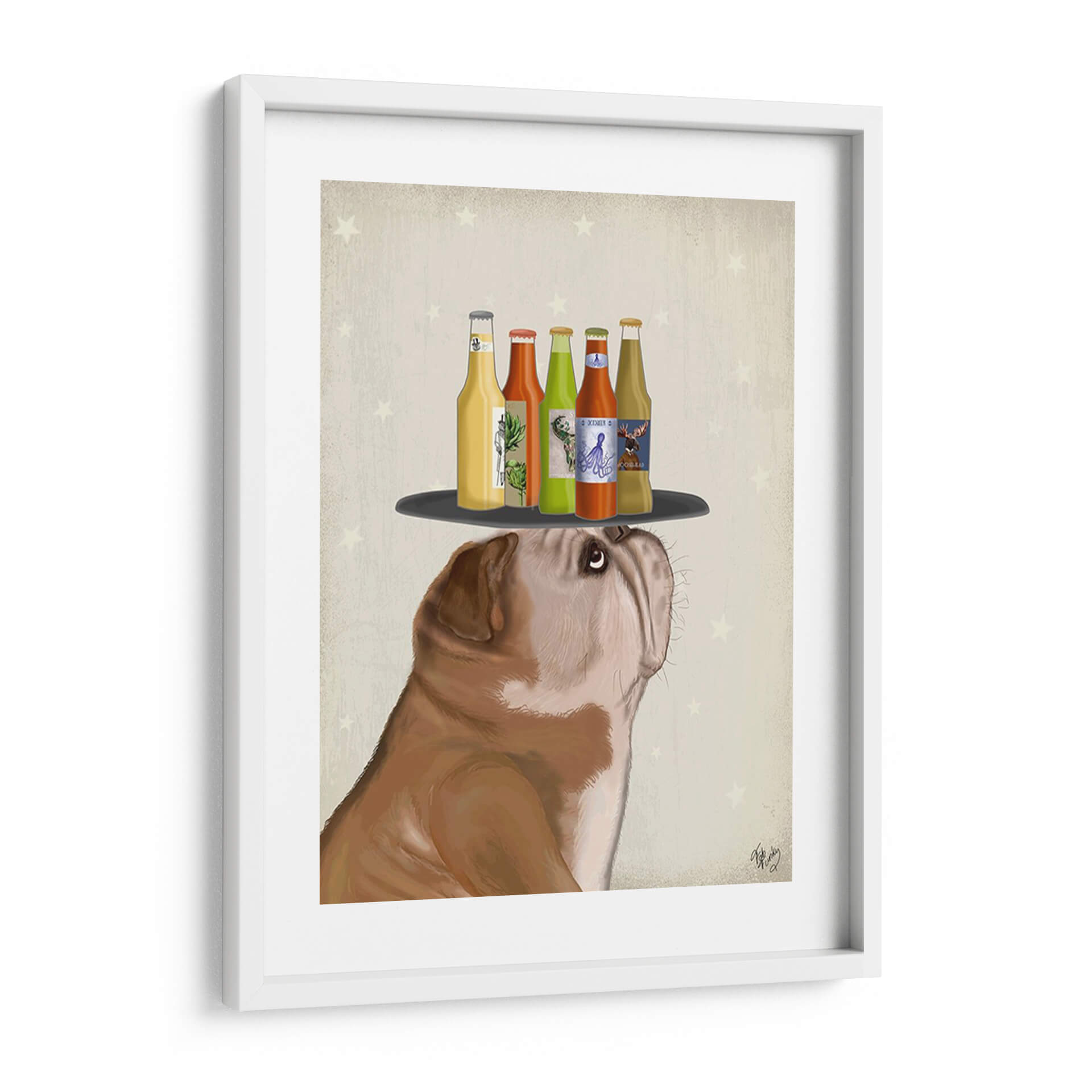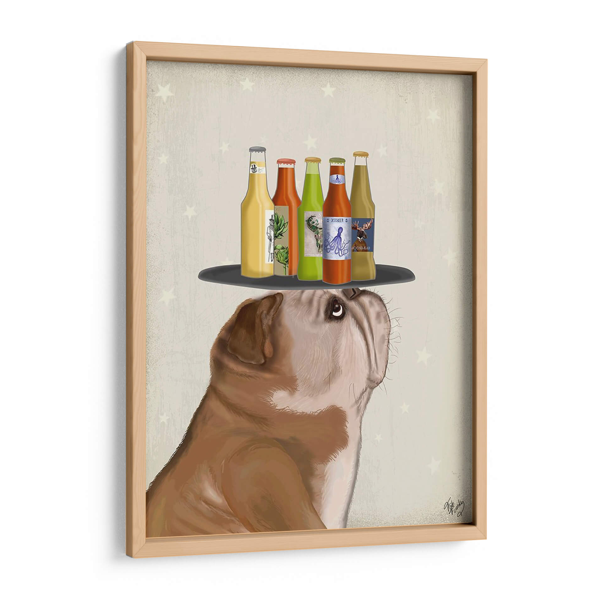 Este encantador cuadro decorativo, titulado "Inglés Bulldog Beer Lover" por Fab Funky, captura un momento cómico y tierno que seguramente deleitará a los amantes de los perros y la cerveza. La obra presenta un bulldog inglés con una expresión de anhelo y anticipación mientras mira fijamente una bandeja repleta de botellas de cerveza de diversos colores y diseños. El fondo, con un patrón sutil de estrellas en tonos neutros, realza la figura central sin distraer. Los colores cálidos predominantes, como los marrones del perro y los tonos amarillos, naranjas y verdes de las botellas, crean una atmósfera acogedora y amigable. El estilo artístico, una mezcla de ilustración digital con un toque pintoresco, aporta una personalidad única a la pieza. Este cuadro es ideal para añadir un toque de humor y calidez a cualquier espacio, ya sea una sala de estar, un bar casero, una cocina o incluso una oficina. Su temática relatable y su ejecución encantadora lo convierten en una pieza de conversación perfecta y un regalo inolvidable para aquellos que aprecian el buen humor y la compañía de sus mascotas. Transforma tu hogar en un espacio más divertido y personal con este singular cuadro decorativo.