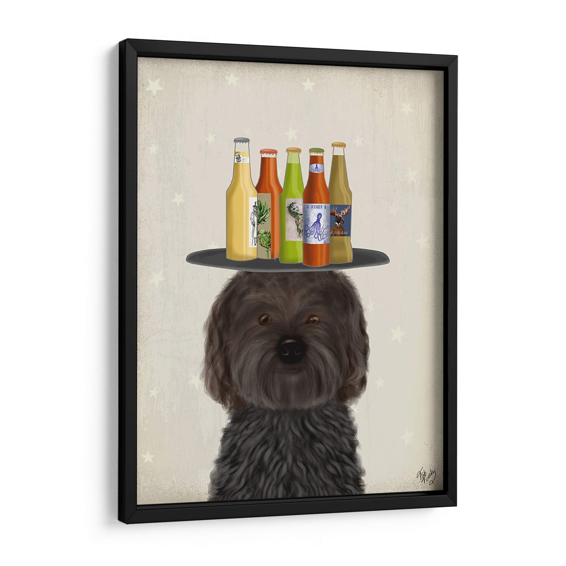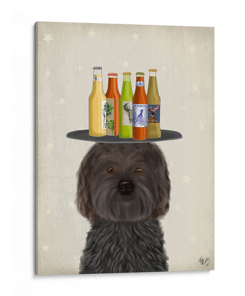 Añade un toque de humor y originalidad a tu espacio con este cautivador cuadro decorativo "Labradoodle Black Beer Lover" del artista Fab Funky. La obra presenta un entrañable labradoodle de pelaje oscuro y mirada tierna, coronado con una bandeja que exhibe una vibrante selección de cervezas artesanales. Los tonos tierra del fondo, salpicados de sutiles estrellas, crean una atmósfera cálida y acogedora, mientras que los colores vivos de las botellas de cerveza aportan un toque lúdico y desenfadado. El estilo distintivo de Fab Funky, con su atención al detalle y su habilidad para infundir personalidad a sus creaciones, hace de esta pieza una adición única para cualquier amante de los perros y la cerveza. Ideal para decorar tu cocina, sala de estar, estudio o incluso una cervecería o bar temático. Este cuadro decorativo no solo embellecerá tus paredes, sino que también será un tema de conversación y una fuente de sonrisas. Su composición centrada y el carisma del protagonista aseguran que capture la atención y aporte carácter a cualquier ambiente, convirtiéndose en un punto focal lleno de encanto y buen humor.