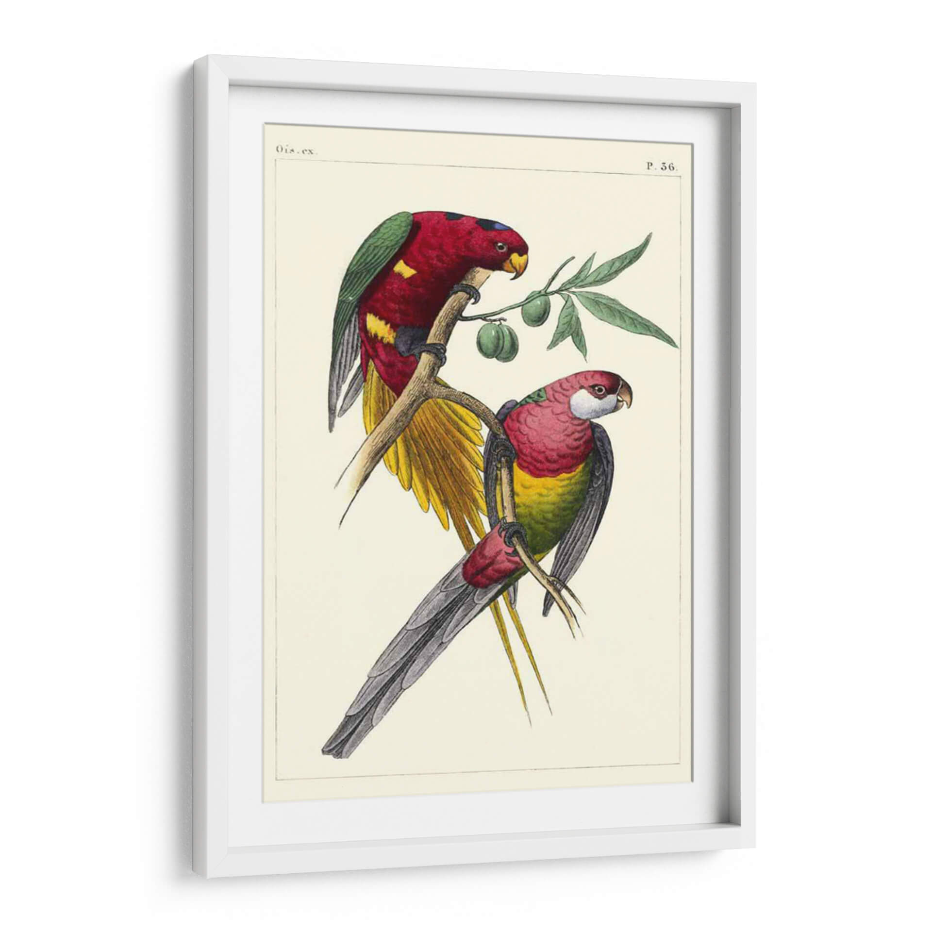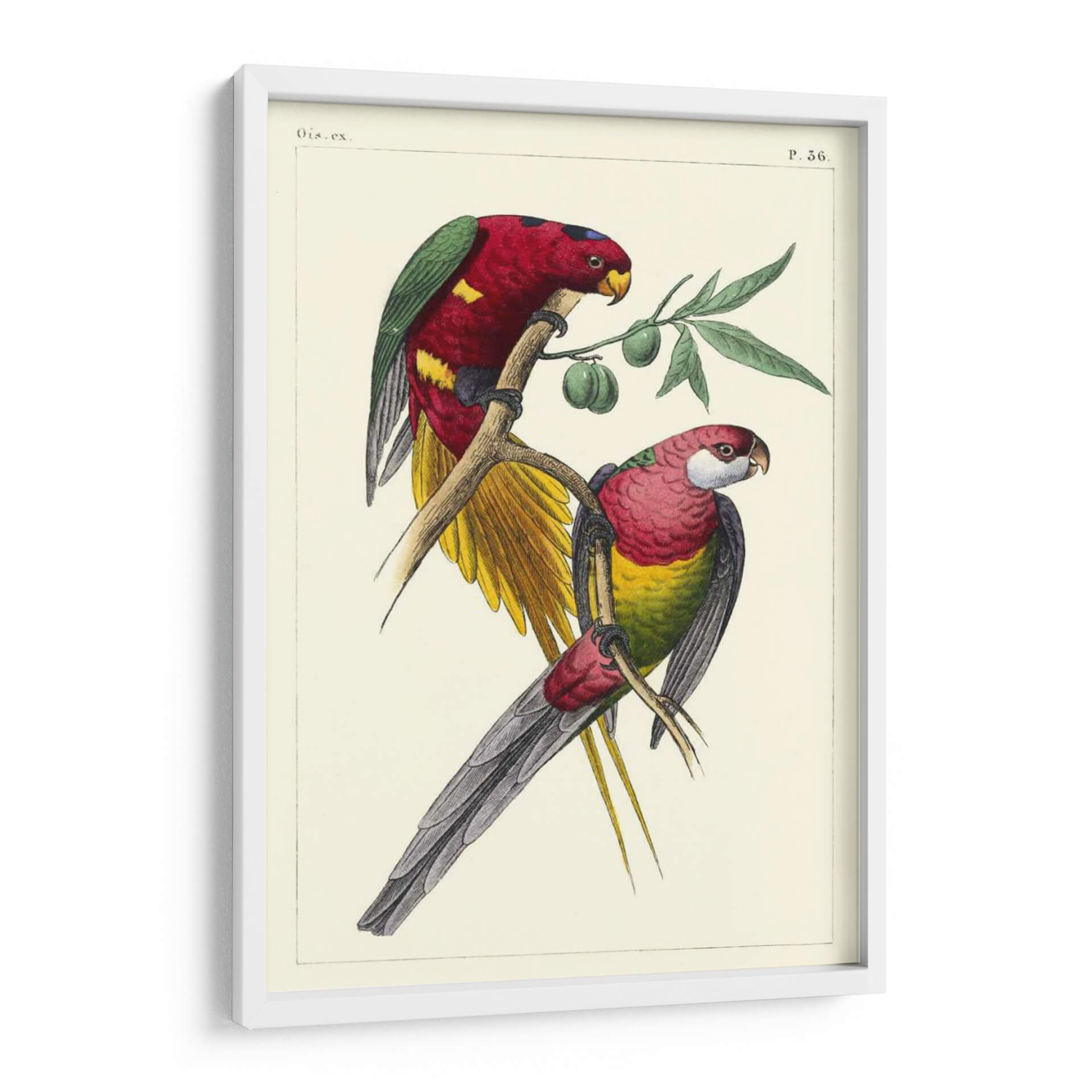 Aporta un toque de color y naturaleza a tu hogar con este exquisito cuadro decorativo de loros de C.L. Lemaire. La obra, titulada "Lemaire Parrots III", presenta una detallada ilustración de dos loros vibrantes posados en una rama frutal. La paleta de colores, dominada por intensos rojos, verdes y amarillos, evoca la exótica belleza de la fauna tropical, mientras que el estilo de ilustración científica añade un aire de elegancia clásica y atemporal. La composición, centrada en la delicadeza de las aves y la textura de las hojas y la rama, crea una atmósfera de serenidad y vitalidad. Este cuadro decorativo es ideal para quienes buscan infundir vida y un aire de sofisticación natural en sus espacios, ya sea en una sala de estar moderna, un estudio o un dormitorio. Su rica detallación y vibrante colorido lo convierten en un punto focal cautivador que dialoga con estilos decorativos diversos, desde el contemporáneo hasta el más tradicional, ofreciendo una ventana a la maravilla del mundo natural. Transforma tu pared en una obra de arte inspirada en la naturaleza.