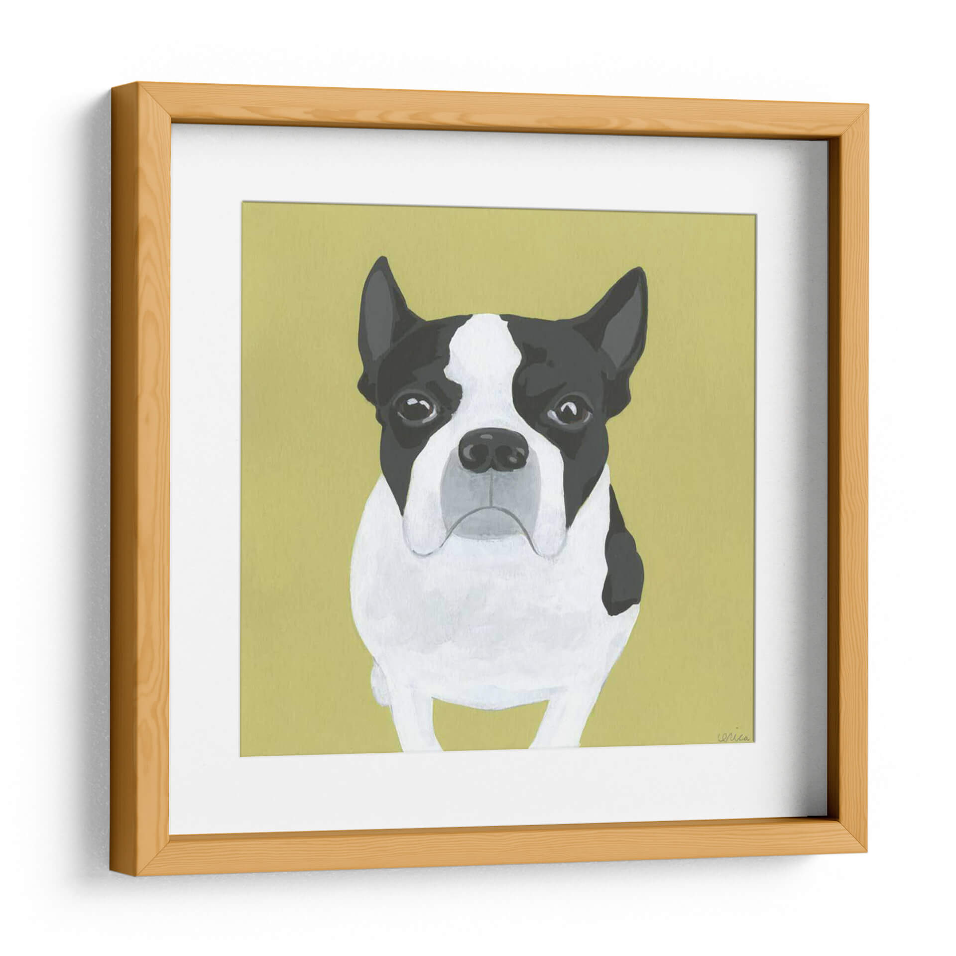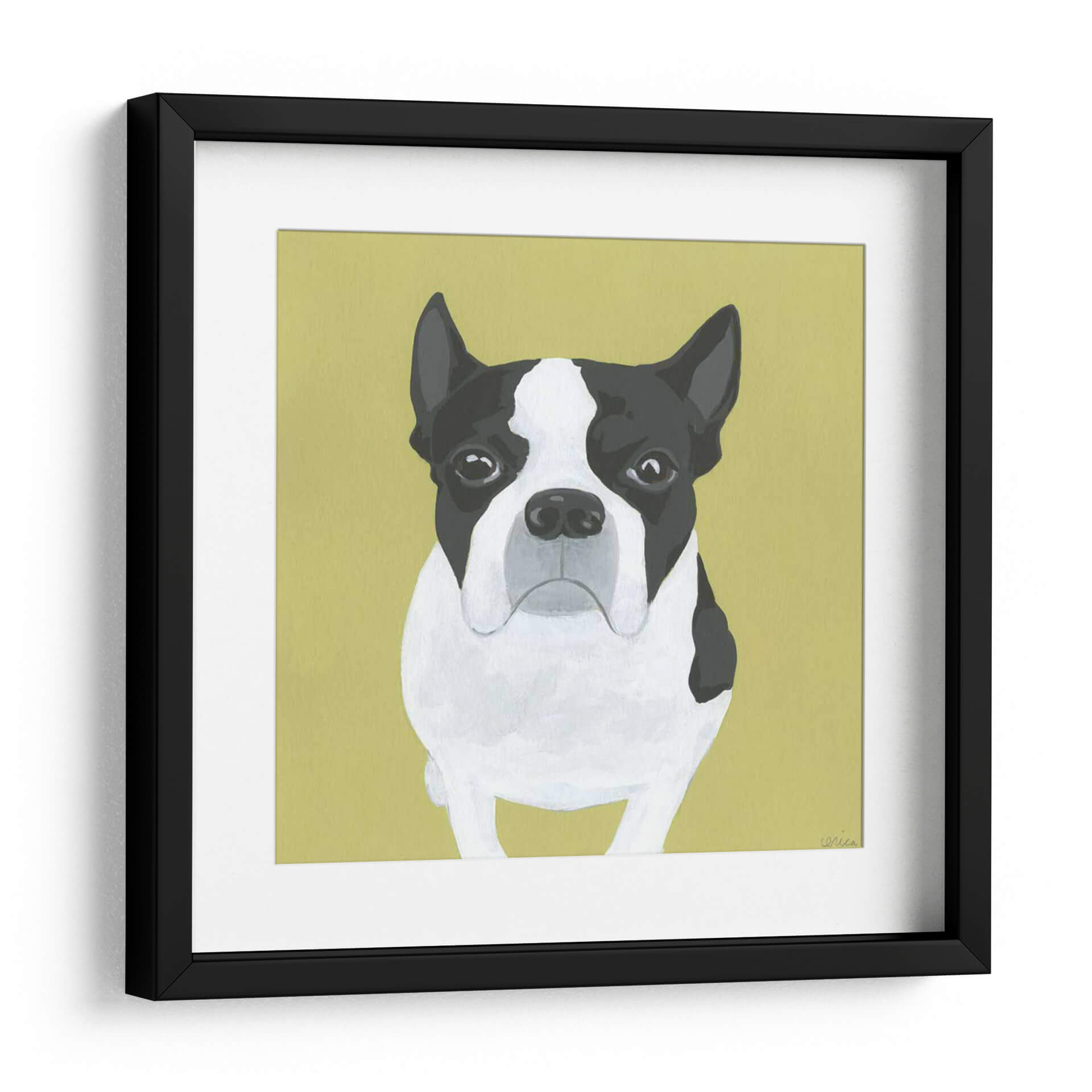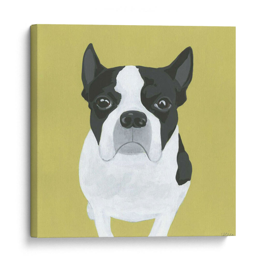Captura la esencia juguetona y encantadora de tu compañero canino con este cuadro decorativo de un Boston Terrier, titulado "Miss Pepinillos" por June Erica Vess. Esta obra de arte presenta un retrato frontal del perro con sus distintivas marcas blancas y negras, ojos expresivos y orejas erguidas, capturando su personalidad vibrante. El fondo de color amarillo mostaza proporciona un contraste cálido y alegre que realza la figura del perro, haciendo de esta pieza un punto focal instantáneo en cualquier habitación. El estilo es una mezcla de arte moderno y figurativo, con pinceladas que sugieren una textura suave pero definida, otorgando profundidad a la composición. Ideal para amantes de los perros, este cuadro decorativo es perfecto para añadir un toque de carácter y calidez a salas de estar, dormitorios, estudios o incluso oficinas. Su tamaño versátil y su tema universalmente querido lo convierten en una excelente opción para regalar o para dar vida a tu propio espacio. Deja que la mirada carismática de este Boston Terrier ilumine tu hogar y refleje tu amor por los animales.