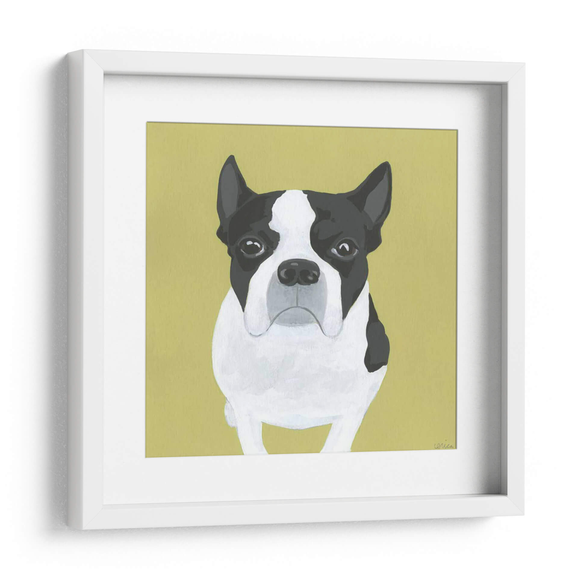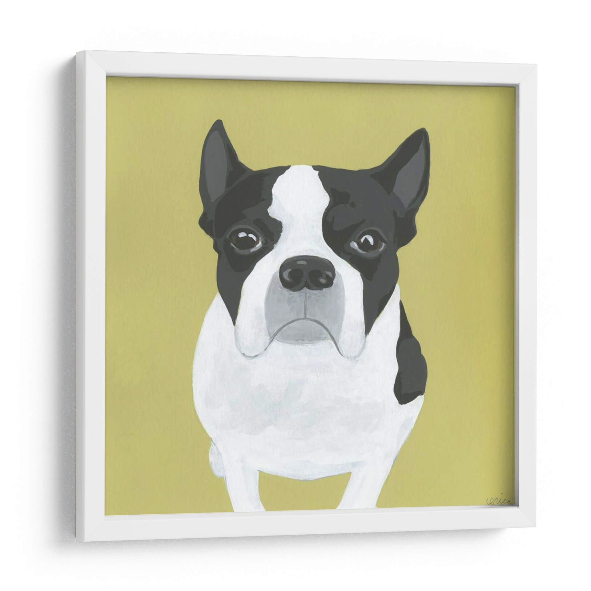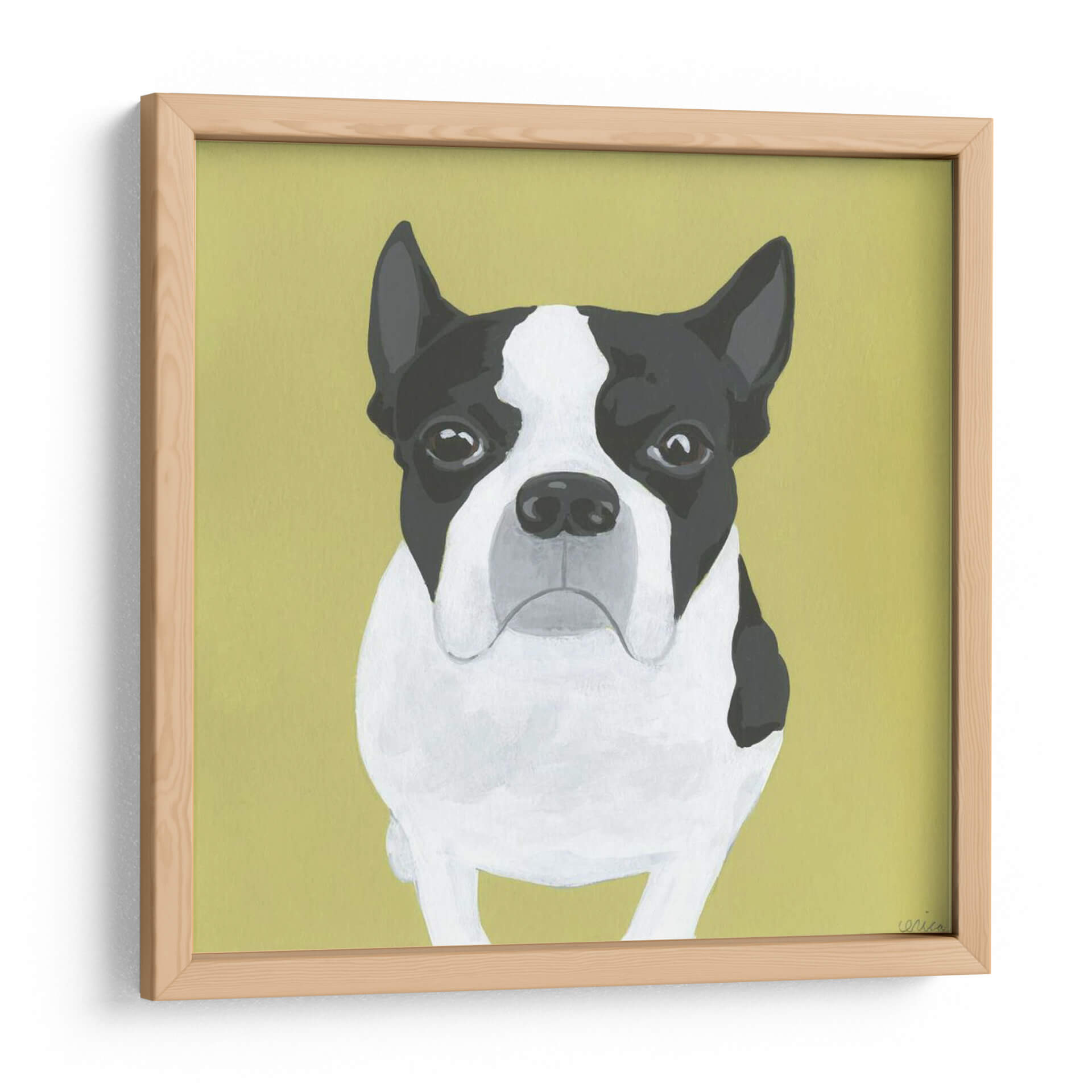Captura la esencia juguetona y encantadora de tu compañero canino con este cuadro decorativo de un Boston Terrier, titulado "Miss Pepinillos" por June Erica Vess. Esta obra de arte presenta un retrato frontal del perro con sus distintivas marcas blancas y negras, ojos expresivos y orejas erguidas, capturando su personalidad vibrante. El fondo de color amarillo mostaza proporciona un contraste cálido y alegre que realza la figura del perro, haciendo de esta pieza un punto focal instantáneo en cualquier habitación. El estilo es una mezcla de arte moderno y figurativo, con pinceladas que sugieren una textura suave pero definida, otorgando profundidad a la composición. Ideal para amantes de los perros, este cuadro decorativo es perfecto para añadir un toque de carácter y calidez a salas de estar, dormitorios, estudios o incluso oficinas. Su tamaño versátil y su tema universalmente querido lo convierten en una excelente opción para regalar o para dar vida a tu propio espacio. Deja que la mirada carismática de este Boston Terrier ilumine tu hogar y refleje tu amor por los animales.