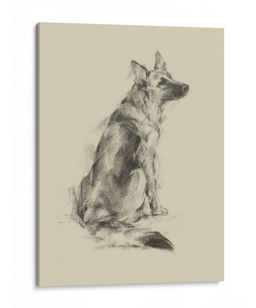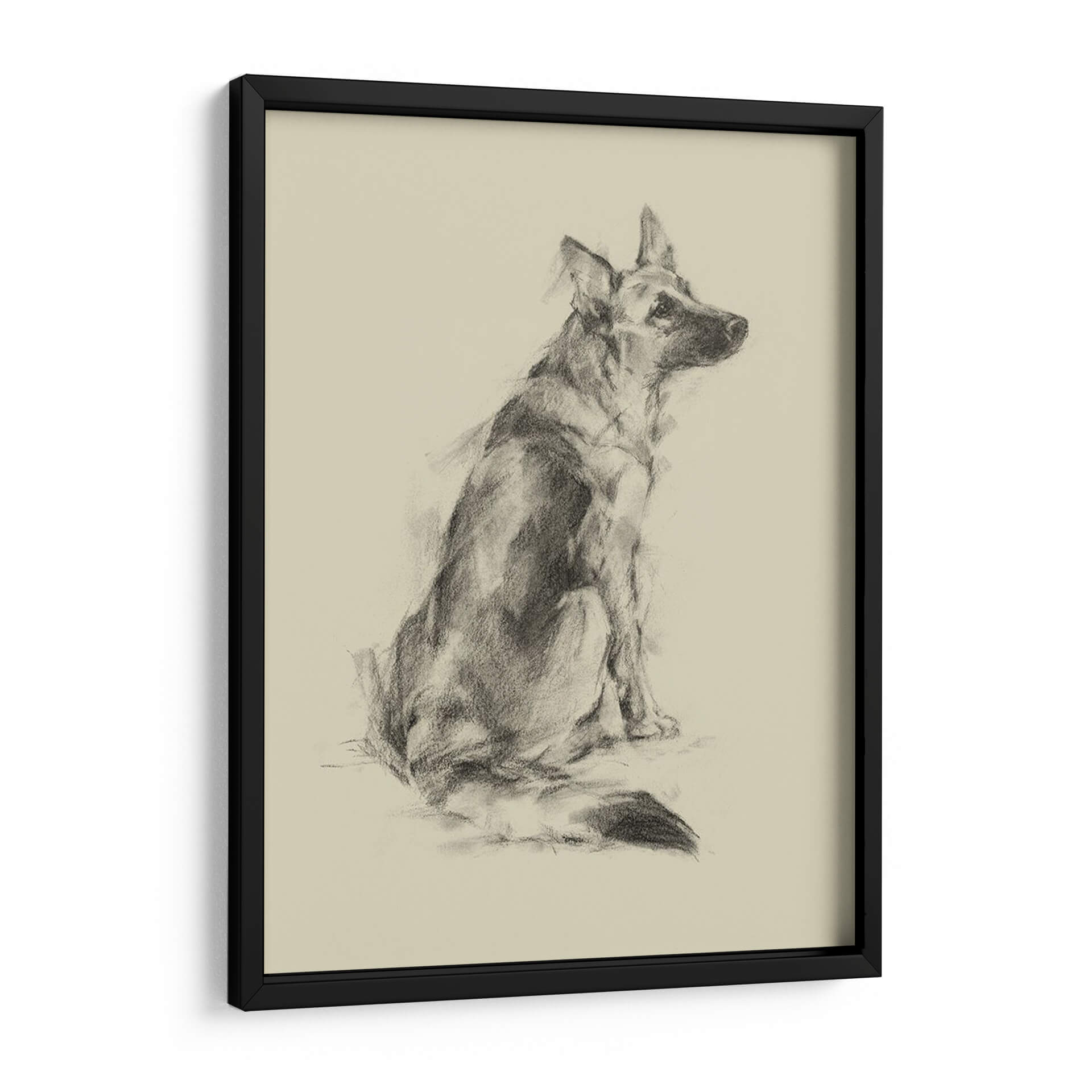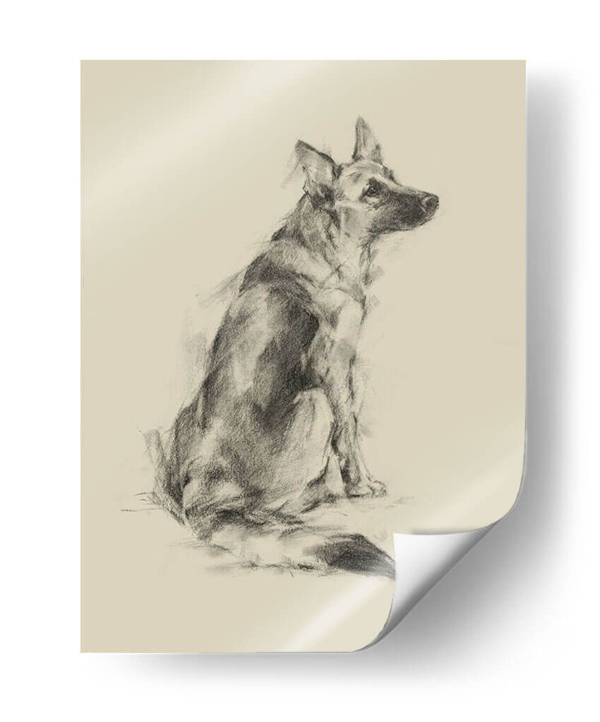 Este cautivador cuadro decorativo captura la esencia de un perro pastor alemán en un retrato a lápiz con un toque expresionista. La obra de Ethan Harper, titulada 'Ojos De Perro Cachorro V', se distingue por su técnica de carboncillo que resalta la mirada atenta y la postura noble del animal. La paleta de colores es sutil, dominada por tonos neutros y grises que confieren profundidad y sofisticación a la pieza, creando una atmósfera de calma y contemplación. La composición se centra en el perfil del perro, con trazos sueltos y dinámicos que aportan vivacidad y movimiento, a pesar de la quietud de la pose. Es una obra ideal para amantes de los animales y aquellos que buscan añadir un toque de elegancia clásica con un aire contemporáneo a su hogar u oficina. Este cuadro decorativo es perfecto para espacios que buscan transmitir serenidad, lealtad y un aprecio por la belleza natural, sirviendo como un punto focal conmovedor en cualquier decoración, desde la más minimalista hasta la más rústica.