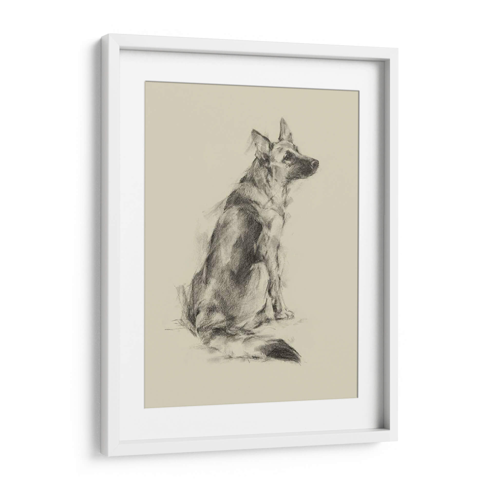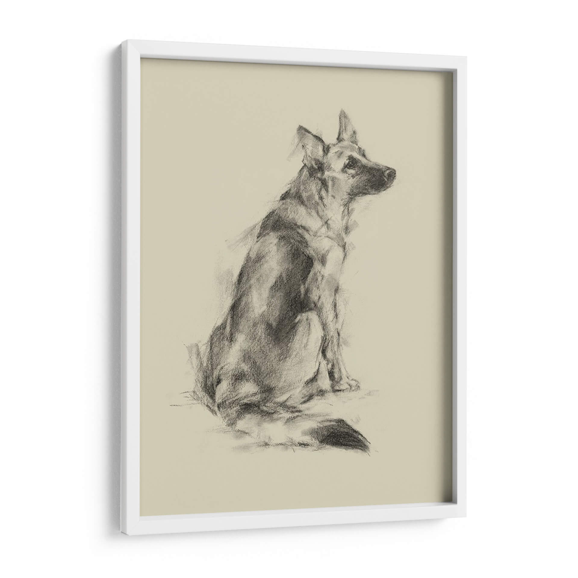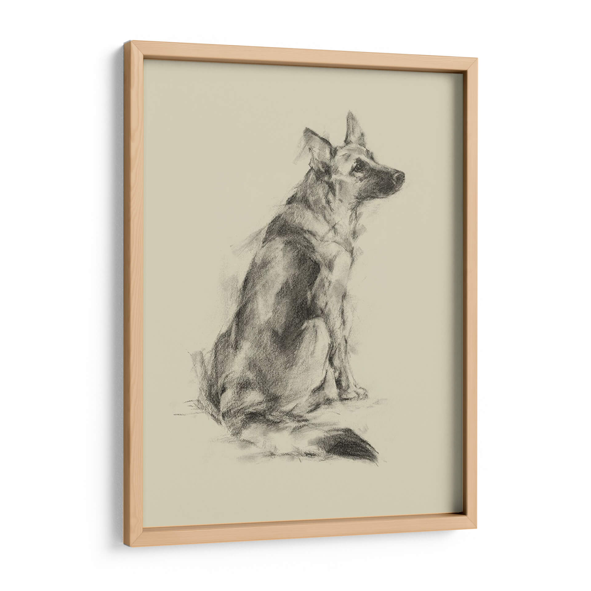 Este cautivador cuadro decorativo captura la esencia de un perro pastor alemán en un retrato a lápiz con un toque expresionista. La obra de Ethan Harper, titulada 'Ojos De Perro Cachorro V', se distingue por su técnica de carboncillo que resalta la mirada atenta y la postura noble del animal. La paleta de colores es sutil, dominada por tonos neutros y grises que confieren profundidad y sofisticación a la pieza, creando una atmósfera de calma y contemplación. La composición se centra en el perfil del perro, con trazos sueltos y dinámicos que aportan vivacidad y movimiento, a pesar de la quietud de la pose. Es una obra ideal para amantes de los animales y aquellos que buscan añadir un toque de elegancia clásica con un aire contemporáneo a su hogar u oficina. Este cuadro decorativo es perfecto para espacios que buscan transmitir serenidad, lealtad y un aprecio por la belleza natural, sirviendo como un punto focal conmovedor en cualquier decoración, desde la más minimalista hasta la más rústica.
