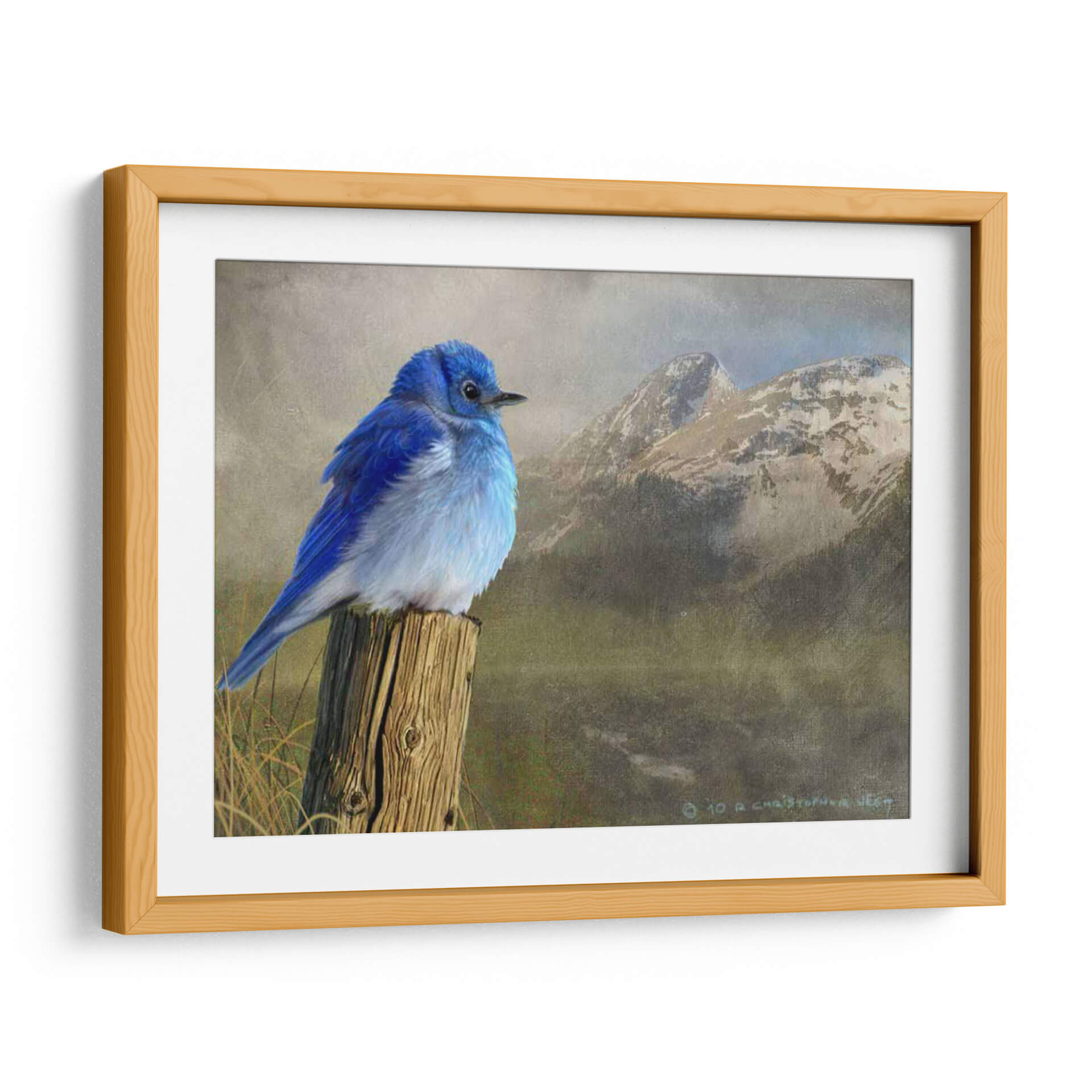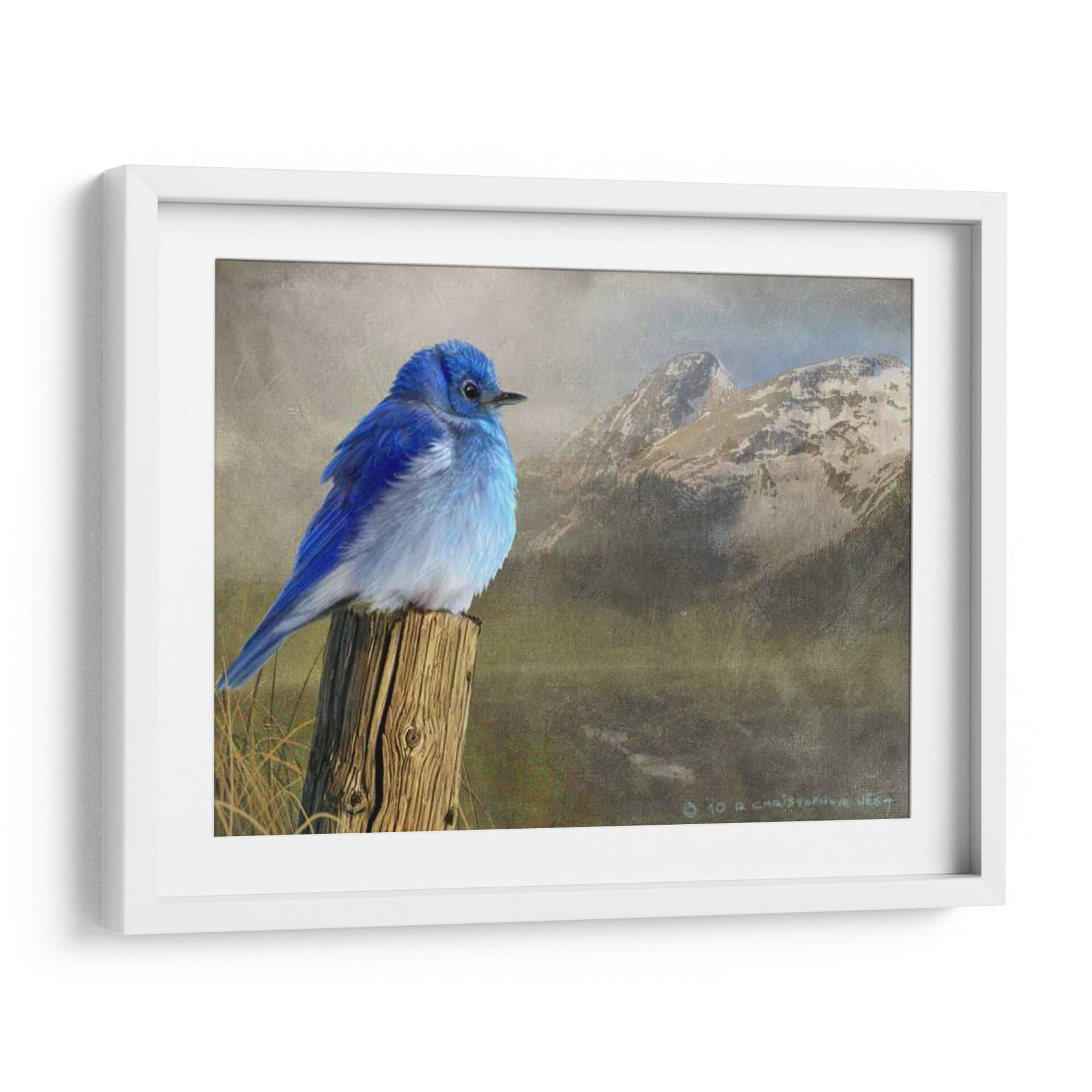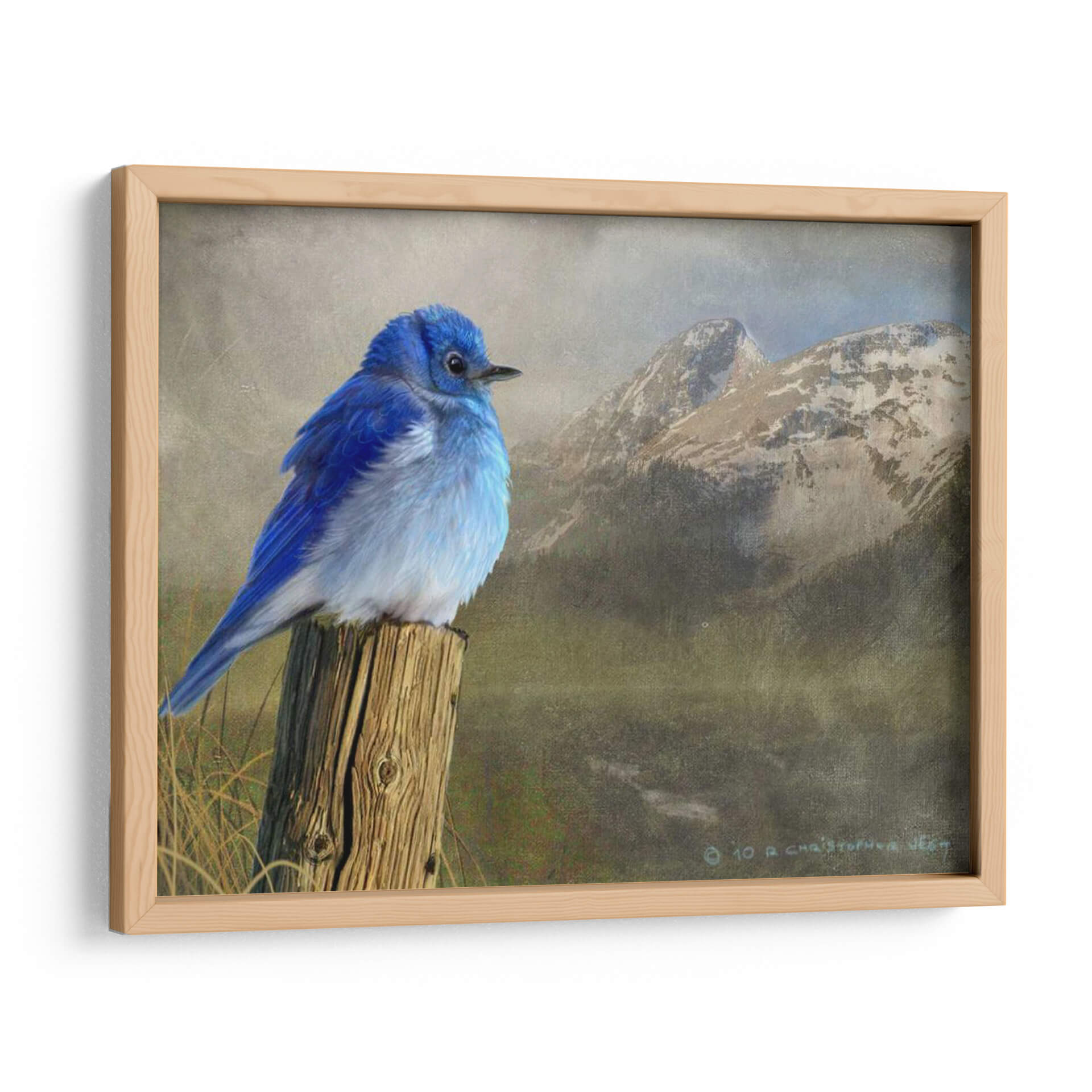 Captura la serenidad de la naturaleza con este impresionante cuadro decorativo "Pájaro Azul De La Montaña". La obra maestra de Chris Vest presenta un vibrante pájaro azul posado en un poste de madera rústico, con un majestuoso telón de fondo de montañas nevadas y un cielo brumoso. Los tonos fríos y terrosos, combinados con el brillante azul del pájaro, crean un contraste cautivador que evoca una sensación de paz y asombro. Este cuadro es perfecto para añadir un toque de color y tranquilidad a cualquier espacio, ya sea una sala de estar, un dormitorio o una oficina. Su detallada representación y atmósfera evocadora invitan a la contemplación, transportando al espectador a un sereno paisaje montañoso. Ideal para amantes de la naturaleza y aquellos que buscan arte que inspire calma y belleza. Integra esta pieza única en tu decoración y transforma tu hogar en un refugio de paz.