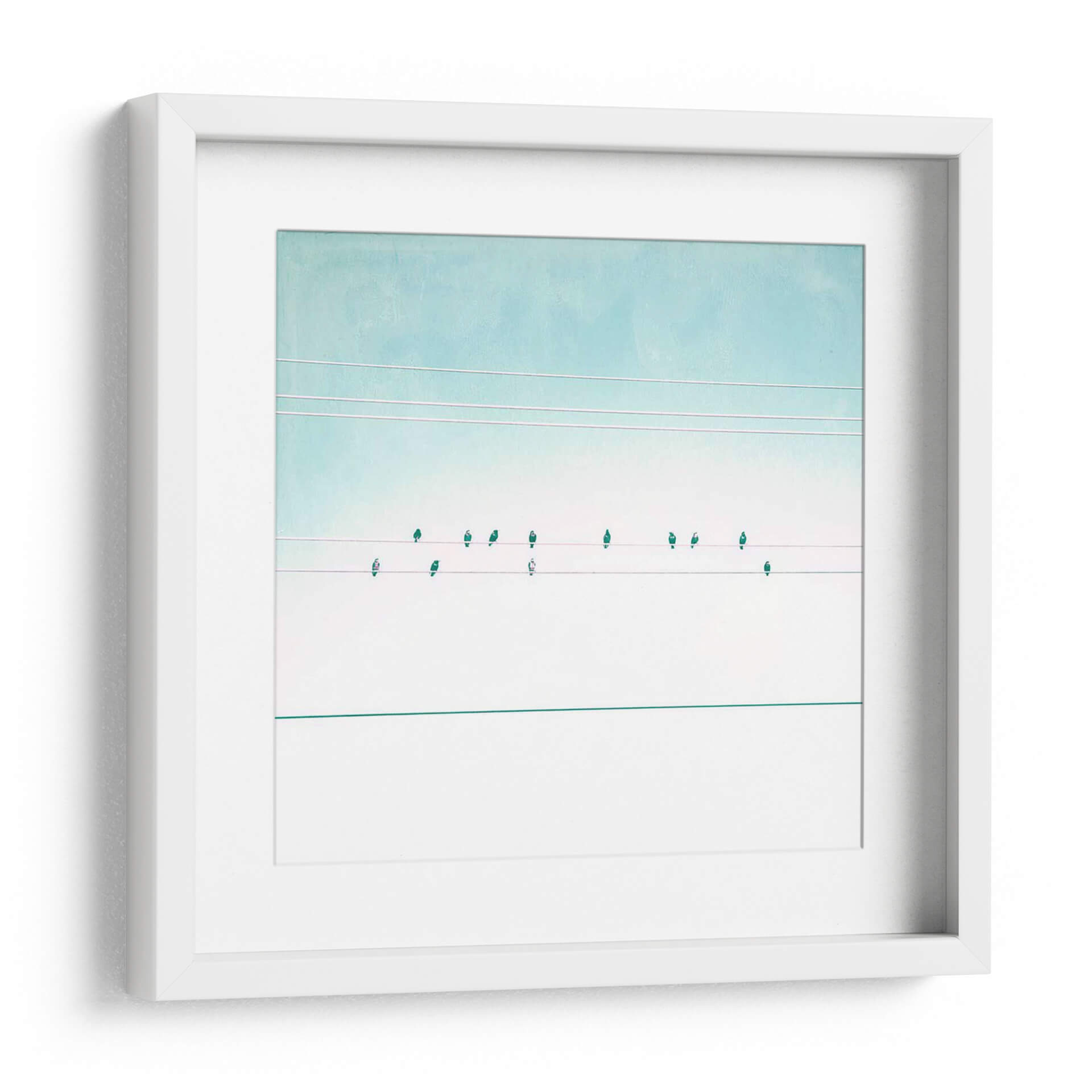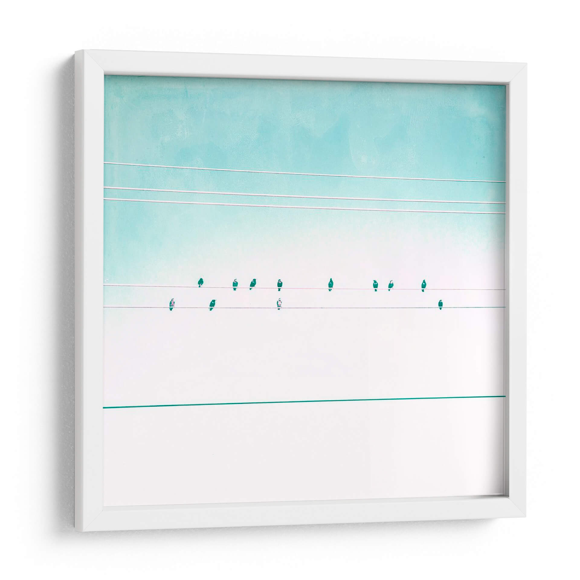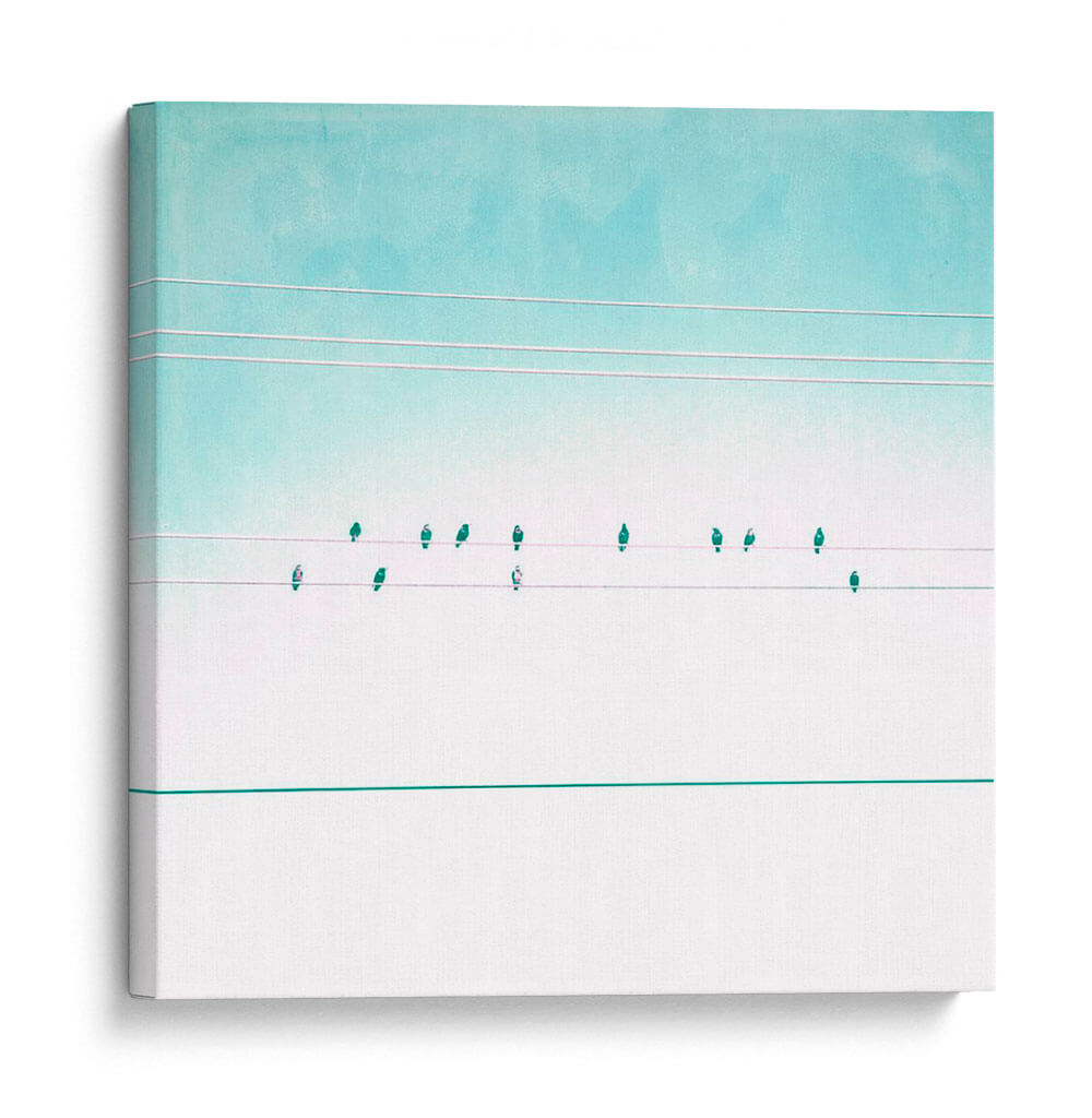Transforma tu espacio con el cautivador cuadro decorativo "Pájaros En Cables Iv" de Sue Riger. Esta obra de arte contemporánea presenta una composición minimalista y serena, donde delicadas siluetas de pájaros se posan sobre cables tenues contra un cielo en degradado de tonos celestes y blancos puros. La paleta de colores suave, dominada por azules aguamarina y blancos, evoca una sensación de calma y amplitud, ideal para infundir tranquilidad en cualquier habitación. La sutileza de los detalles y la limpieza de las líneas crean un punto focal elegante y moderno, perfecto para salas de estar, dormitorios u oficinas que buscan un toque de sofisticación y conexión con la naturaleza. "Pájaros En Cables Iv" es más que una simple decoración; es una invitación a la contemplación y a la apreciación de la belleza en la simplicidad, resonando con quienes buscan arte que inspire paz y armonía. Añade esta pieza única a tu colección y deja que su atmósfera etérea eleve la estética de tu hogar.