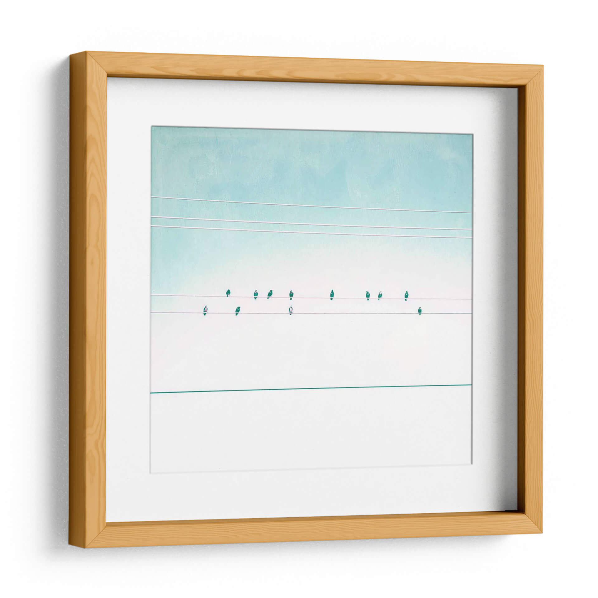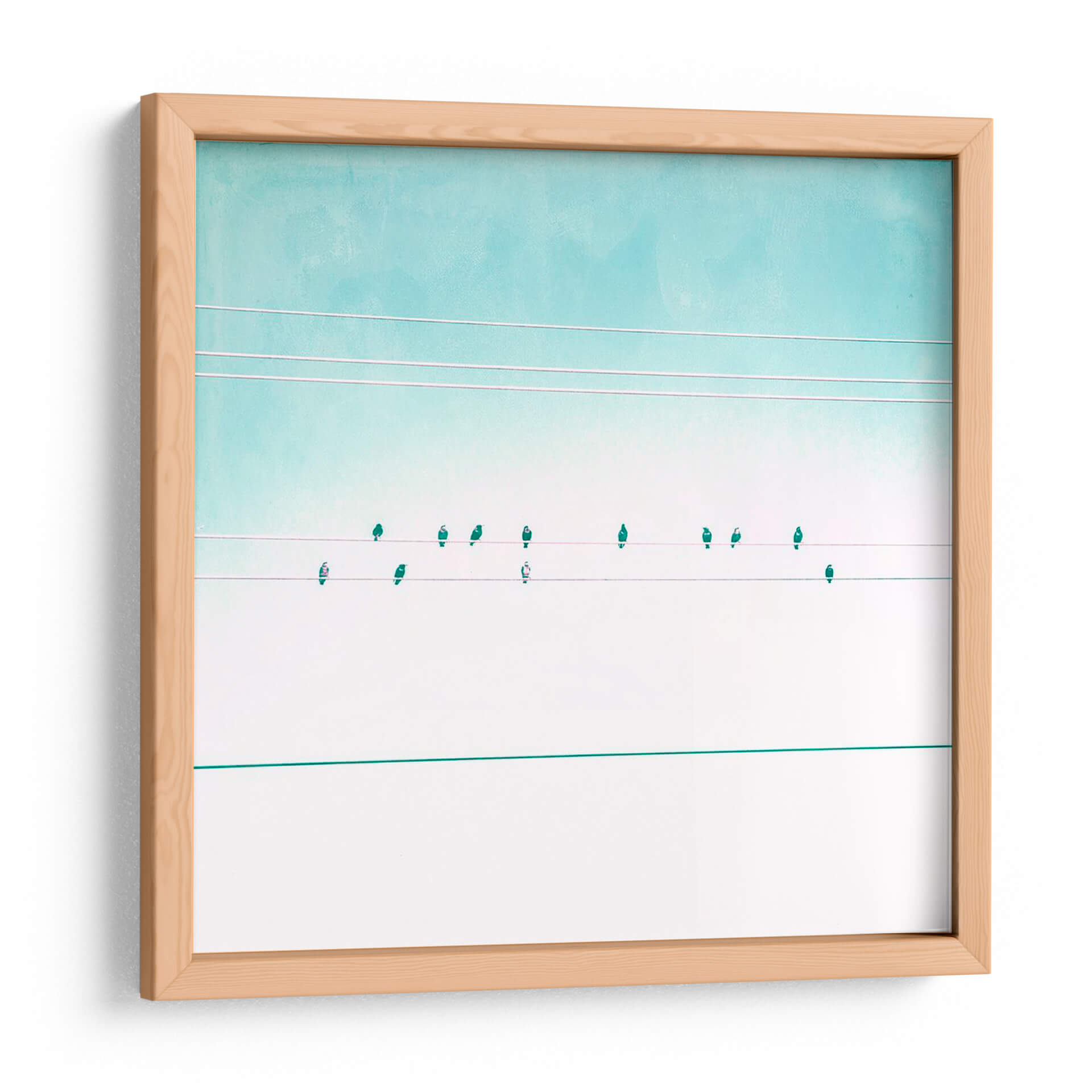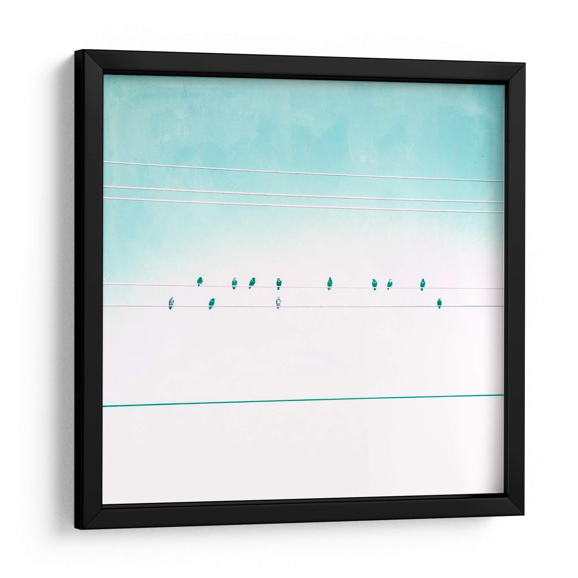 Transforma tu espacio con el cautivador cuadro decorativo "Pájaros En Cables Iv" de Sue Riger. Esta obra de arte contemporánea presenta una composición minimalista y serena, donde delicadas siluetas de pájaros se posan sobre cables tenues contra un cielo en degradado de tonos celestes y blancos puros. La paleta de colores suave, dominada por azules aguamarina y blancos, evoca una sensación de calma y amplitud, ideal para infundir tranquilidad en cualquier habitación. La sutileza de los detalles y la limpieza de las líneas crean un punto focal elegante y moderno, perfecto para salas de estar, dormitorios u oficinas que buscan un toque de sofisticación y conexión con la naturaleza. "Pájaros En Cables Iv" es más que una simple decoración; es una invitación a la contemplación y a la apreciación de la belleza en la simplicidad, resonando con quienes buscan arte que inspire paz y armonía. Añade esta pieza única a tu colección y deja que su atmósfera etérea eleve la estética de tu hogar.