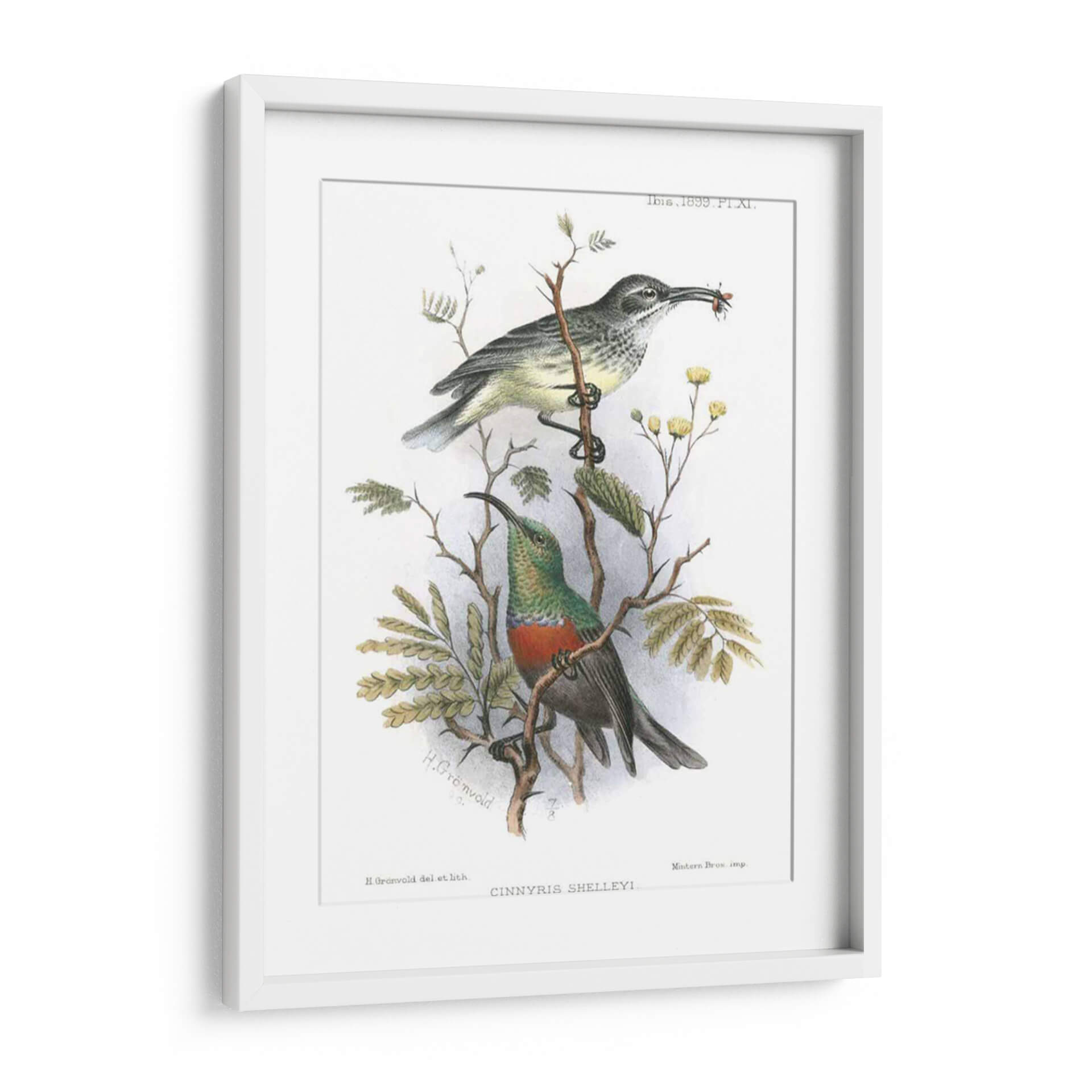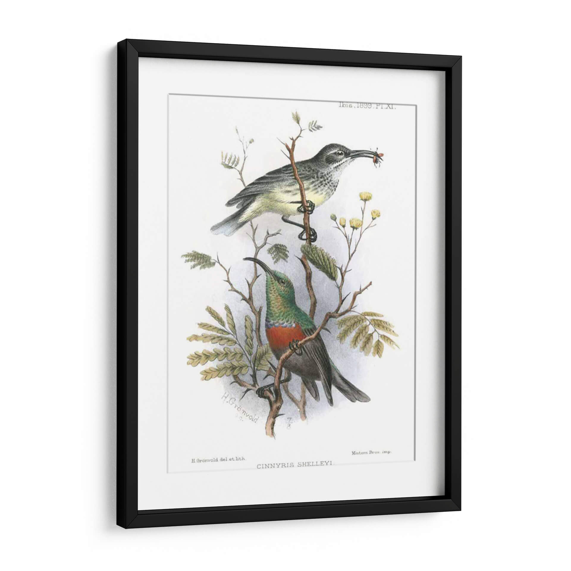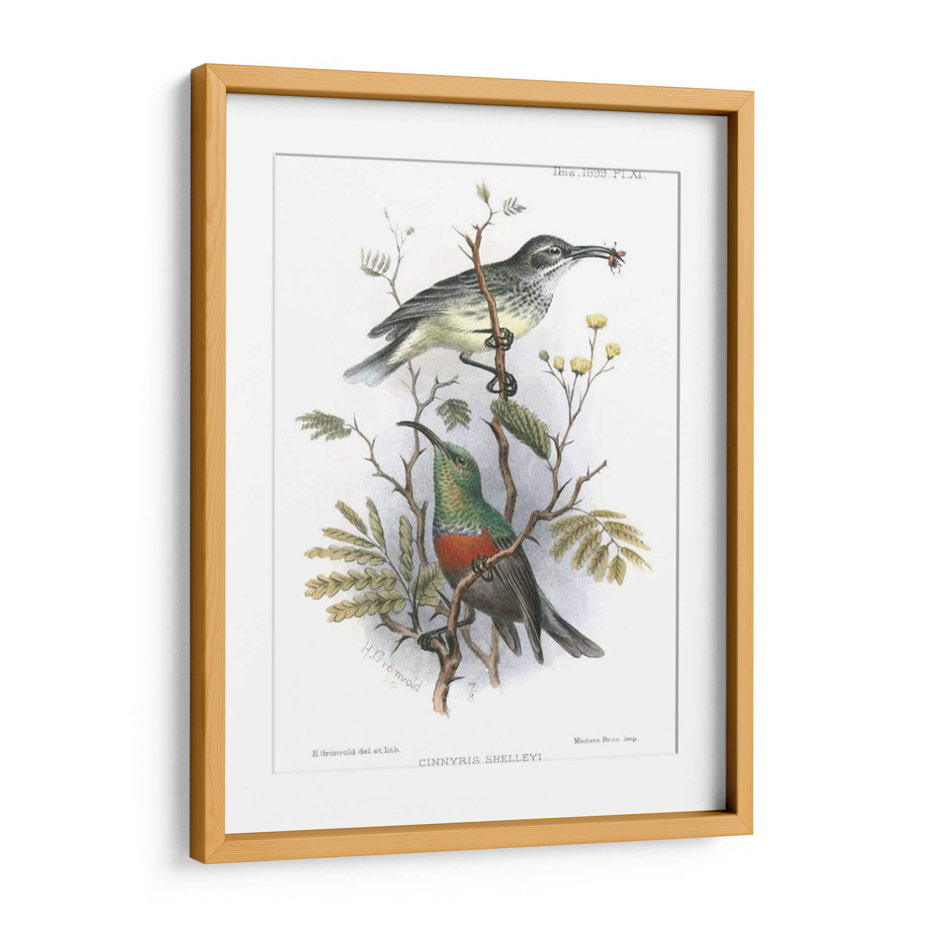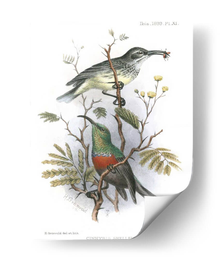 Captura la esencia de la naturaleza con este exquisito cuadro decorativo "Pájaros En La Naturaleza I", una obra maestra del artista J.C. Keulemans. Esta pieza presenta una detallada y delicada ilustración de dos pájaros posados en ramas, uno de ellos sosteniendo una pequeña presa en su pico. La paleta de colores se centra en tonos terrosos y verdes suaves, con toques vibrantes de rojo y naranja en el pecho de uno de los pájaros, creando un contraste sutil pero cautivador. El estilo de la obra evoca el arte de la ilustración científica y naturalista, con una precisión en el detalle que hipnotiza. La composición, centrada en la interacción de las aves con su entorno botánico, transmite una sensación de calma, armonía y la belleza inherente del mundo natural. Este cuadro decorativo es ideal para añadir un toque de elegancia y serenidad a cualquier espacio, ya sea un rincón de lectura, un dormitorio tranquilo o un salón que busca una conexión sutil con la vida silvestre y la belleza clásica. Su diseño detallado y su atmósfera pacífica lo convierten en una adición perfecta para amantes de la naturaleza y del arte con un gusto refinado, aportando vida y color a tus paredes.