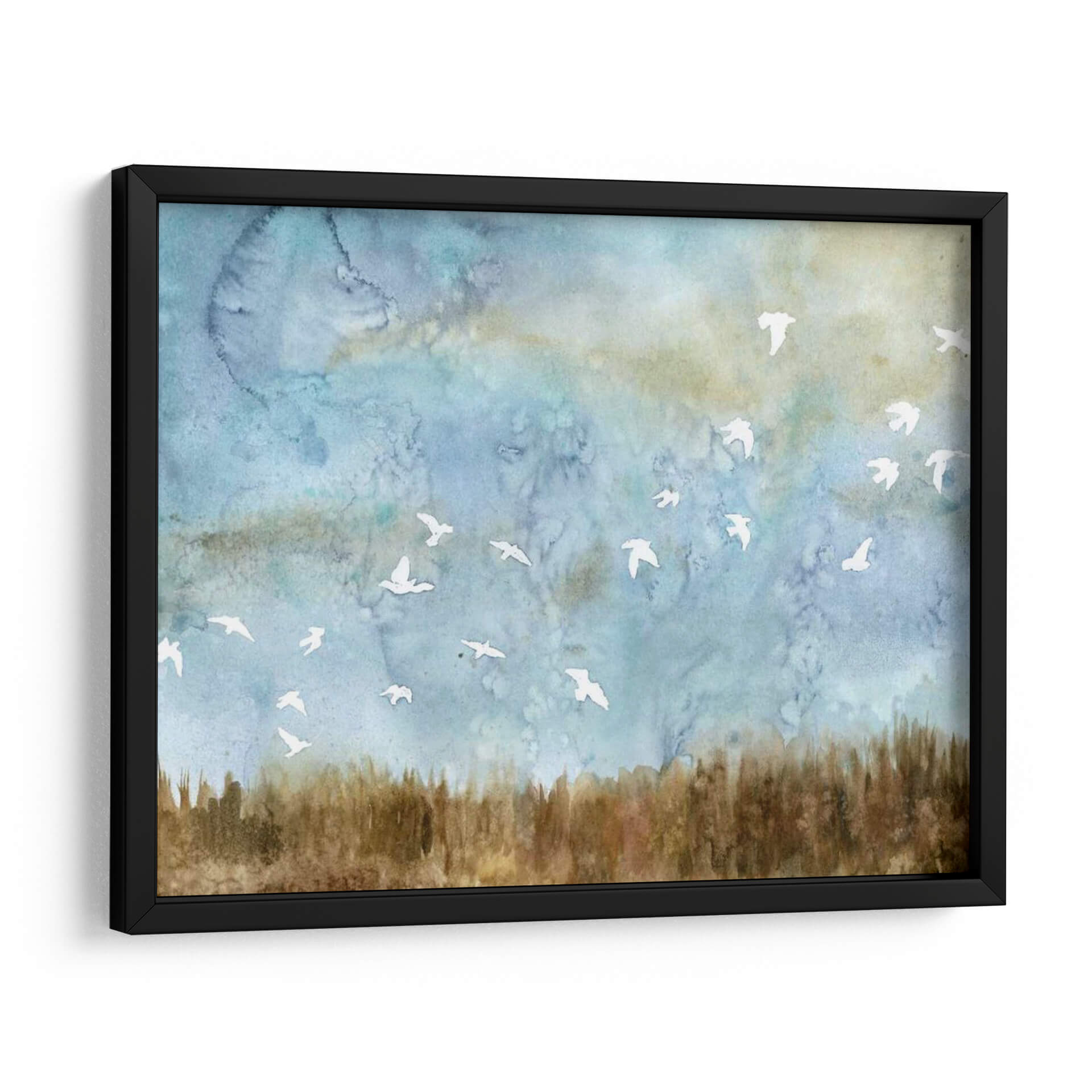 Sumérgete en la serenidad y la libertad con "Pájaros En Vuelo I", una obra de arte contemporáneo que captura la esencia de la naturaleza en su máxima expresión. Creada por la talentosa Megan Meagher, esta pieza evoca una sensación de movimiento y ligereza a través de su delicada paleta de colores y su composición etérea. El cielo, en tonos azules y ocres, se funde suavemente con un horizonte terroso, mientras que un grupo de pájaros blancos revolotean en libertad, simbolizando la esperanza y la trascendencia. La técnica de acuarela utilizada aporta una cualidad soñadora y fluida a la obra, invitando a la contemplación y al respiro. "Pájaros En Vuelo I" es ideal para añadir un toque de calma y sofisticación a cualquier espacio, ya sea tu sala de estar, dormitorio u oficina. Su estilo abstracto y orgánico se adapta a diversas decoraciones, desde las más minimalistas hasta las más bohemias, convirtiéndose en un punto focal inspirador que te recordará la belleza simple de la vida. Este cuadro decorativo no solo embellece tus paredes, sino que también infunde un ambiente de paz y conexión con el mundo natural. La maestría de Megan Meagher se manifiesta en cada pincelada, creando una pieza que resuena emocionalmente con el espectador.
