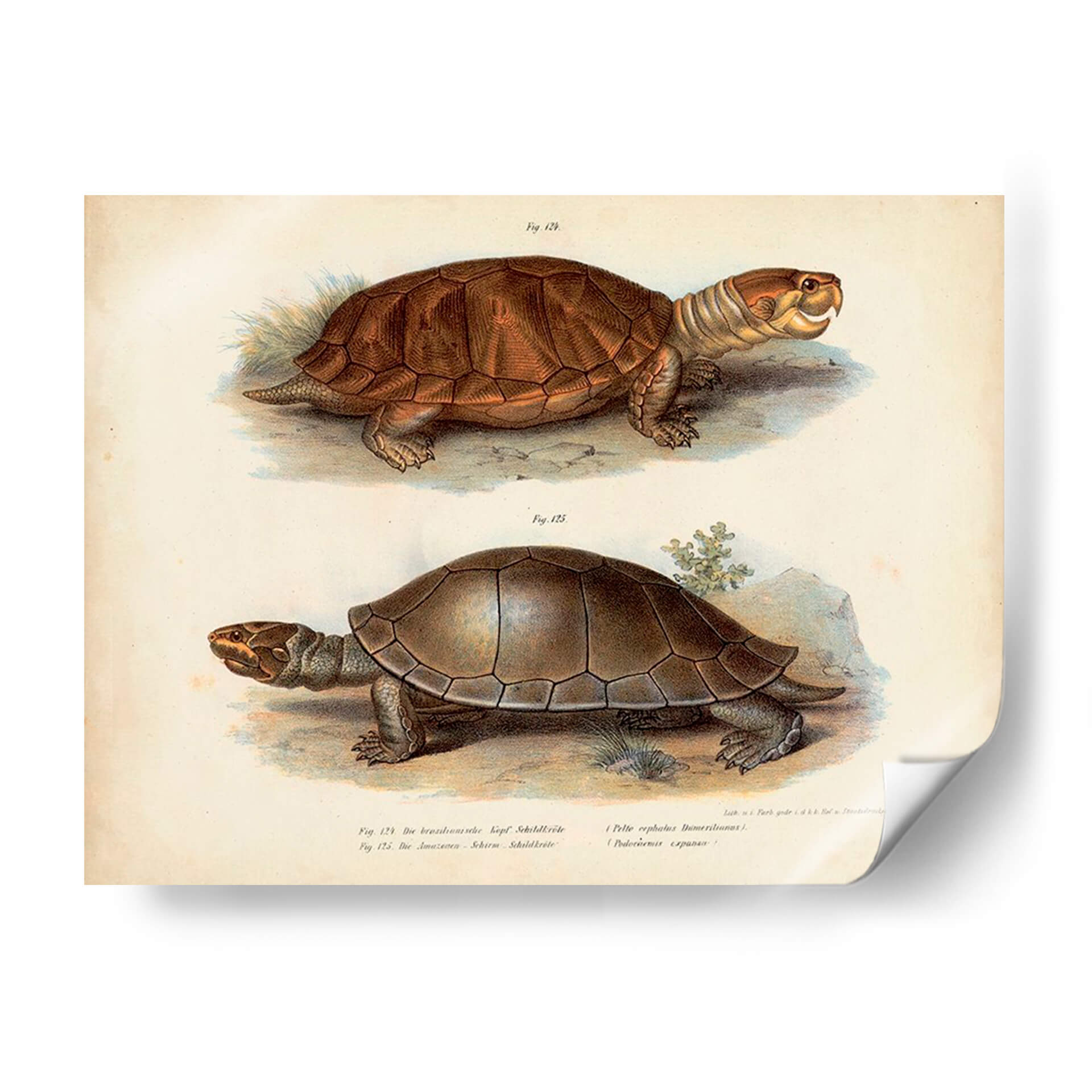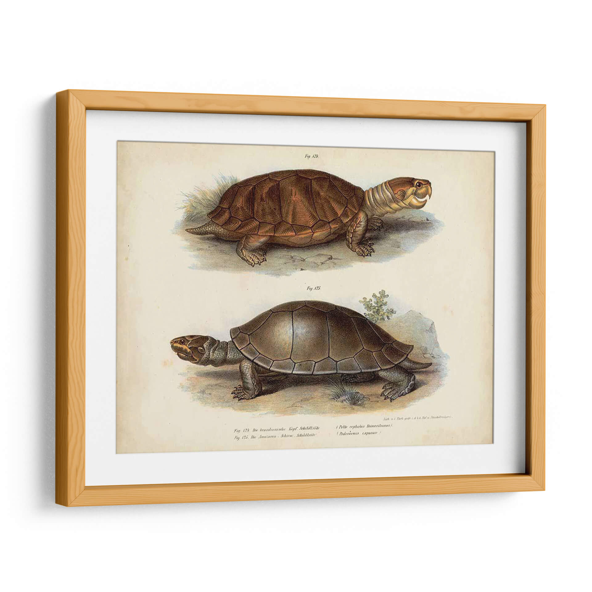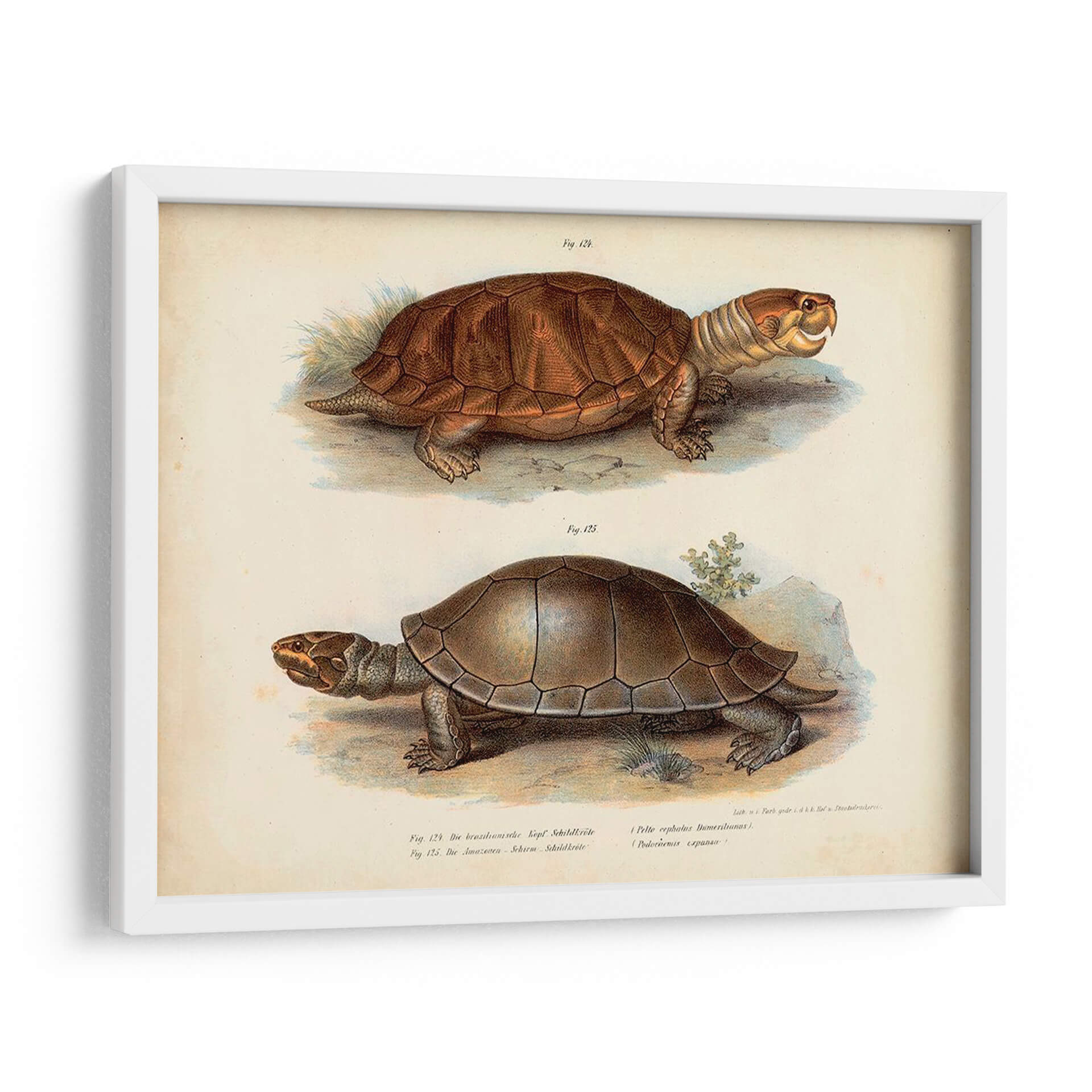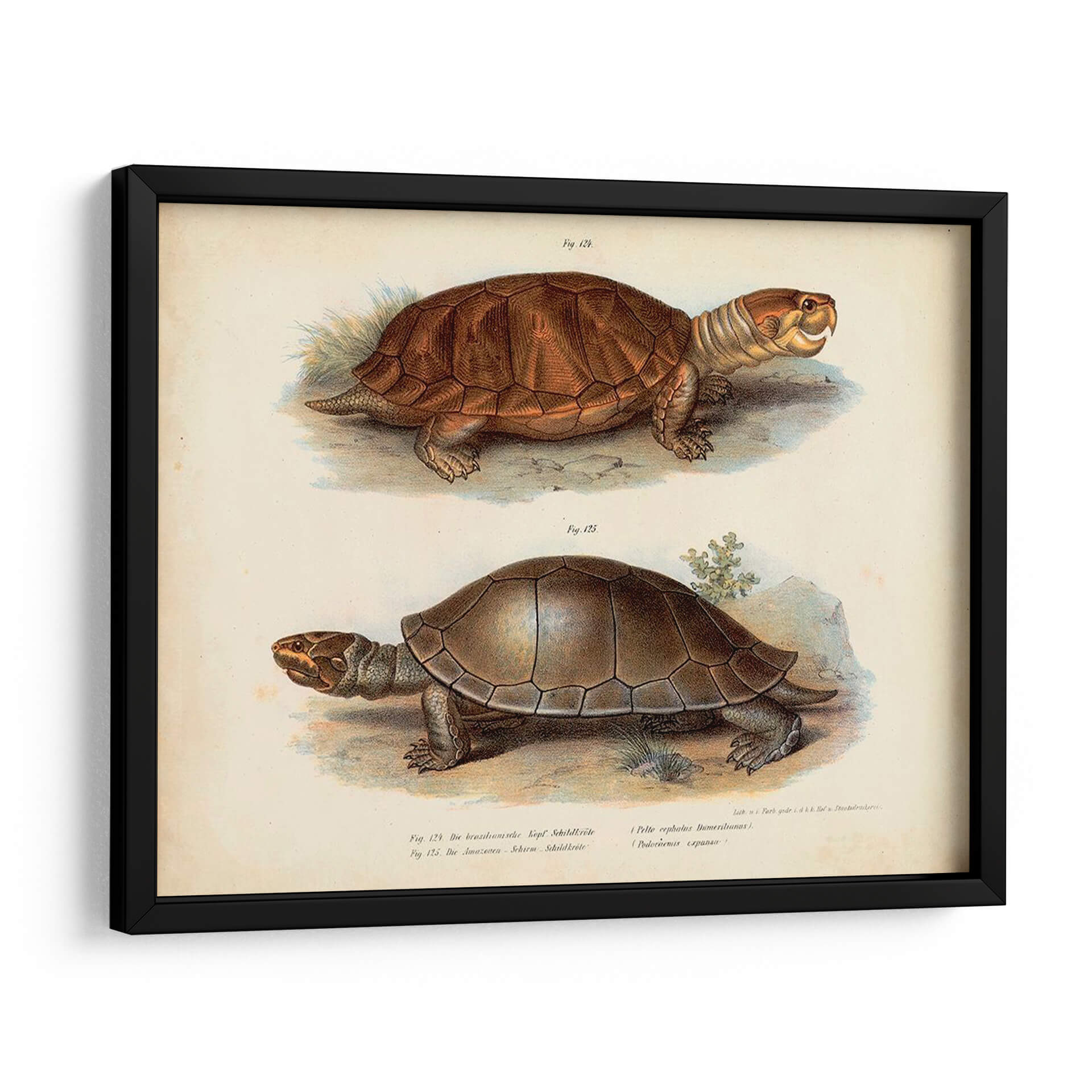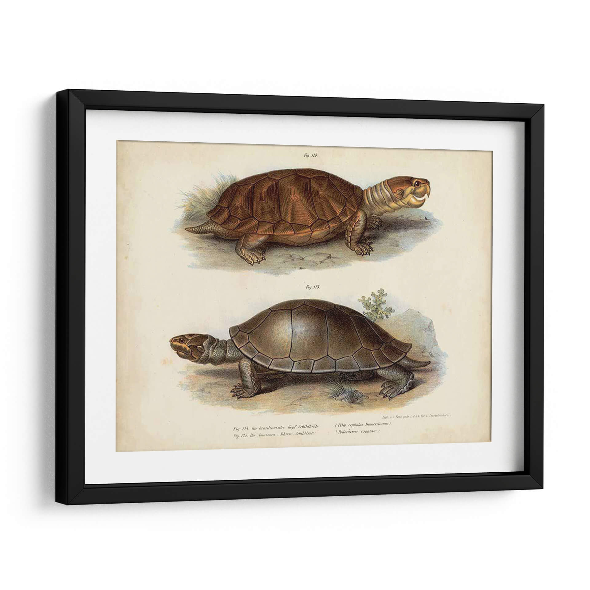 Este cautivador cuadro decorativo, titulado 'Pareja De Tortuga Antigua Ii' por Vision Studio, transporta a los espectadores a un mundo de maravilla natural con su detallada representación de dos tortugas. La obra presenta una paleta de colores terrosos y apagados, evocando una sensación de antigüedad y autenticidad. La composición, dividida en dos secciones claras, permite apreciar las características únicas de cada reptil, desde la textura intrincada de sus caparazones hasta la expresión cautelosa de sus rostros. El estilo de ilustración científica, reminiscentes de grabados antiguos, añade un toque de elegancia y sofisticación a la pieza. Es una adición perfecta para cualquier espacio que busque un elemento de calma y conexión con la naturaleza. Ideal para salones, estudios o dormitorios, este cuadro aportará un aire de serenidad y curiosidad intelectual. Su diseño atemporal lo convierte en una pieza versátil, capaz de complementar tanto decoraciones clásicas como contemporáneas, ofreciendo un punto de partida para conversaciones fascinantes sobre el mundo natural y su belleza perdurable. Añade un toque de historia y encanto a tu hogar con esta exquisita obra de arte.