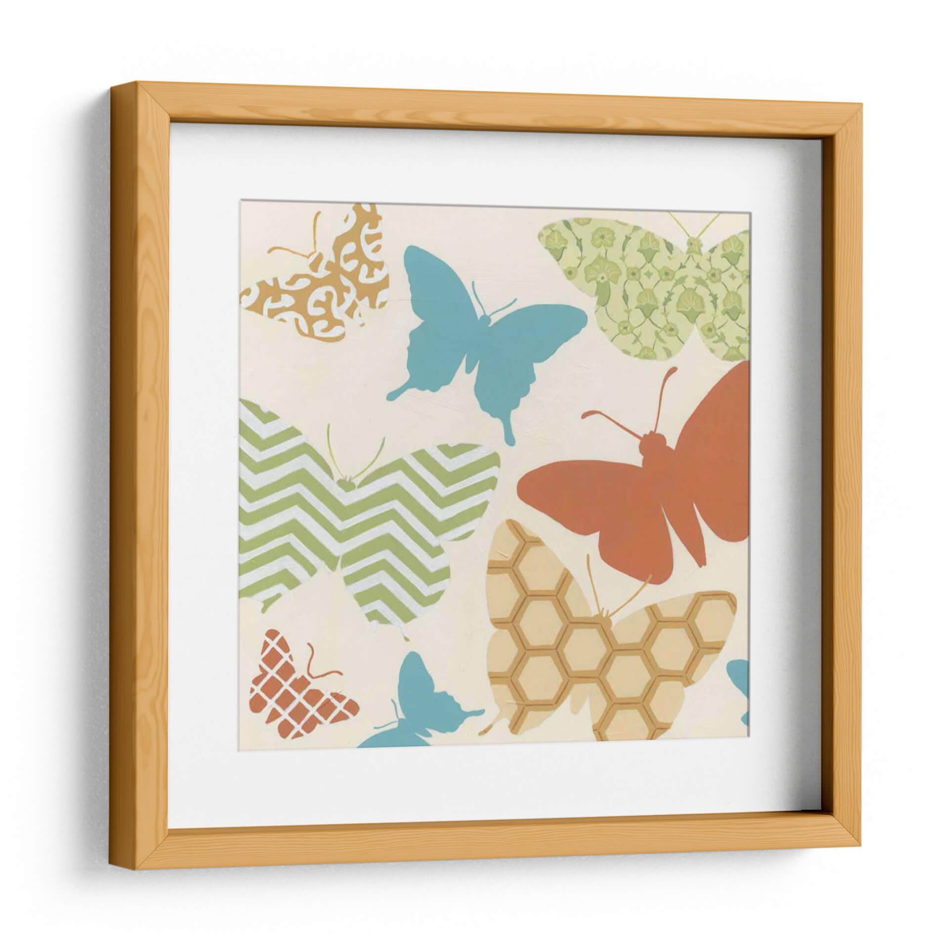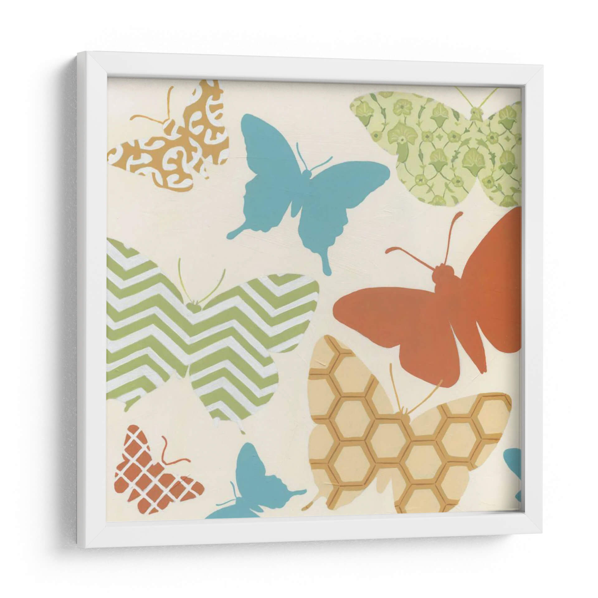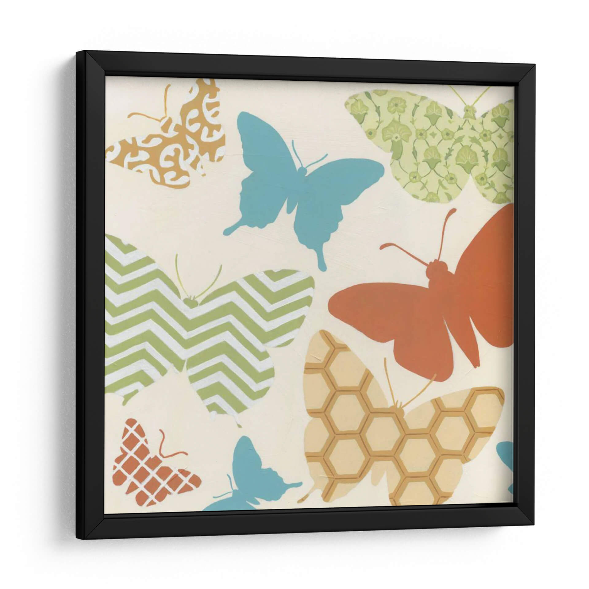 Embellece tu espacio con "Patrones De Mariposa I", una obra de arte contemporánea que celebra la belleza de la naturaleza a través de un diseño cautivador. Este cuadro decorativo presenta una vibrante colección de mariposas estilizadas, cada una adornada con patrones únicos que van desde el chevron y los hexágonos hasta intrincados diseños florales y geométricos. La paleta de colores, dominada por tonos tierra, verdes suaves y azules serenos, crea una atmósfera de tranquilidad y optimismo. El fondo neutro y cálido permite que las mariposas resalten, aportando vida y movimiento a cualquier pared. Ideal para dormitorios, salas de estar o incluso espacios de trabajo, este cuadro infunde una sensación de ligereza y encanto, invitando a la contemplación de la transformación y la belleza efímera. Añade un toque de sofisticación natural a tu decoración con esta pieza versátil que combina arte moderno y motivos orgánicos. Perfecta para quienes buscan una decoración de pared que sea a la vez elegante y llena de significado.