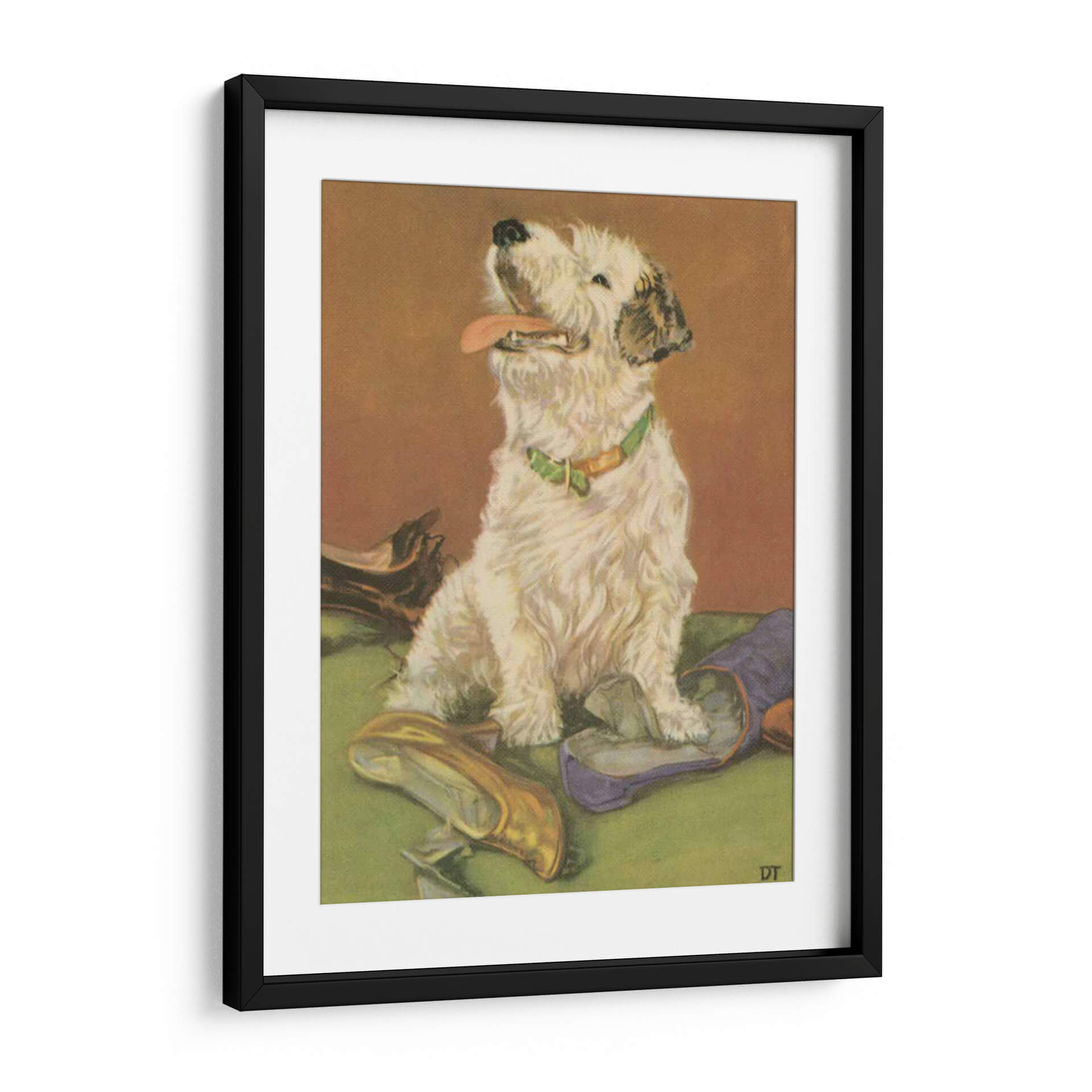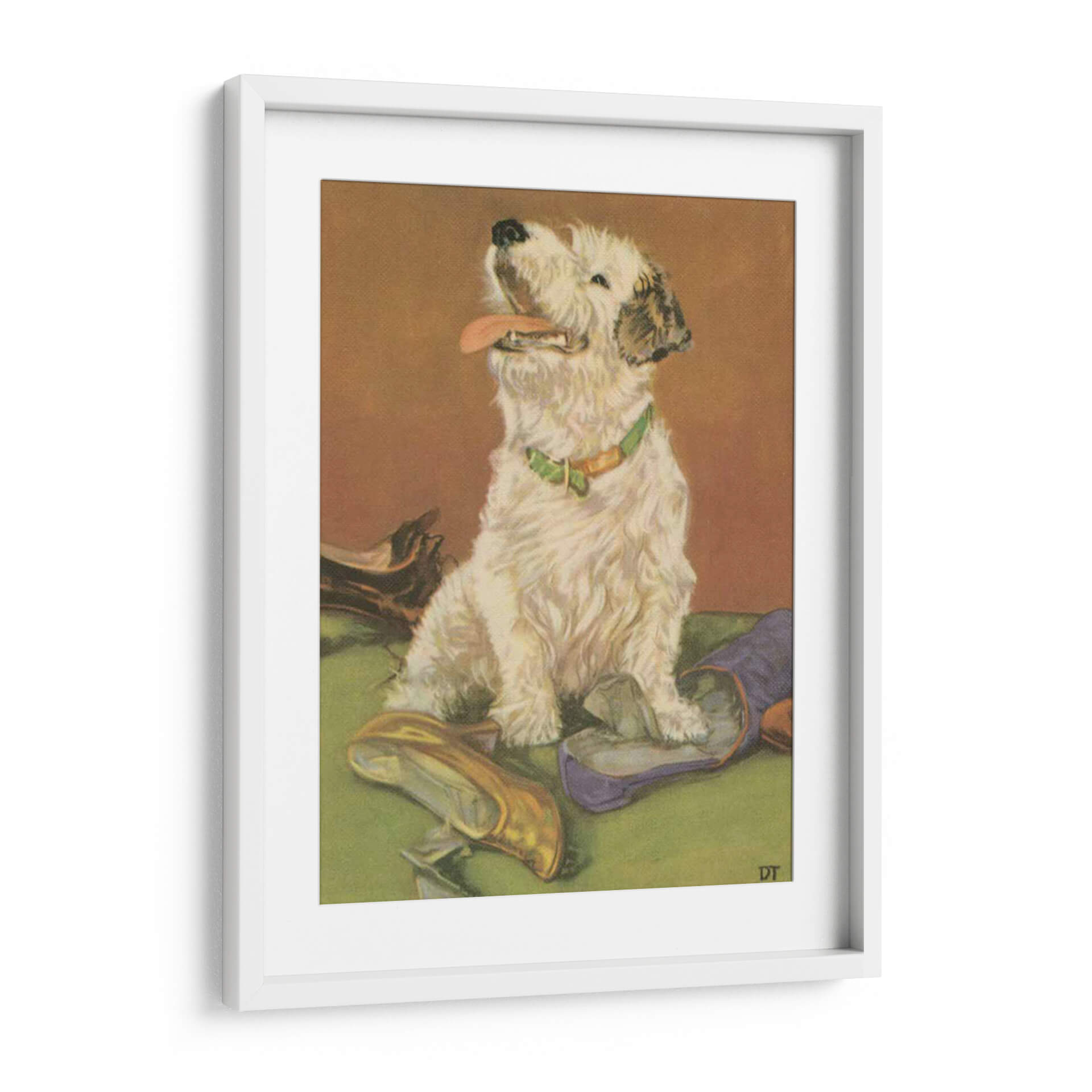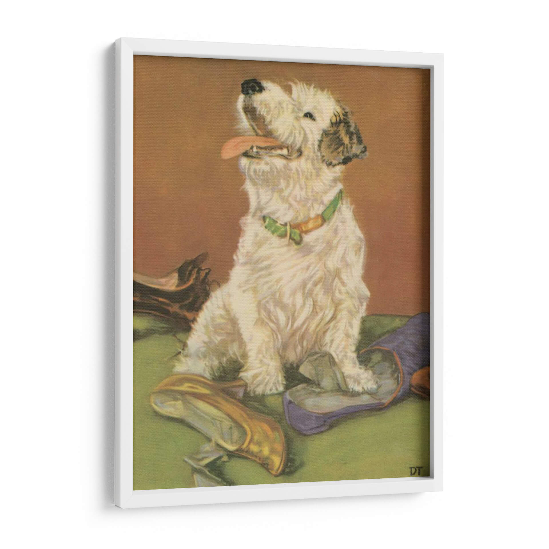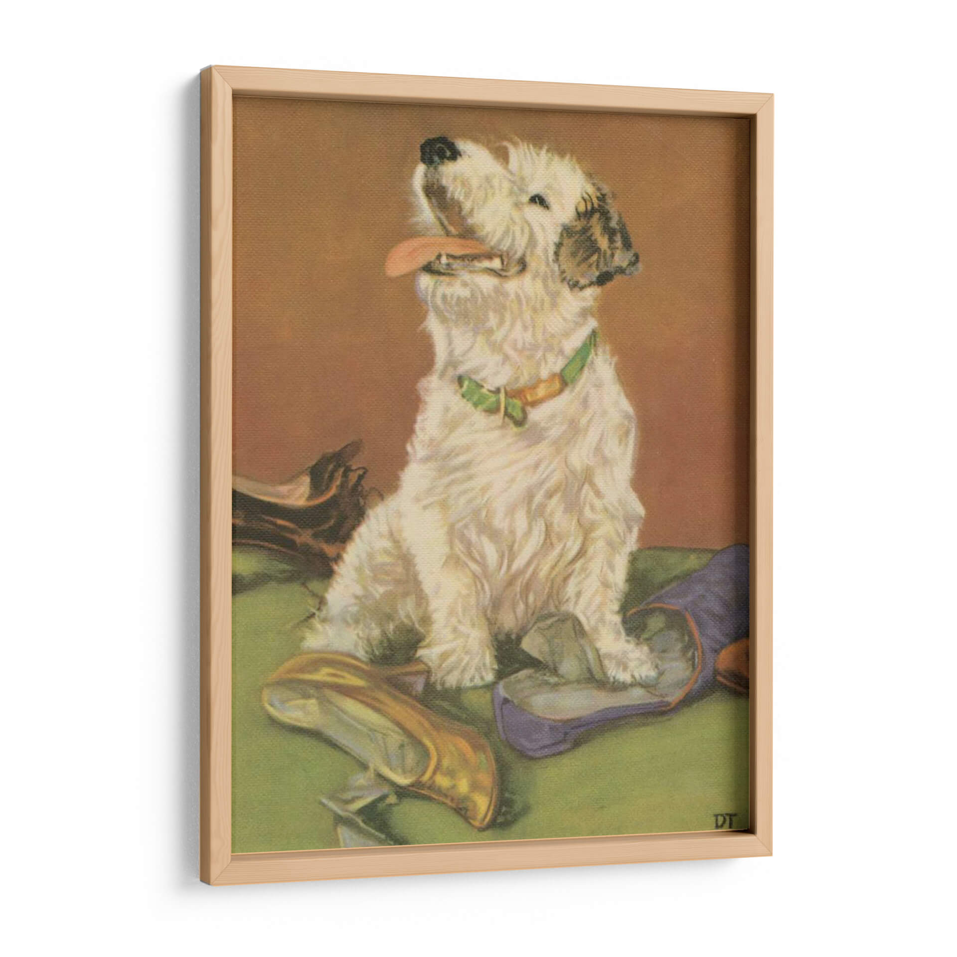 Capture la alegría y el encanto juguetón con "Problemas Terrier III", un cuadro decorativo que ilumina cualquier espacio con su vibrante energía. Esta encantadora obra presenta a un terrier blanco esponjoso sentado entre una colección de zapatos, con la lengua fuera y la mirada dirigida hacia arriba, transmitiendo una sensación de travesura adorable y satisfacción canina. La paleta de colores cálidos, con un fondo ocre suave y un toque de verde en la superficie, complementa perfectamente el pelaje del perro y los destellos dorados y púrpuras de los zapatos. El estilo pictórico, con pinceladas visibles que añaden textura y vida, evoca una atmósfera acogedora y nostálgica. Este cuadro decorativo es ideal para amantes de los perros, para añadir un toque de humor y personalidad a una sala de estar, una oficina o incluso un dormitorio. Su composición centrada y el tema universalmente querido lo convierten en una pieza versátil que atraerá sonrisas y conversaciones, aportando calidez y carácter a tu hogar.