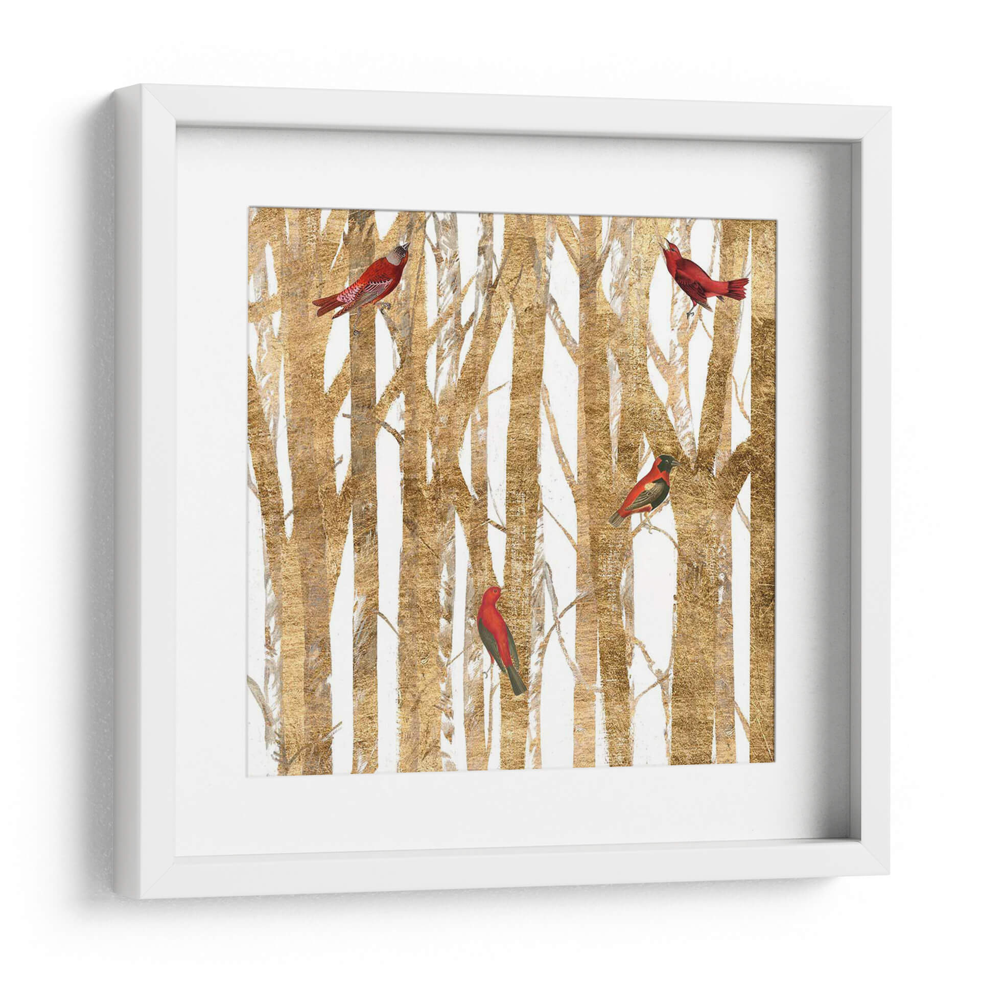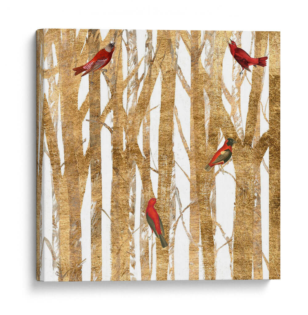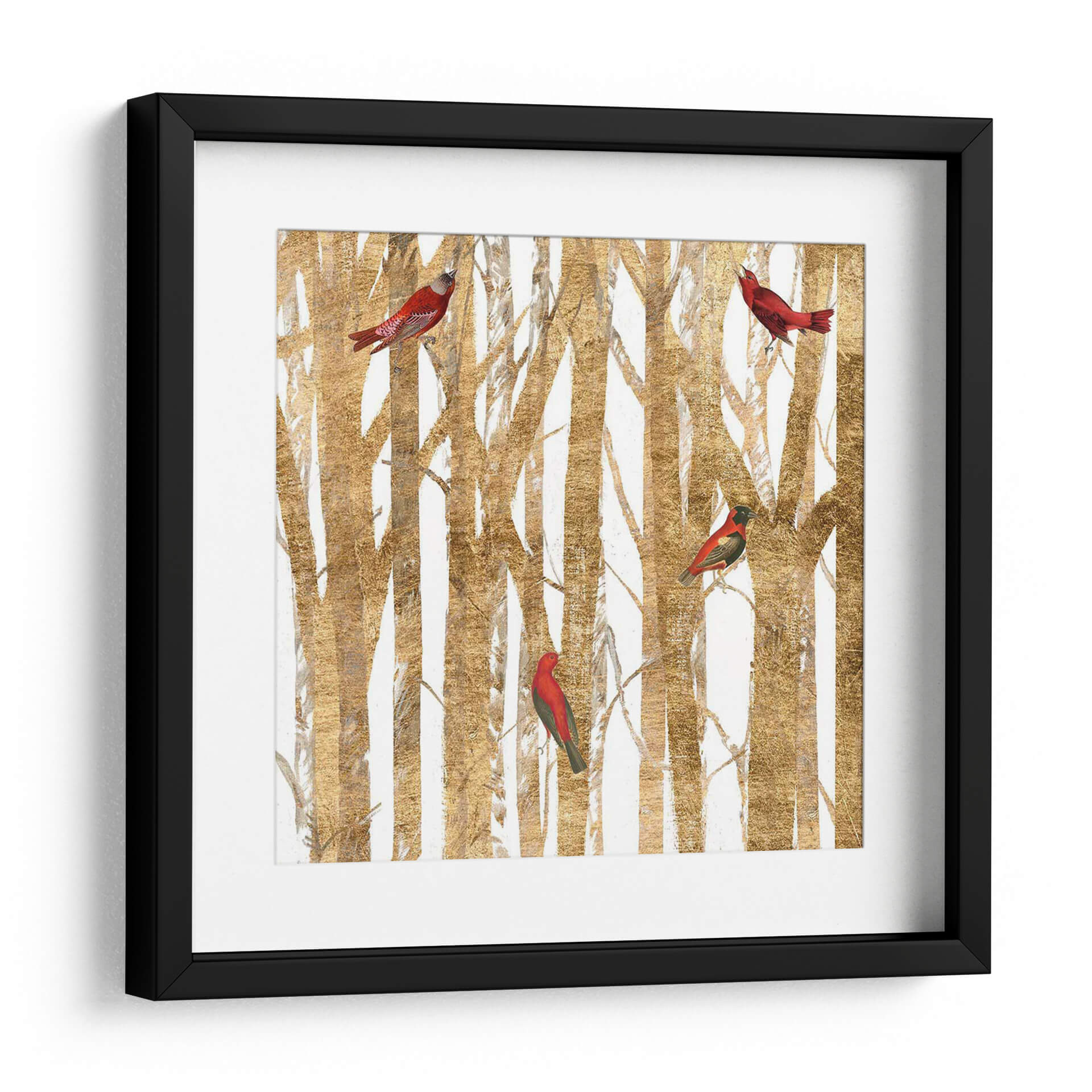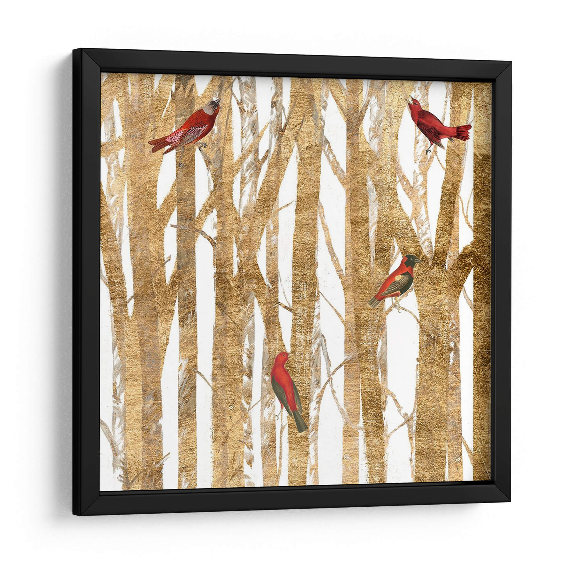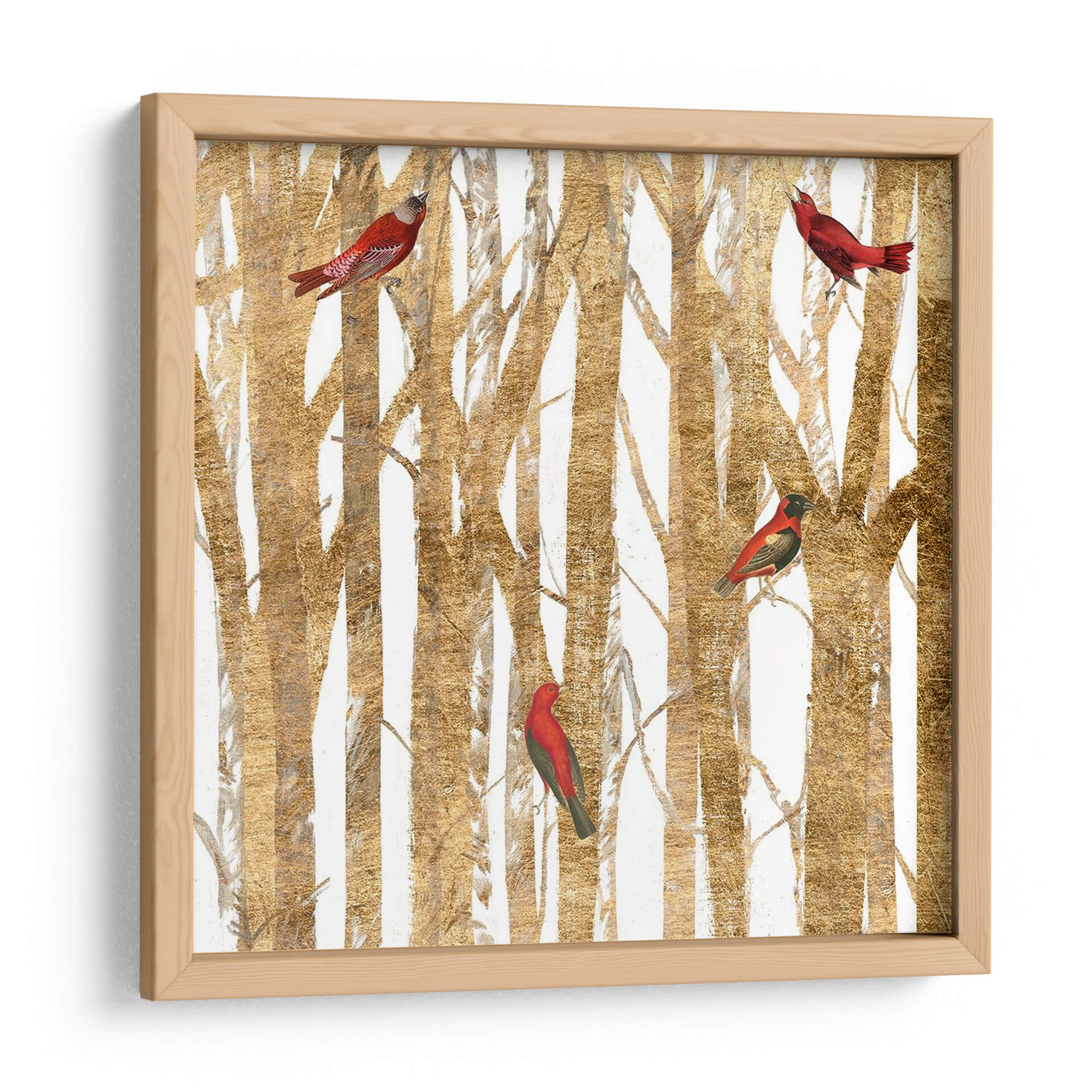 Este cautivador cuadro decorativo 'Red Bird Christmas Ii' del artista Studio W te transportará a un bosque invernal bañado en tonos dorados y blancos. La obra presenta una composición armoniosa donde cuatro aves rojas vibrantes se posan entre troncos estilizados, creando un contraste visual impactante. Los detalles de las aves, con sus plumajes ricos y sus siluetas definidas, capturan la imaginación, mientras que la textura del fondo evoca la corteza de los árboles con un acabado metálico y luminoso. La paleta de colores, dominada por el oro, el blanco y el rojo intenso, crea una atmósfera festiva pero elegante, ideal para añadir un toque de sofisticación y calidez a cualquier espacio. Su estilo, que combina elementos figurativos con un fondo texturizado y casi abstracto, lo hace versátil para diversas decoraciones, desde la clásica hasta la contemporánea. Perfecto para iluminar salones, recibidores o incluso dormitorios, este cuadro decorativo no solo embellece, sino que también infunde una sensación de serenidad y la magia de la naturaleza en tu hogar. Una elección excepcional para quienes buscan una pieza de arte única que celebre la belleza de las estaciones y la vida silvestre.