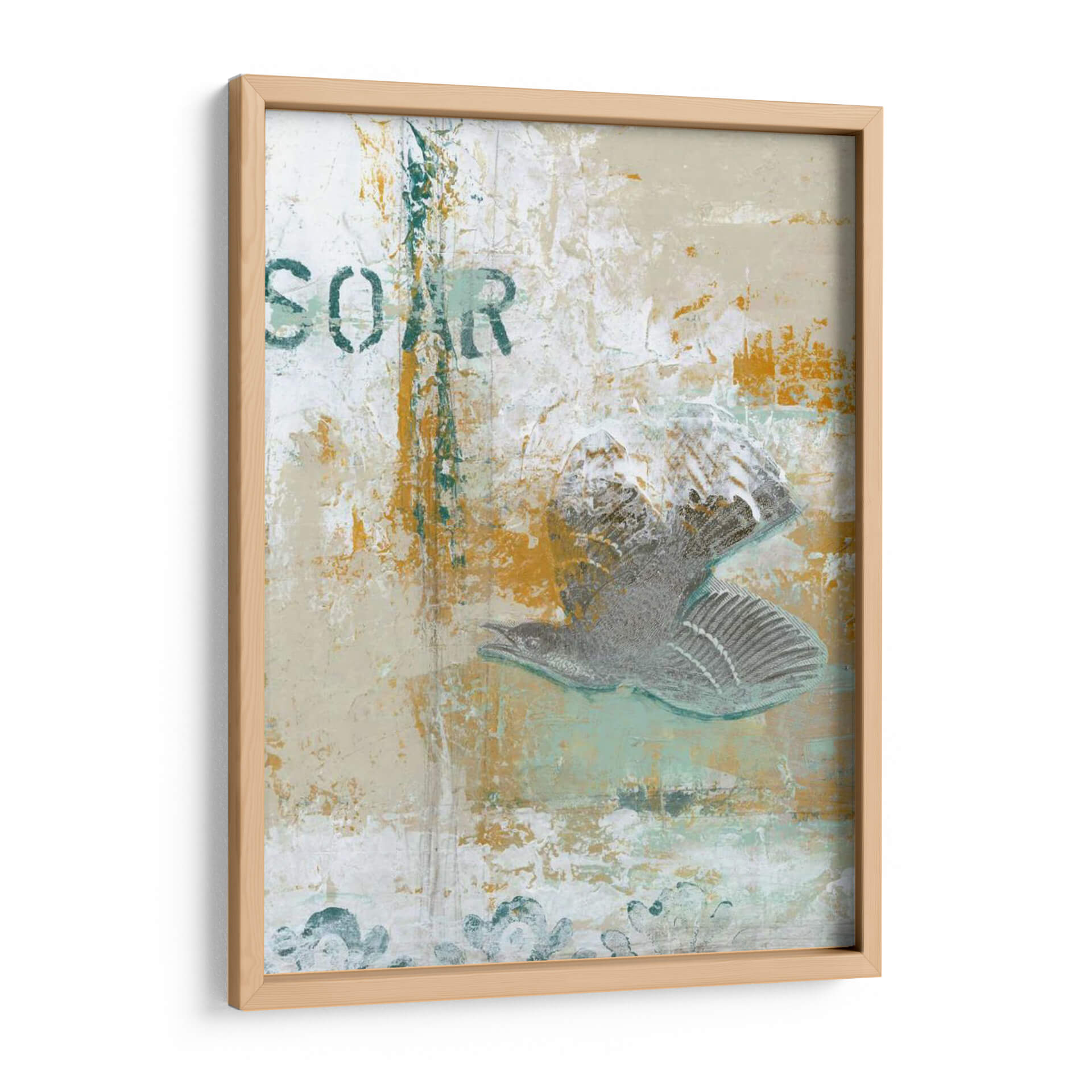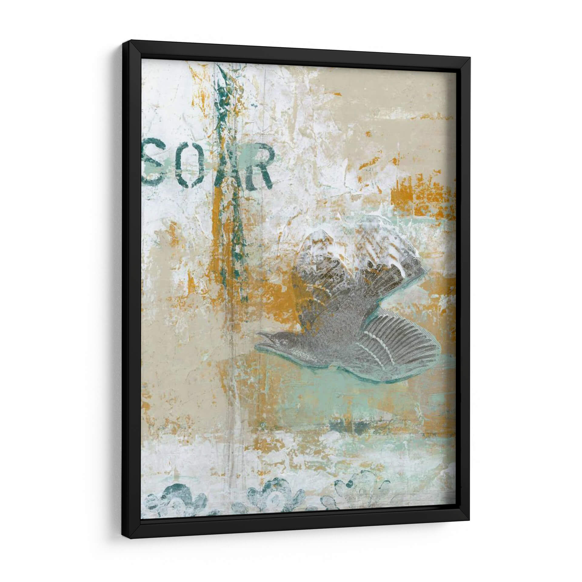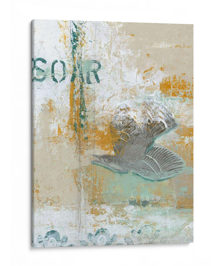 Captura la esencia de la libertad y el movimiento con "Remontarse", una obra de arte contemporáneo que evoca la majestuosidad del vuelo. Este cuadro decorativo presenta una interpretación abstracta y texturizada de un pájaro en pleno ascenso, con un estilo que fusiona lo orgánico con lo urbano. La paleta de colores, dominada por tonos tierra, ocres vibrantes, blancos desgastados y sutiles toques de verde azulado, crea una atmósfera rica y matizada. La composición, con la figura del ave destacando sobre un fondo texturizado que sugiere grafitis o estarcidos, añade profundidad y un carácter dinámico a la pieza. Ideal para espacios que buscan un toque de inspiración y sofisticación, como una sala de estar moderna, un despacho o un recibidor. "Remontarse" no es solo una decoración, es una invitación a soñar y a alcanzar nuevas alturas, transformando cualquier pared en un lienzo de expresión personal. Su estilo abstracto y evocador la convierte en una pieza central para coleccionistas de arte contemporáneo y amantes de la decoración que aprecian la singularidad y la emoción en cada pincelada.