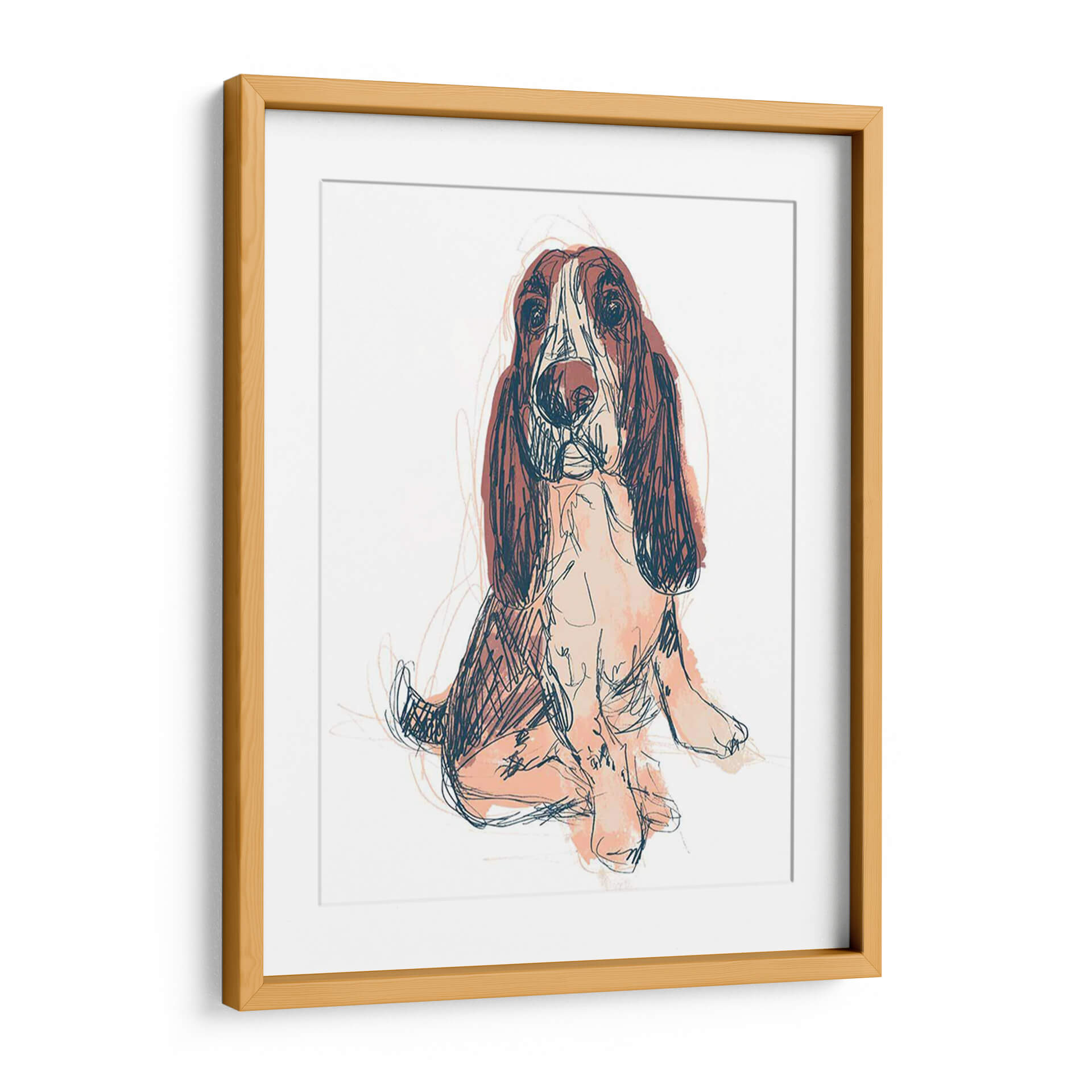 Captura la esencia juguetona y entrañable de tu compañero canino con este cautivador cuadro decorativo "Retrato de Perro - Ajax". La obra, creada por la talentosa artista June Erica Vess, presenta un sketch audaz y expresivo de un perro Basset Hound, resaltando su carácter dócil y sus icónicas orejas caídas. Utilizando una paleta de colores limitada pero impactante de tonos tierra, azules profundos y toques de salmón, la artista logra una pieza que es a la vez moderna y atemporal. La técnica de boceto, con líneas sueltas y gestuales, aporta una sensación de movimiento y espontaneidad, invitando al espectador a conectar con la personalidad del animal. Este retrato de perro es ideal para añadir un toque de calidez y personalidad a cualquier espacio, ya sea una sala de estar, una oficina o incluso una habitación infantil. Su estilo versátil se adapta perfectamente a decoraciones contemporáneas, rústicas o eclécticas. Más que una simple imagen, este cuadro decorativo es una celebración del vínculo especial entre humanos y animales, un recordatorio diario de la alegría y lealtad que nuestras mascotas nos brindan. Añade esta pieza única a tu colección y deja que Ajax ilumine tu hogar con su encanto inconfundible. Es una elección perfecta para amantes de los perros y apreciadores del arte con alma.