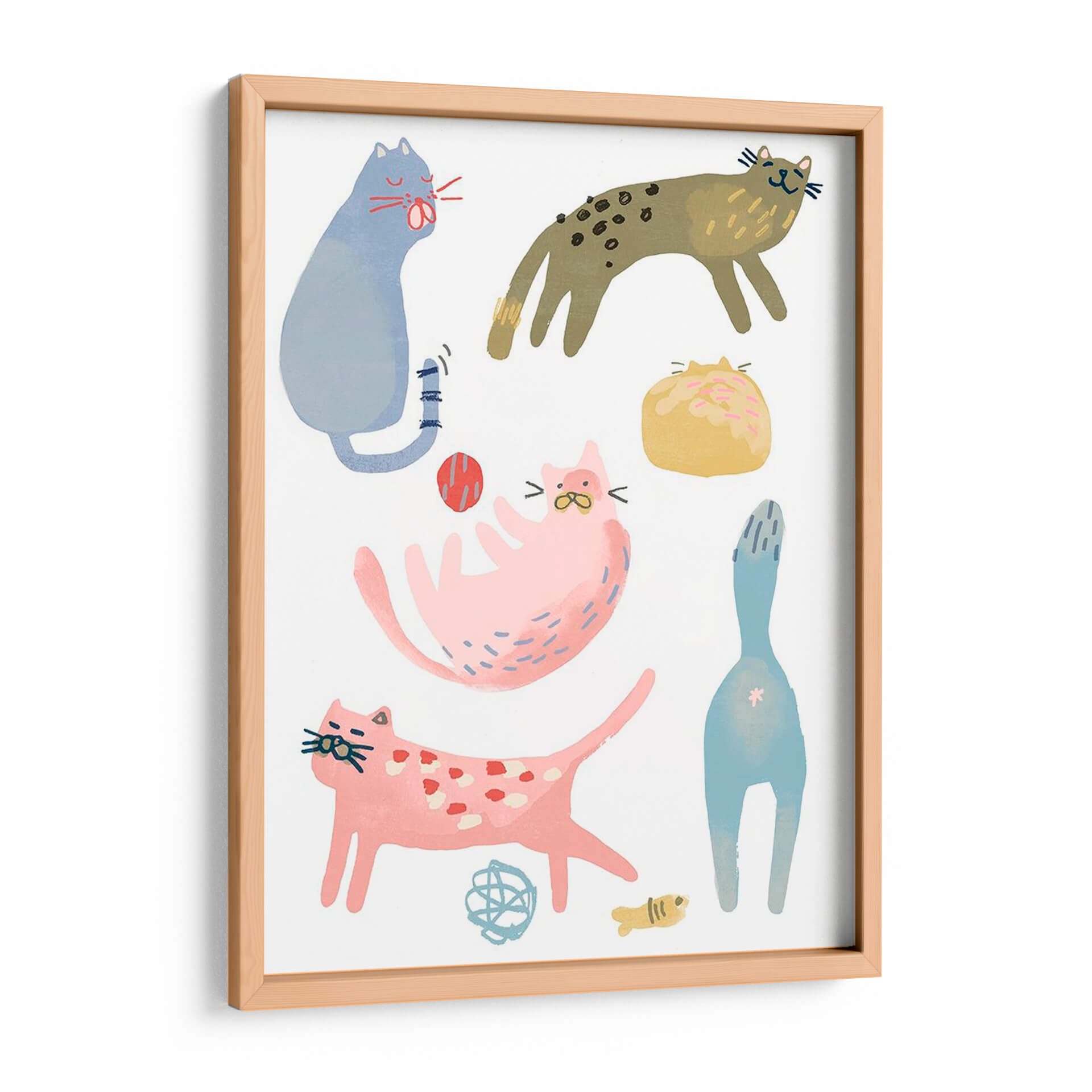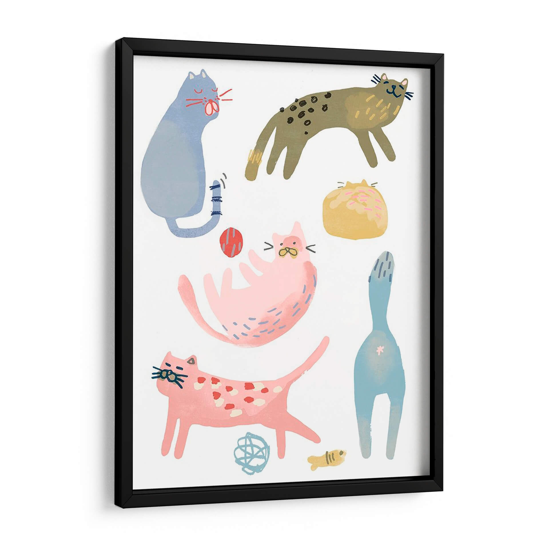 Inyecta una dosis de alegría y encanto juguetón a tu hogar con "Squado De Gato III", una obra de arte vibrante del artista June Erica Vess. Este cautivador cuadro decorativo presenta una adorable colección de gatos en diversas poses, cada uno con un carácter único que evoca sonrisas. La paleta de colores, que mezcla tonos pastel suaves como el rosa y el azul con toques terrosos y amarillos brillantes, crea una atmósfera alegre y acogedora. El estilo artístico, que combina trazos audaces con una delicadeza casi infantil, hace que esta pieza sea excepcionalmente atractiva y accesible. Ideal para cualquier amante de los felinos o para aquellos que buscan añadir un toque de diversión y personalidad a sus espacios. Este cuadro decorativo es perfecto para iluminar una sala de estar, añadir calidez a un dormitorio o dar vida a una guardería. Su composición dinámica y sus personajes carismáticos garantizan que se convierta en un punto focal y un tema de conversación. Transforma tu pared en una galería de arte con esta encantadora representación de gatos que irradia felicidad y calidez.