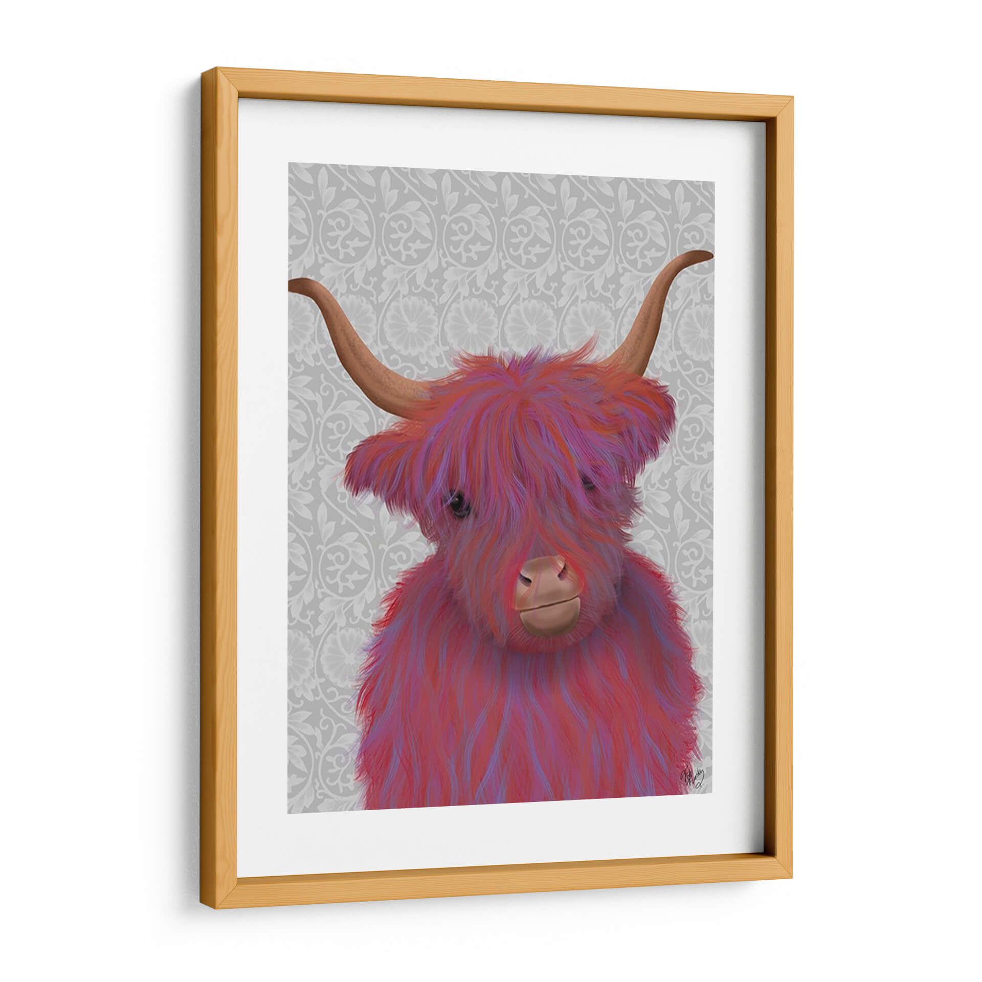 Vaca Highland 7, Rosa Y Púrpura, Retrato. - Fab Funky