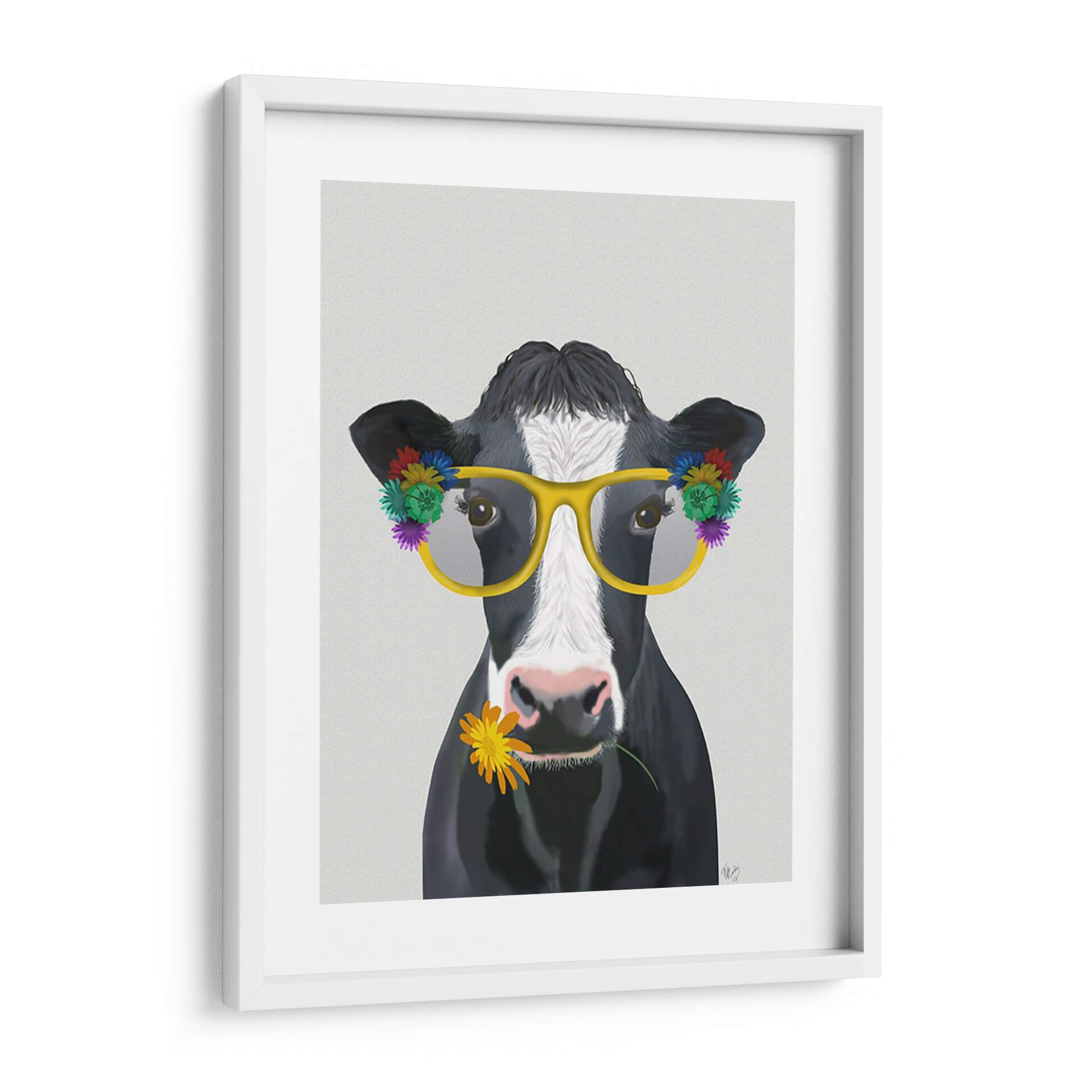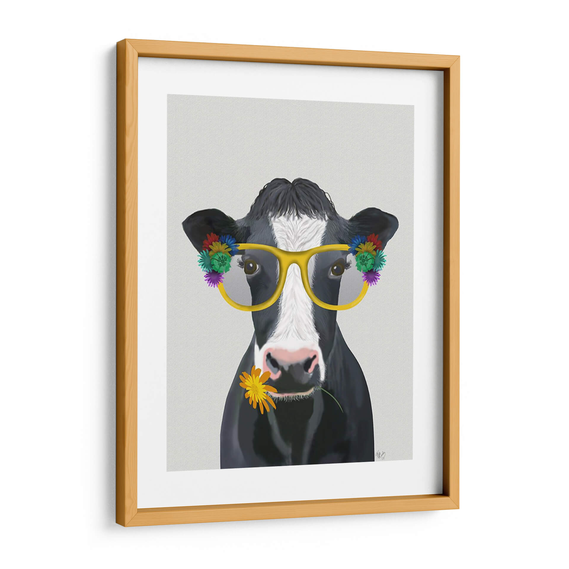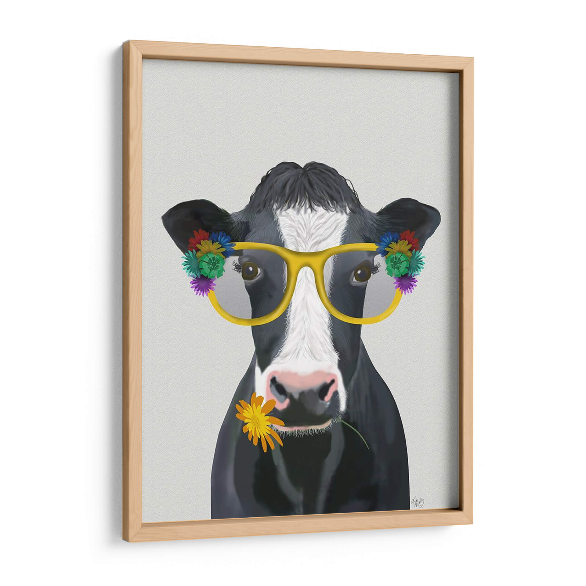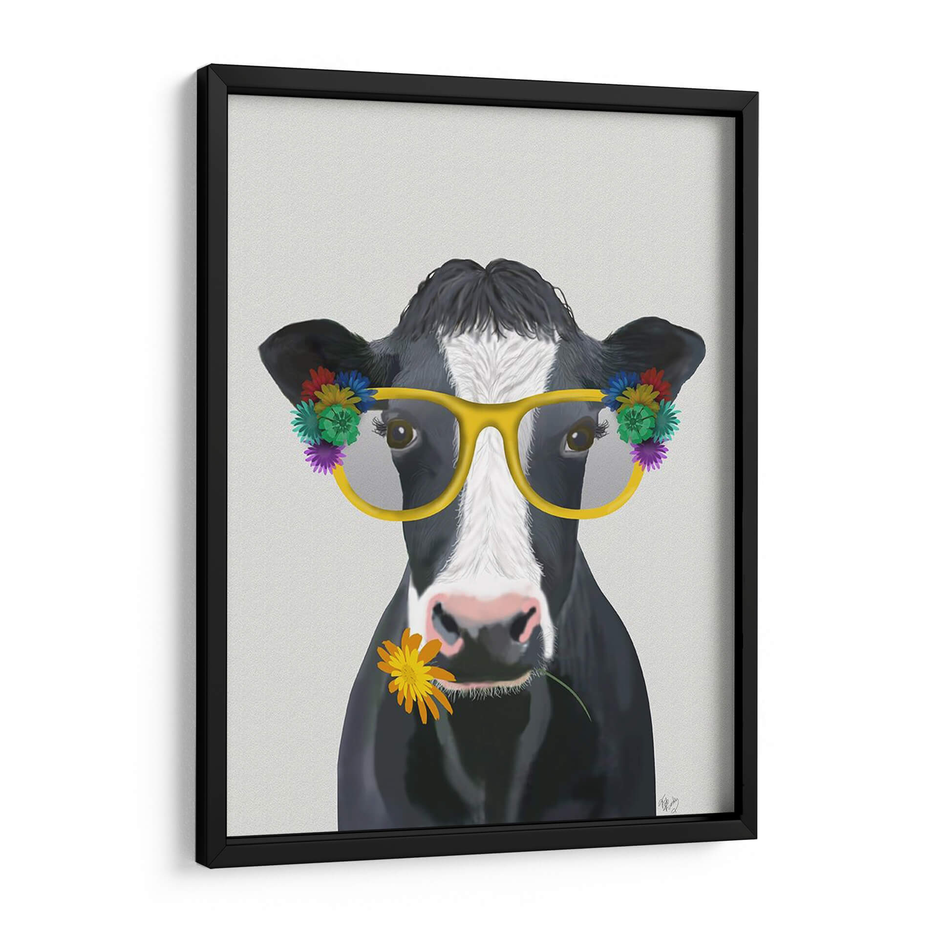 Aporta un toque de humor y estilo campestre a tu hogar con este encantador cuadro decorativo de una vaca con gafas y flores. La obra, titulada 'Vasos De Vaca Y Flores' del artista Fab Funky, presenta un diseño cautivador que combina la familiaridad de este animal de granja con un giro artístico moderno y divertido. Los colores vibrantes de las flores, que adornan las patillas de unas llamativas gafas amarillas, contrastan maravillosamente con el pelaje blanco y negro de la vaca, creando un punto focal alegre y lleno de personalidad. La composición se centra en el rostro expresivo del animal, con una flor silvestre colgando delicadamente de su boca, invitando a una sonrisa. Este cuadro es perfecto para quienes buscan romper con lo convencional y añadir una pieza de arte única que hable de su amor por la naturaleza y el arte contemporáneo. Ideal para salas de estar, cocinas, comedores o incluso como una pieza de acento en una oficina con un ambiente más relajado. Su estilo pop art con toques de acuarela digital le confiere una versatilidad que se adapta a decoraciones rústicas, modernas o eclécticas, aportando calidez y un carácter inconfundible a cualquier pared.