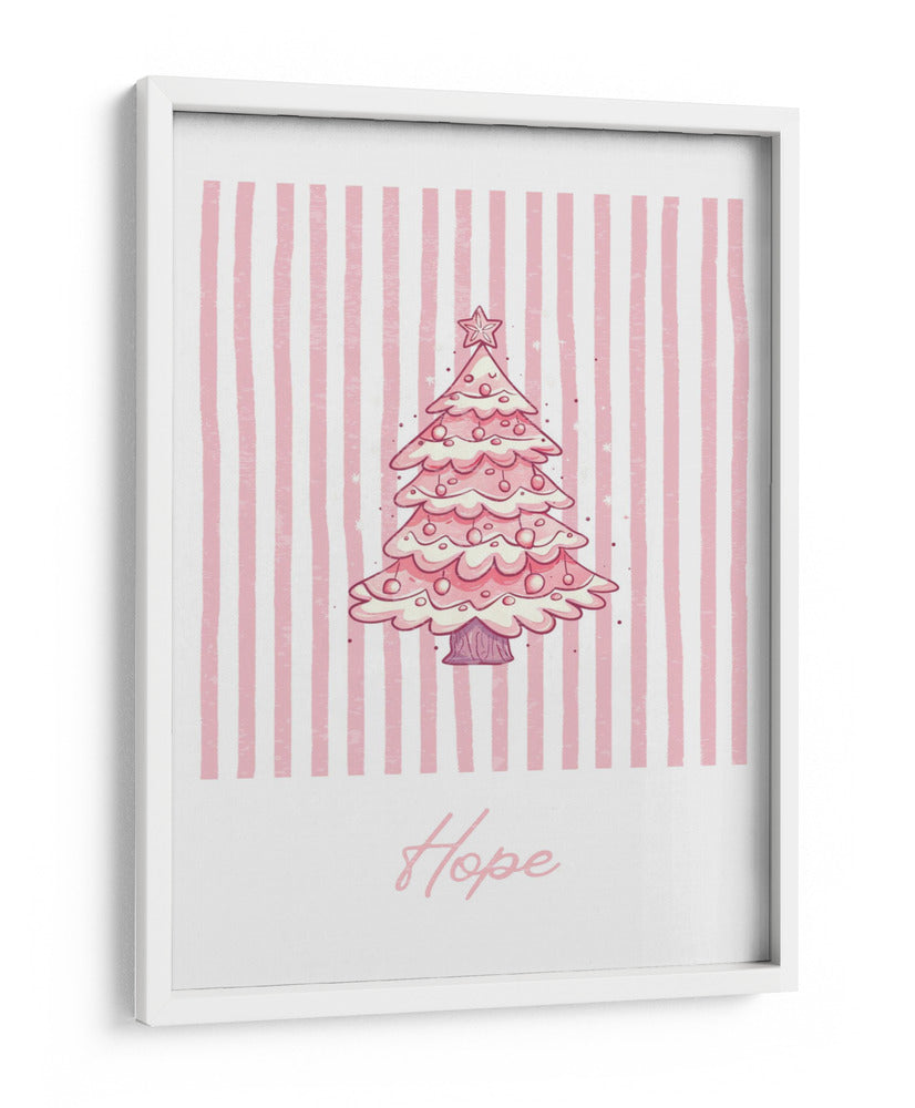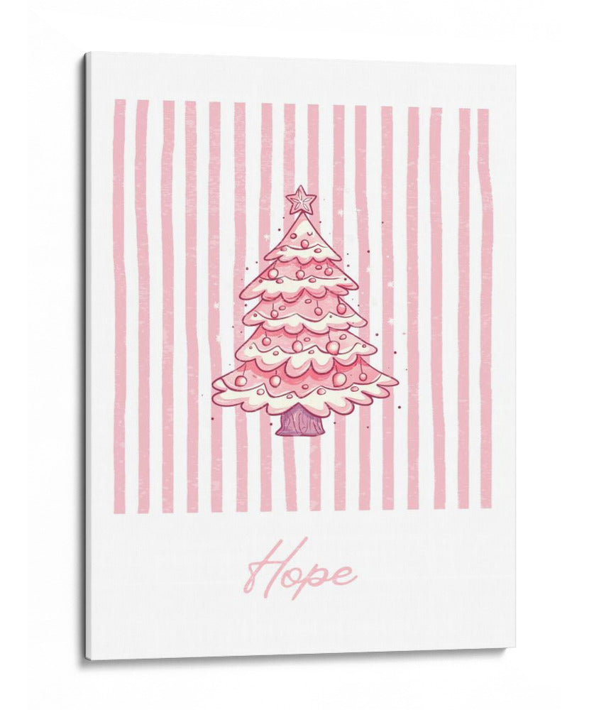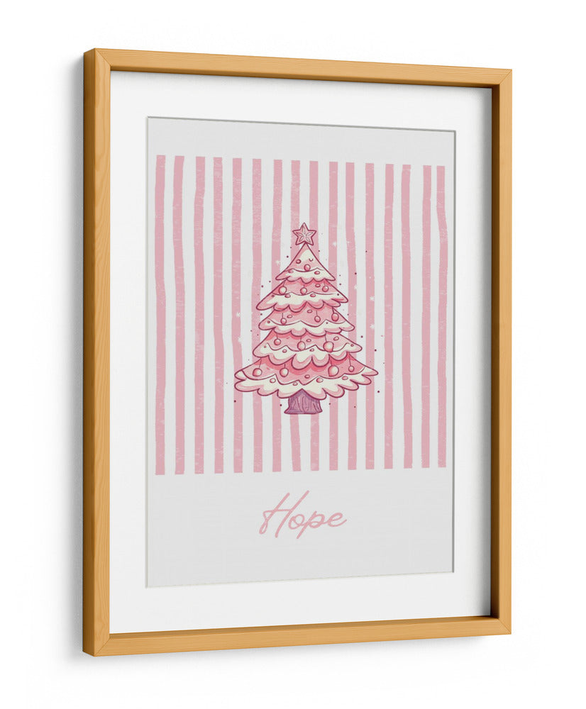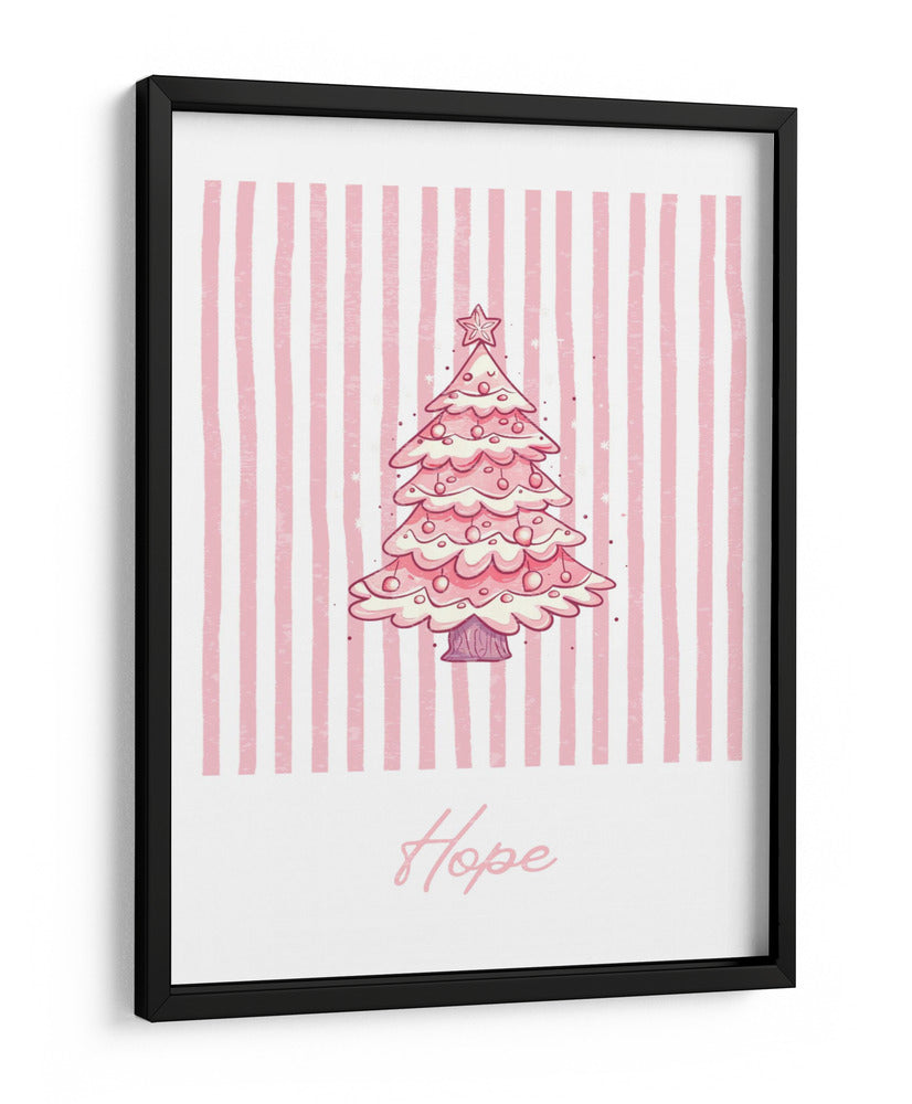Aporta una dosis de dulzura y optimismo a tu hogar con este encantador cuadro decorativo "Árbol de Navidad Esperanza - Rosa". La obra presenta un estilizado árbol de Navidad adornado con delicadas esferas y coronado por una estrella brillante, todo sobre un fondo de vibrantes rayas verticales en tonos rosados y blancos. El estilo de ilustración, con contornos definidos y un toque lúdico, evoca una sensación de alegría y esperanza, especialmente capturada en la palabra "Hope" escrita con una caligrafía elegante en la parte inferior. Esta pieza de arte contemporáneo es perfecta para añadir un toque festivo y acogedor a cualquier espacio, desde una sala de estar moderna hasta una habitación infantil o un rincón acogedor en tu oficina. Sus suaves colores pastel y su composición equilibrada la convierten en un complemento ideal para decoraciones que buscan transmitir calidez, positividad y un espíritu navideño lleno de encanto. Transforma tus paredes en un lienzo de emociones positivas con este cuadro decorativo único, diseñado para inspirar y deleitar a quienes lo contemplen.