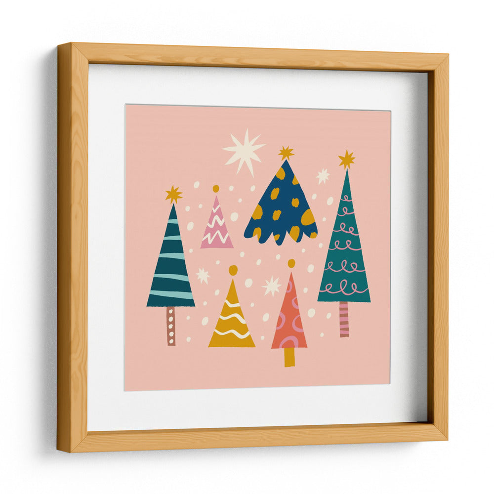 Celebra la alegría festiva y el espíritu invernal con "Feliz Navidad No. 41", una obra de arte vibrante y encantadora del artista Treechild. Este cuadro decorativo presenta una encantadora colección de árboles de Navidad estilizados sobre un suave fondo rosa empolvado. Cada árbol es una explosión de diseño, con patrones que van desde alegres lunares y zigzags hasta audaces rayas, adornados con estrellas doradas que centellean en la cima. La paleta de colores, dominada por tonos joya como el azul profundo y el coral vibrante, se complementa maravillosamente con toques de amarillo mostaza y verde azulado, creando una atmósfera de calidez y celebración. Las salpicaduras de puntos blancos y las delicadas estrellas dispersas sugieren una suave nevada, añadiendo una dimensión etérea a la composición. El estilo es distintivamente moderno y lúdico, con formas limpias y una ejecución gráfica que lo hace accesible y atractivo. Ideal para infundir un espíritu festivo en cualquier habitación, este cuadro es perfecto para la decoración de temporada en salas de estar, comedores o incluso como un acento alegre en una oficina. Su diseño optimista y sus colores alegres lo convierten en una pieza versátil que puede alegrar el espacio durante las fiestas y más allá, evocando sentimientos de nostalgia y pura felicidad navideña. Añade un toque de encanto escandinavo moderno a tu hogar con esta pieza única.