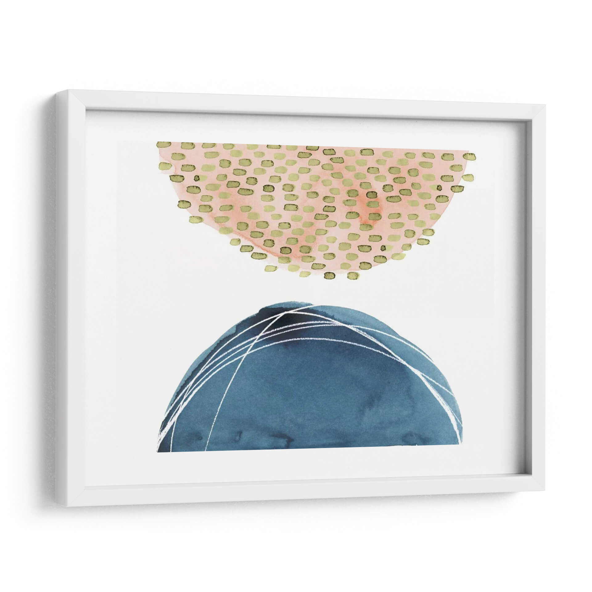 Sumérgete en la serena elegancia de "Arriba Y Sobre Ii", una obra de arte contemporáneo que combina formas orgánicas y texturas sutiles para crear una atmósfera de calma y sofisticación. Esta pieza, del artista Grace Popp, presenta una composición abstracta que evoca la armonía de la naturaleza y la fluidez del movimiento. La paleta de colores, dominada por un profundo azul cobalto y un suave tono salmón salpicado de detalles en verde oliva, aporta un equilibrio visual cautivador. La parte superior de la obra se adorna con un patrón delicado de pinceladas o puntos irregulares en tonos verdosos sobre un fondo salmón, sugiriendo una textura orgánica y un aire bohemio. Debajo, una forma redondeada en un rico azul marino, con líneas blancas finas y sinuosas que añaden dinamismo y profundidad, ancla la composición. "Arriba Y Sobre Ii" es ideal para espacios que buscan un toque de serenidad y arte moderno, como salas de estar, dormitorios o estudios. Su estilo abstracto y contemporáneo la convierte en una pieza versátil, capaz de complementar tanto decoraciones minimalistas como eclécticas, añadiendo un punto focal de refinada belleza y tranquilidad.