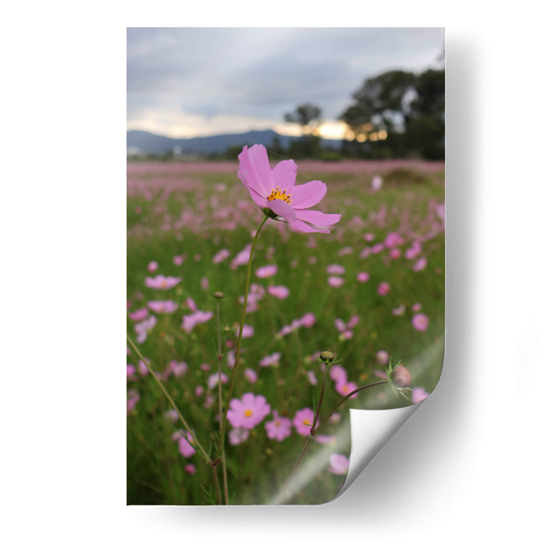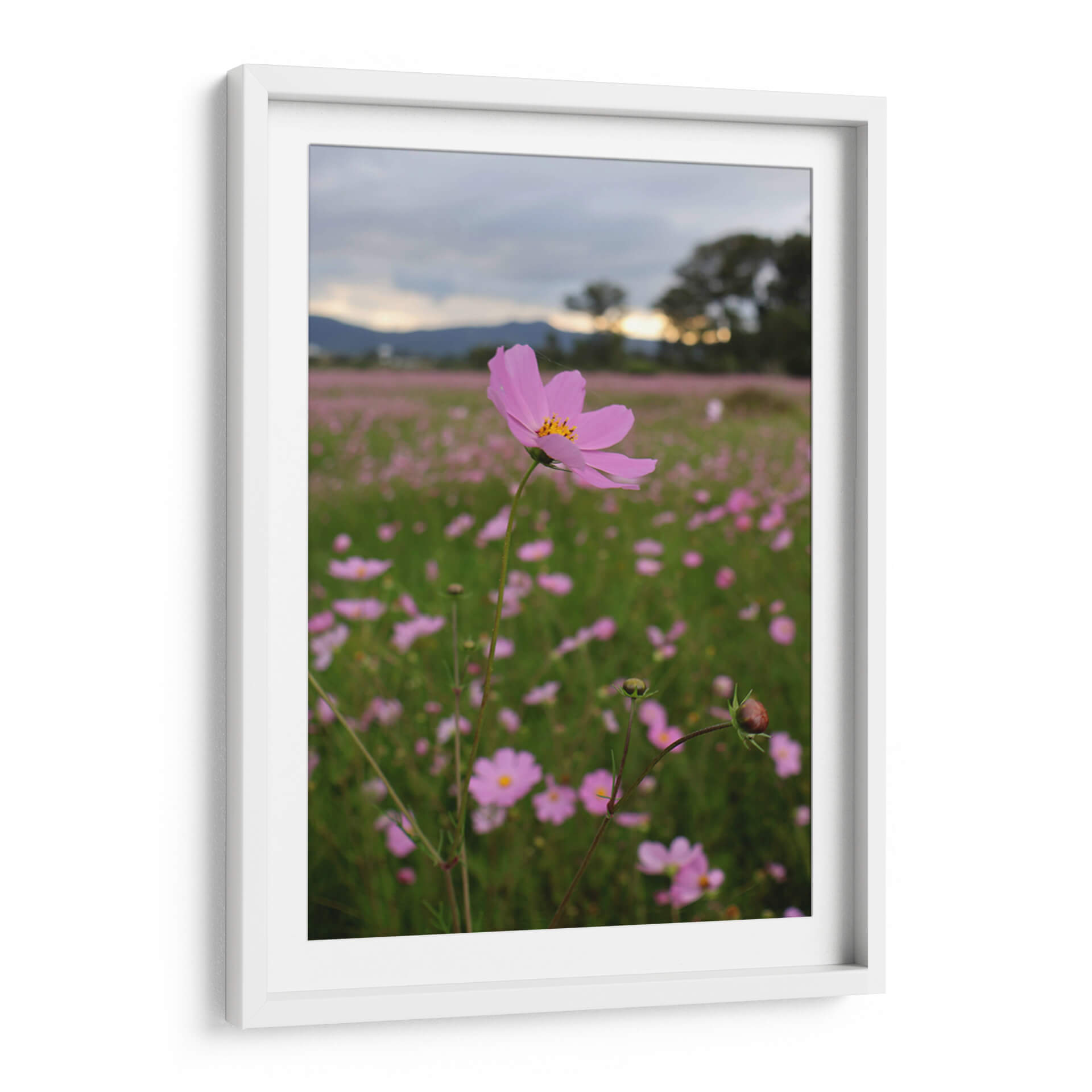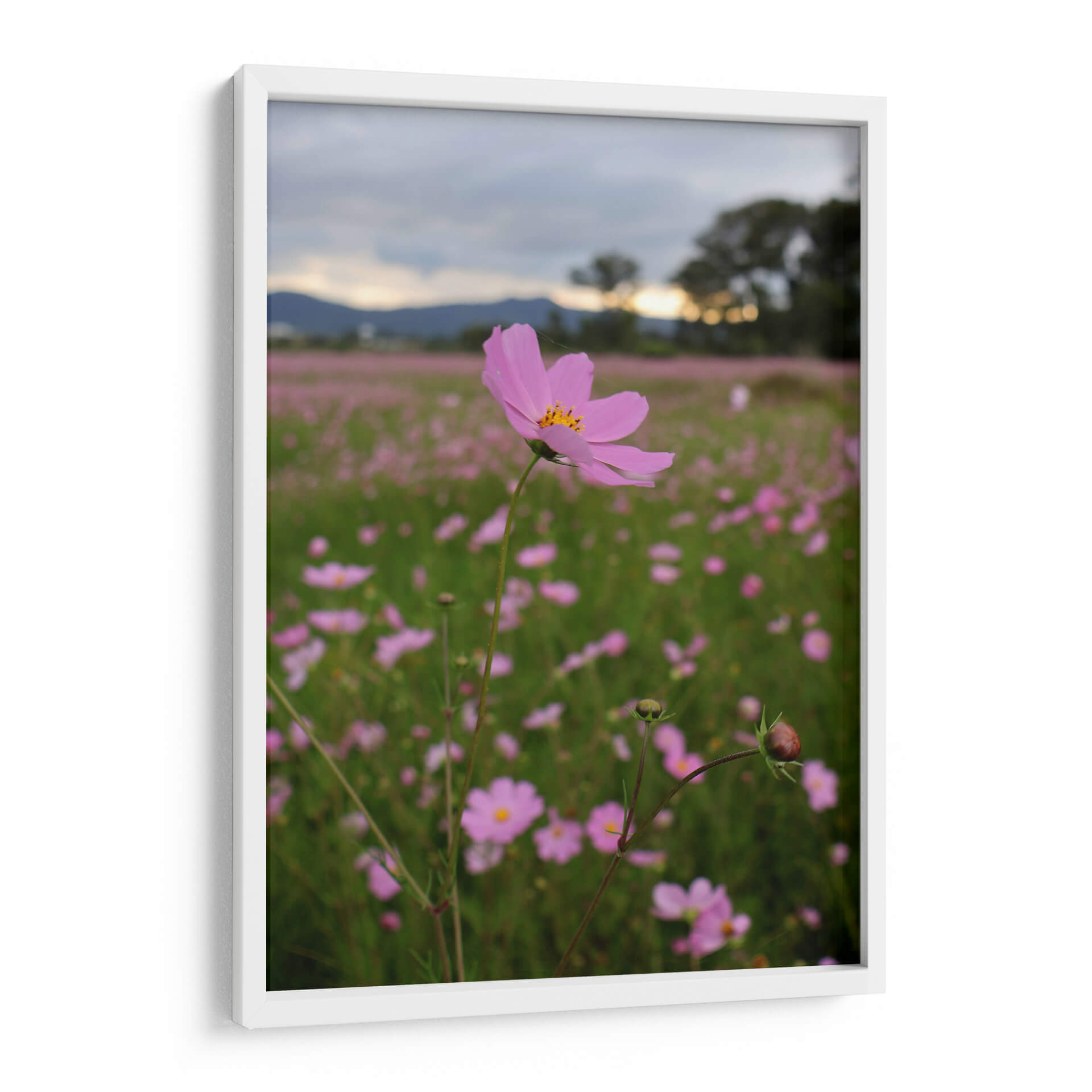 Sumérgete en la serena belleza de "Campos de Mirasoles 3", una obra de arte que captura la delicadeza de la naturaleza en su máxima expresión. Este cuadro decorativo te transporta a un vibrante campo de flores de cosmos de un suave tono rosado, donde una flor principal, con pétalos de un rosa más intenso y un centro amarillo vibrante, se alza con elegancia. El fondo se desdibuja en una suave neblina, revelando colinas al atardecer y un cielo nublado que añade profundidad y atmósfera. Los tonos verdes y rosados predominantes crean una sensación de paz y armonía, perfecta para infundir calma en cualquier espacio. Ideal para salones, dormitorios o estudios que buscan un toque de frescura y color. El estilo fotográfico y la composición centrada en la flor principal la convierten en un punto focal cautivador. Esta pieza de Nosion es más que una simple decoración; es una invitación a conectar con la tranquilidad y la efímera belleza del mundo natural, aportando un aire de sofisticación botánica a tu hogar u oficina.