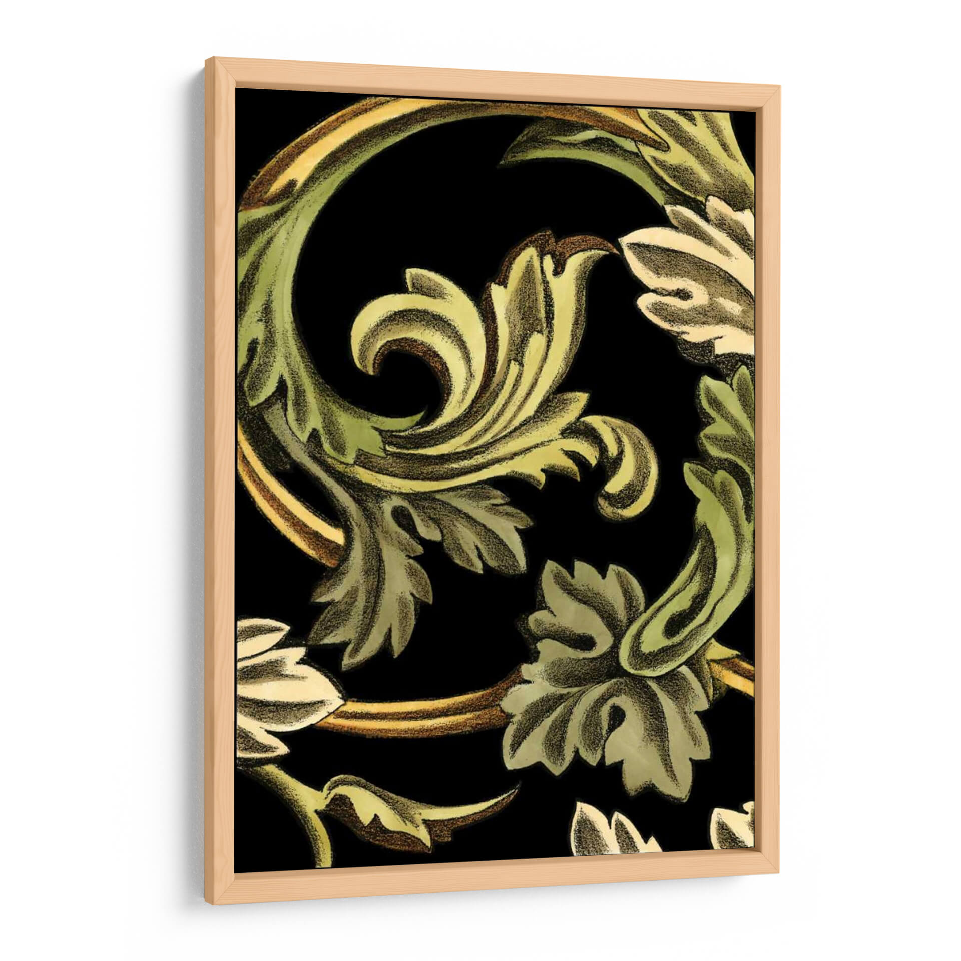 Sumérgete en la opulencia y el detalle con "Clásico Friee II", una obra de arte que evoca la grandiosidad de los motivos ornamentales tradicionales. Este cuadro decorativo presenta un patrón intrincado de volutas vegetales y hojas estilizadas sobre un fondo negro profundo, creando un contraste impactante y sofisticado. La paleta de colores, dominada por tonos verdes musgo, dorados sutiles y toques terrosos, aporta una sensación de riqueza y atemporalidad. El estilo, que recuerda a los diseños barrocos y rococó pero con un toque contemporáneo en su ejecución, otorga profundidad y textura a la composición. Cada curva y detalle está magistralmente delineado, invitando a la contemplación y añadiendo un aire de elegancia clásica a cualquier espacio. Ideal para salones que buscan un punto focal de distinción, estudios con carácter o comedores que deseen una atmósfera de refinamiento, "Clásico Friee II" es más que una simple decoración; es una declaración de estilo que enriquece visualmente el entorno. Transforma tu hogar u oficina con este diseño atemporal que fusiona la herencia artística con una sensibilidad moderna, asegurando una pieza que perdurará y será admirada.