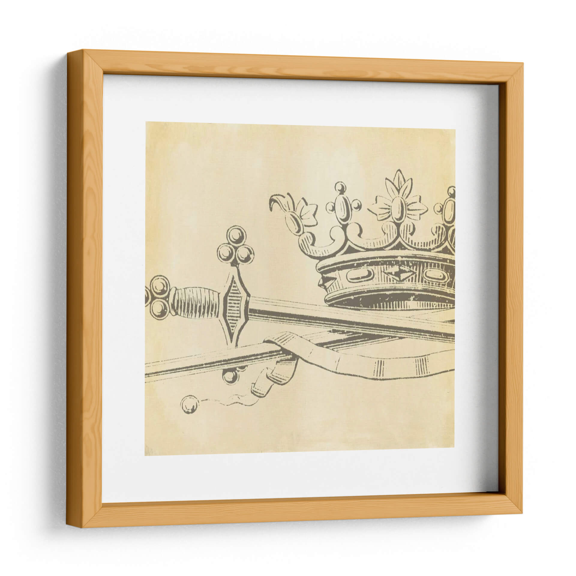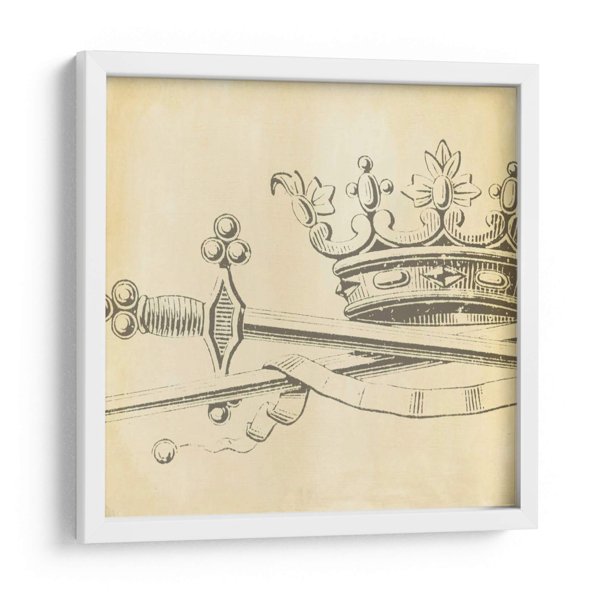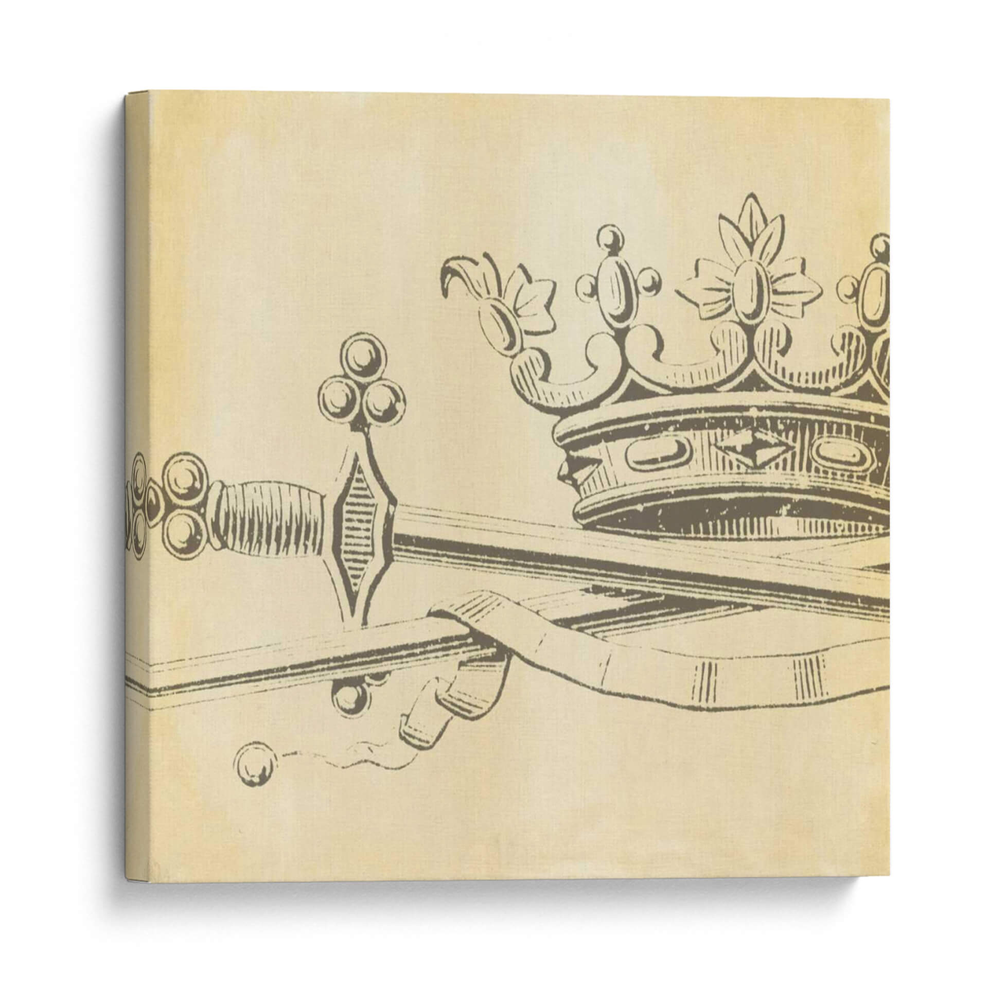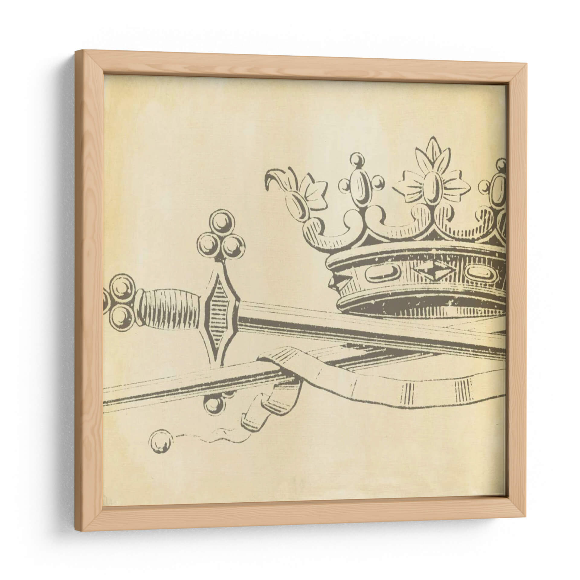 Emb acate en un viaje de elegancia y simbolismo con "Elegancia Decorativa Ix", una obra de arte que evoca poder y distinción. Esta pieza se caracteriza por su icónica representación de una corona entrelazada con una espada, elementos que tradicionalmente simbolizan la realeza, la autoridad y la nobleza. La paleta de colores predominante, con tonos sepia y beige que recuerdan al pergamino antiguo, aporta una sensación de atemporalidad y clasicismo, transportando al espectador a una era de caballeros y monarcas. El estilo de dibujo lineal, con un trazo firme pero delicado, confiere a la obra una sofisticación sutil, ideal para aquellos que aprecian el arte con profundidad histórica y un toque de dramatismo. La composición, centrada en estos símbolos de poder, crea un punto focal cautivador, perfecto para espacios que buscan transmitir carácter y un sentido de historia. "Elegancia Decorativa Ix" no es solo un cuadro, es una declaración de estilo, una pieza que añade un aire de grandeza y conversación a cualquier ambiente, ya sea un estudio privado, una oficina ejecutiva o una sala de estar con pretensiones de refinamiento. Deja que esta obra maestra infunda en tu hogar un aura de autoridad y belleza clásica.
