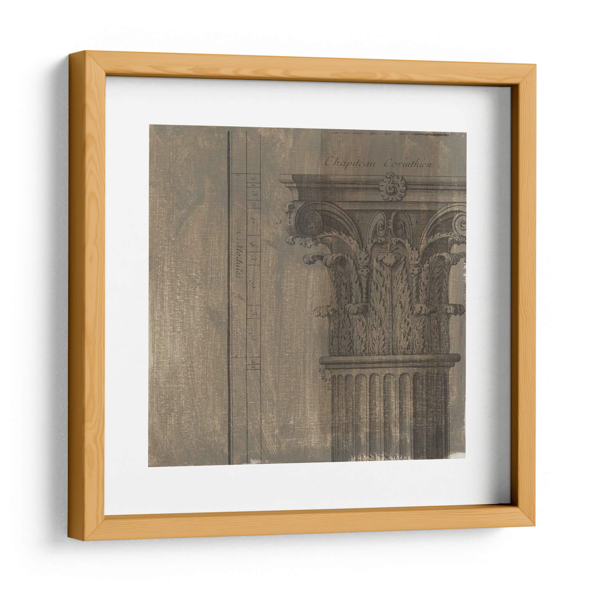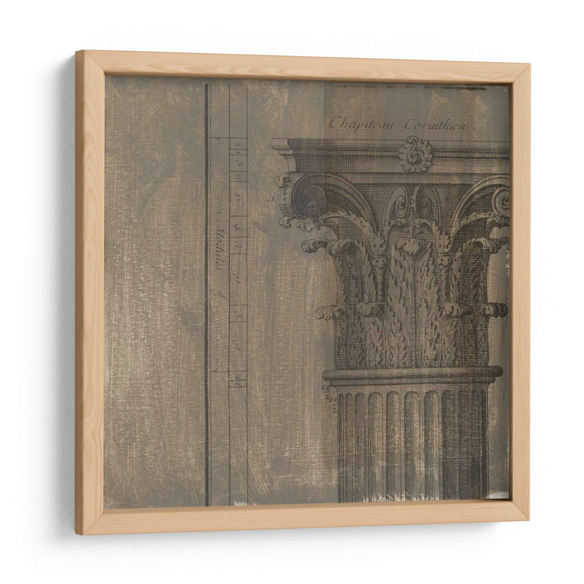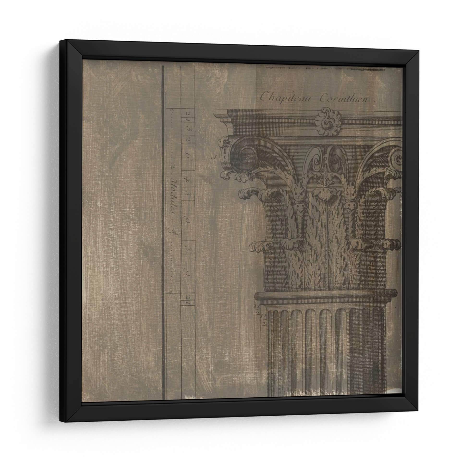 Transforma tu espacio con el cuadro decorativo 'Elegancia Decorativa VIII', una obra de arte que evoca la grandeza y el detalle arquitectónico de los capiteles corintios. La pieza presenta un diseño intrincado de estilo grabado, con líneas finas y sombreados que dan vida a la majestuosidad de la columna. Los tonos tierra y sepia dominan la paleta, creando una atmósfera de calidez, historia y sofisticación. El fondo texturizado, que simula un papel antiguo o un lienzo rústico, añade profundidad y un carácter vintage, perfecto para quienes buscan un toque de clasicismo revisitado en su decoración. "Chapiteau Corinthien" escrito en la parte superior y anotaciones en el lateral añaden un aire académico y de estudio, como si se tratara de un fragmento de un tratado de arquitectura. Esta obra es ideal para salones, estudios o bibliotecas, aportando un punto de interés intelectual y visual. Es un cuadro decorativo versátil que se integra a la perfección en estilos de decoración eclécticos, clásicos o industriales, añadiendo un elemento de refinamiento y arte atemporal. La composición centra la atención en la ornamentación detallada del capitel, invitando a la contemplación y al aprecio por la artesanía. Añade un toque de distinción y cultura a tus paredes con esta pieza única que combina la precisión del dibujo con una estética evocadora y serena.