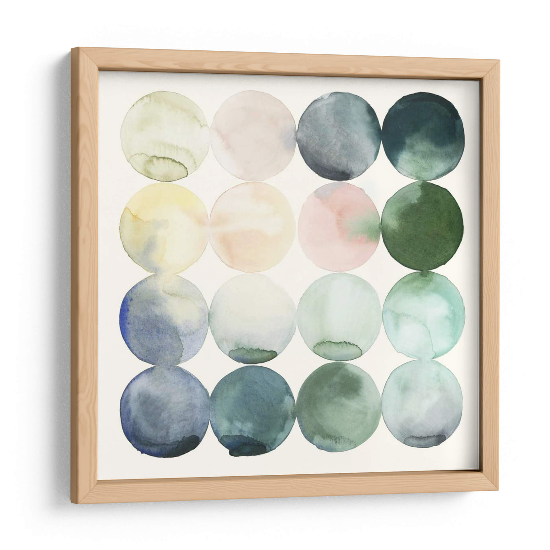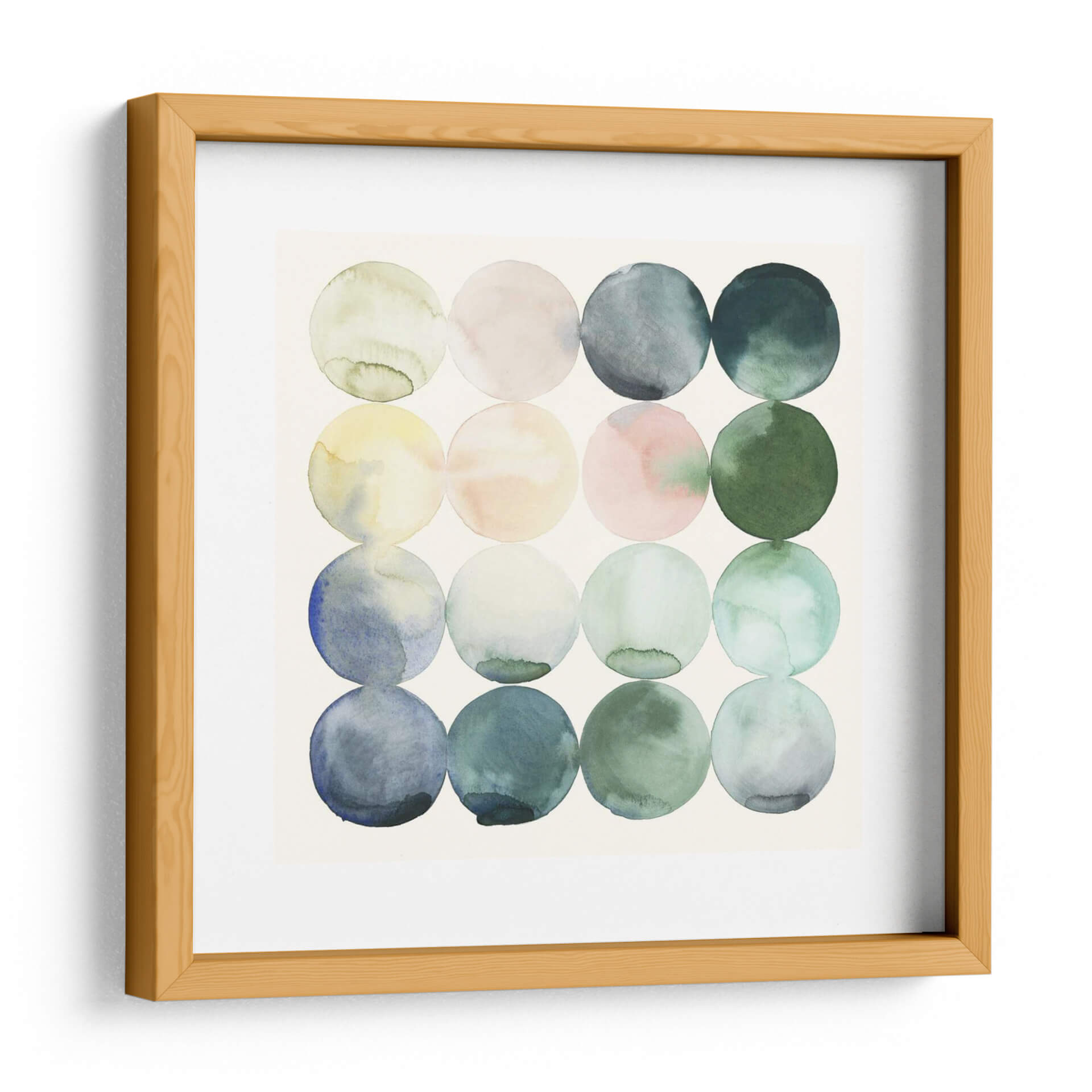 Sumérgete en la serenidad visual de "Hoops Pastel II", una cautivadora obra de arte de Grace Popp que transforma tu espacio con su delicada paleta y composición armoniosa. Este cuadro decorativo presenta una cuadrícula de círculos suaves, cada uno bañado en tonos pastel que varían desde el azul pálido y el verde menta hasta el rosa empolvado y el amarillo suave, evocando una sensación de calma y equilibrio. La técnica de acuarela, con sus transiciones fluidas y bordes etéreos, añade una dimensión de ligereza y sofisticación. La disposición geométrica de los círculos crea un ritmo visual sutil pero atractivo, perfecto para añadir un toque de arte contemporáneo a cualquier habitación. Ideal para dormitorios, salas de estar o estudios, este cuadro decorativo de estilo abstracto invita a la contemplación y al relax. Su paleta de colores suaves lo convierte en un complemento versátil para diversas decoraciones, desde las más minimalistas hasta las bohemias. "Hoops Pastel II" no es solo una pieza decorativa, es una invitación a la tranquilidad y a la apreciación de la belleza sutil del color y la forma. Transforma tu hogar en un oasis de paz con esta obra maestra que irradia serenidad y estilo contemporáneo.