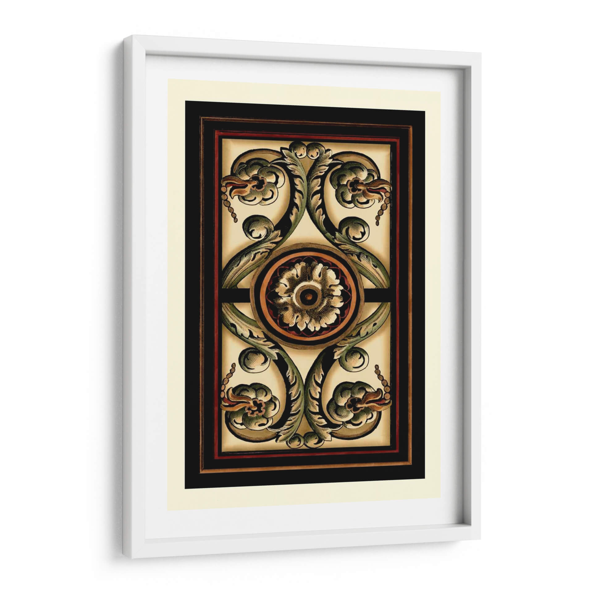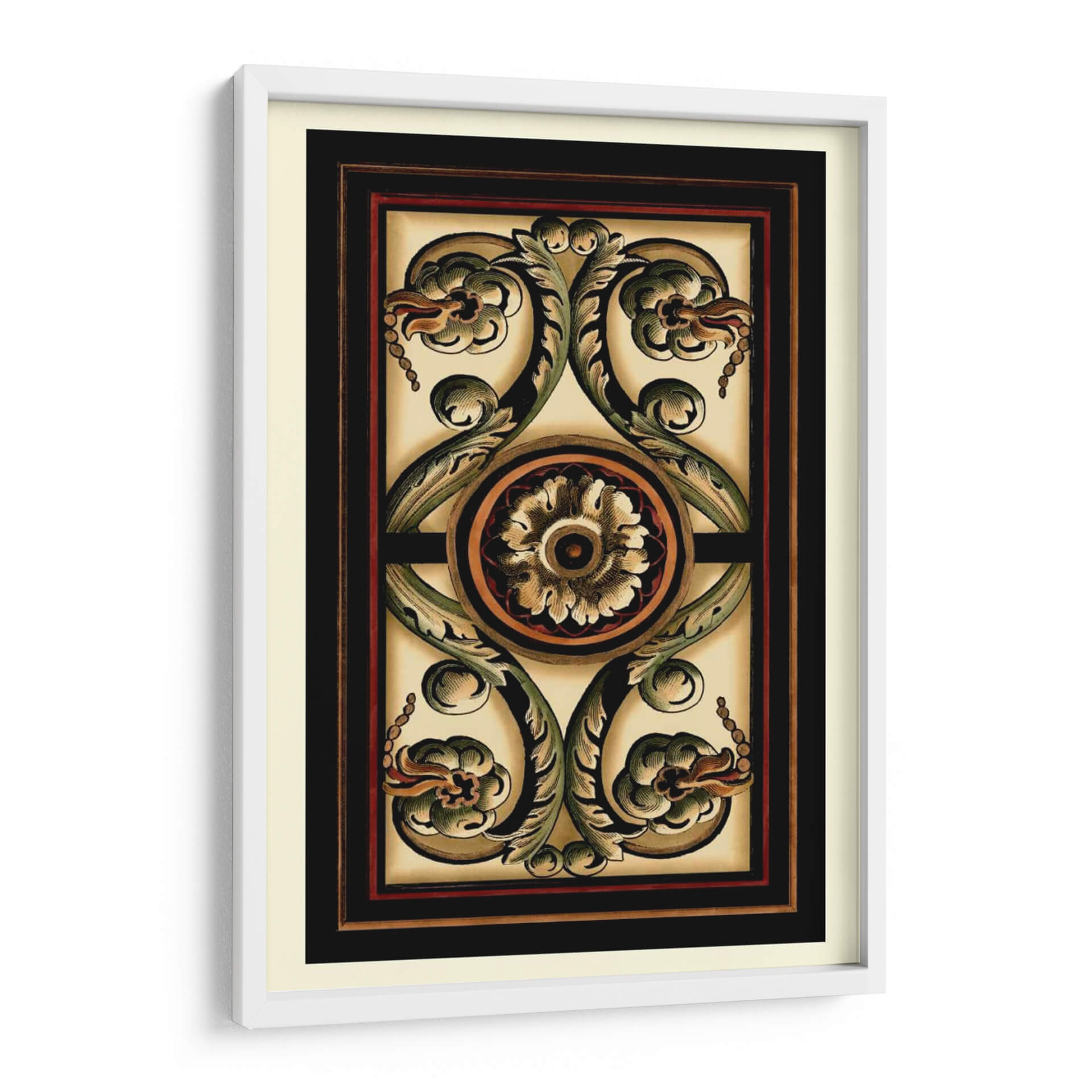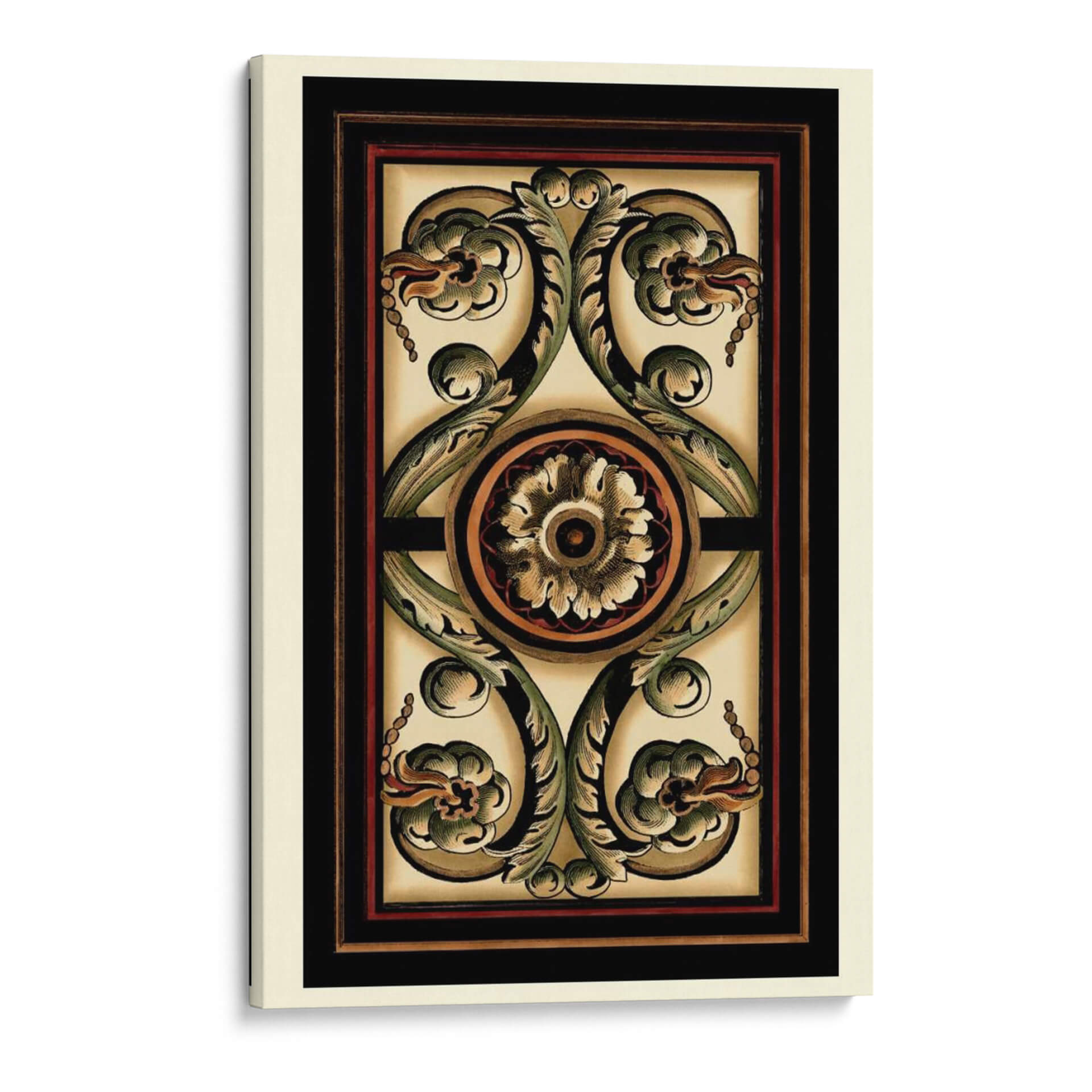 Sumérgete en la elegancia atemporal con "Motivos Del Panel Ii", una obra de arte digital que evoca la opulencia y el detalle del diseño clásico. Este cuadro decorativo presenta una intrincada composición simétrica, dominada por un motivo central floral que irradia desde un círculo concéntrico. A su alrededor, elementos curvilíneos y hojas estilizadas se entrelazan, creando un patrón orgánico que recuerda a los ornamentos renacentistas o barrocos. La paleta de colores, rica en tonos tierra, verdes musgo y sutiles toques de ocre y terracota, aporta una sensación de calidez y profundidad. El fondo neutro resalta la complejidad del diseño, permitiendo que cada detalle cobre vida. "Motivos Del Panel Ii" es ideal para espacios que buscan un toque de sofisticación y un aire de historia, como salones formales, estudios o vestíbulos de hoteles. Su diseño detallado y su atmósfera serena lo convierten en una pieza perfecta para añadir carácter y un punto focal de interés a cualquier decoración interior. Este cuadro decorativo es una invitación a apreciar la belleza de la ornamentación y la maestría del diseño.