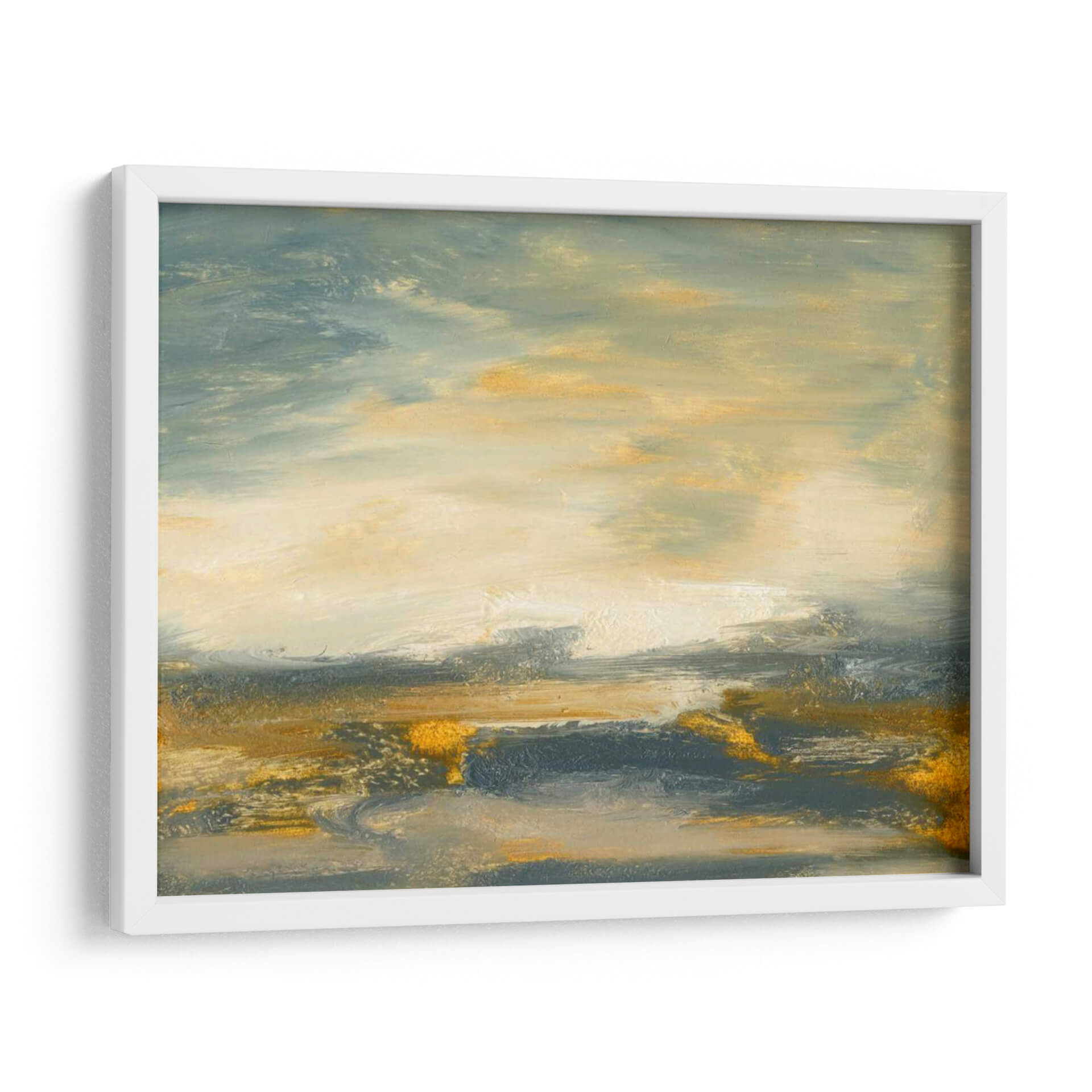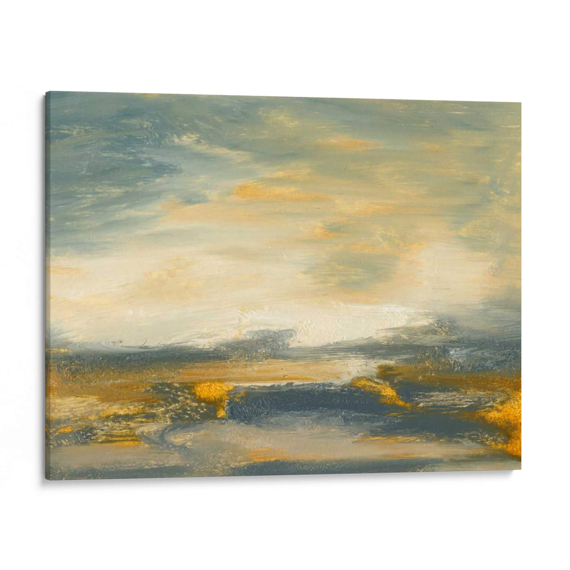 Sumérgete en la serena belleza de "Precioso Día II", una obra abstracta cautivadora de Sharon Gordon. Este cuadro decorativo evoca la tranquilidad de un paisaje bañado por la luz dorada del amanecer o el atardecer. La paleta de colores, dominada por suaves tonos grises azulados y vibrantes toques de ocre y dorado, crea una atmósfera de calma y reflexión. Las pinceladas expresivas y texturizadas sugieren la fluidez del cielo y la tierra, invitando a la contemplación. "Precioso Día II" es ideal para añadir un toque de sofisticación y serenidad a cualquier espacio, ya sea una sala de estar, un dormitorio o una oficina moderna. Su estilo abstracto contemporáneo se integra a la perfección en diversas decoraciones, aportando un punto focal elegante y evocador. Transforma tu hogar en un santuario de paz y estilo con esta pieza artística única que captura la esencia de un momento efímero y hermoso. Perfecta para quienes buscan arte que inspire tranquilidad y eleve el espíritu, esta obra es una invitación a la pausa y al disfrute estético.