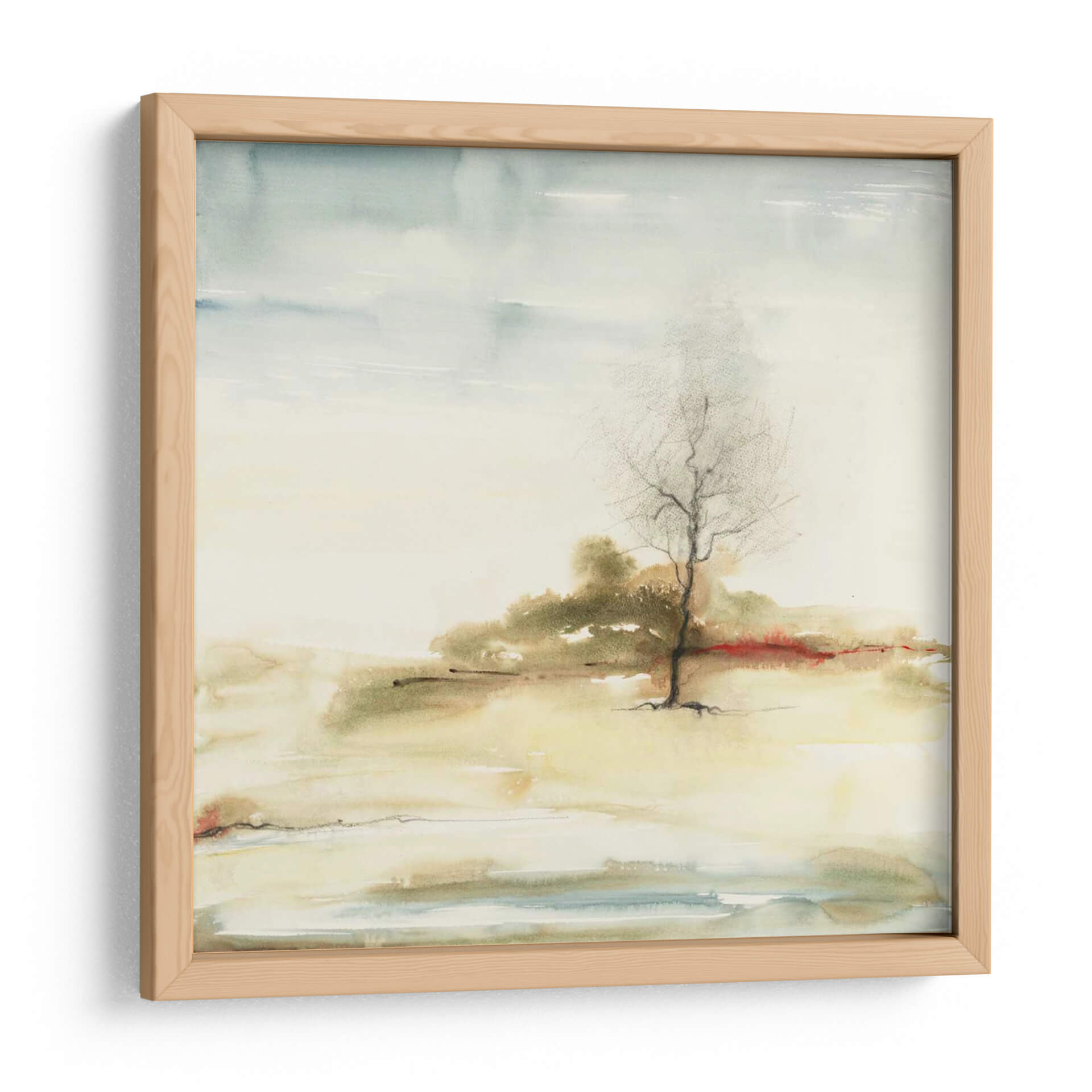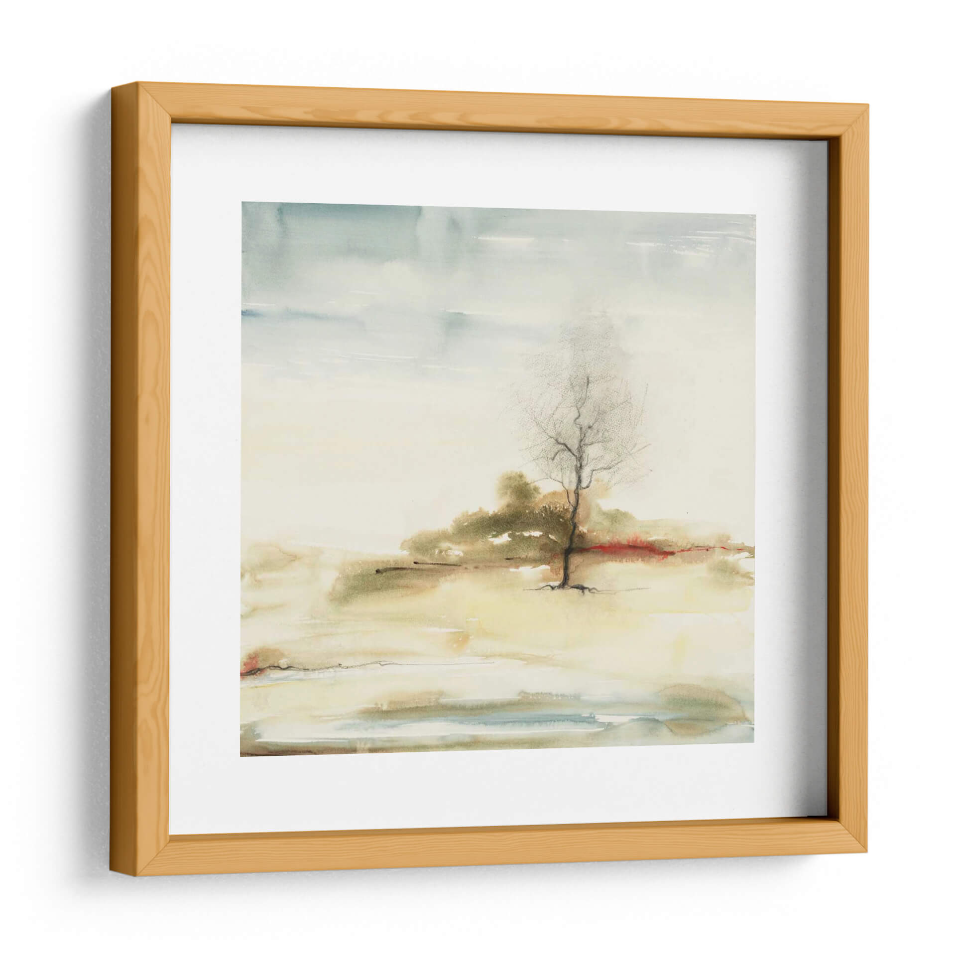Sumérgete en la serenidad etérea de "Solsticio 1", una obra de arte contemporáneo que captura la esencia de un paisaje desolado pero evocador. Este cuadro decorativo, creado por Inc. Dag, te transporta a un espacio de contemplación con su delicada paleta de colores. Tonos tierra suaves, ocres cálidos y sutiles toques de azul celadón se funden en una atmósfera tranquila y introspectiva. La composición se centra en un árbol solitario, sus ramas desnudas dibujando un patrón delicado contra un cielo difuminado, sugiriendo resiliencia y la belleza de la quietud invernal. Las pinceladas sueltas y la técnica de acuarela aportan una sensación de movimiento y fluidez, invitando a la meditación. "Solsticio 1" es ideal para añadir un toque de calma y sofisticación a cualquier hogar u oficina, siendo perfecto para salas de estar, dormitorios o estudios donde se busca un refugio visual. Deja que esta pieza única de arte abstracto te inspire paz y reflexión, convirtiéndose en un punto focal sutil pero poderoso en tu decoración.