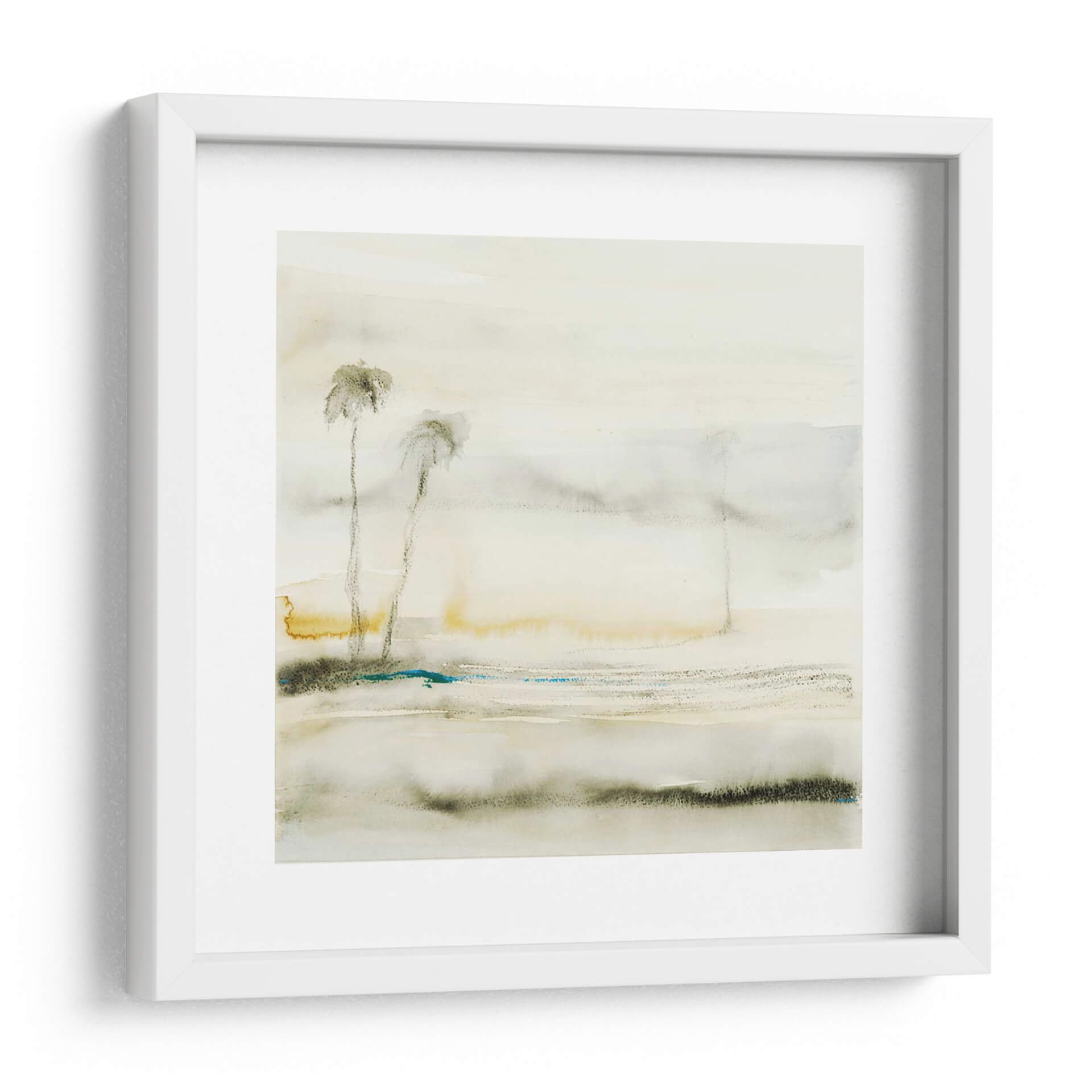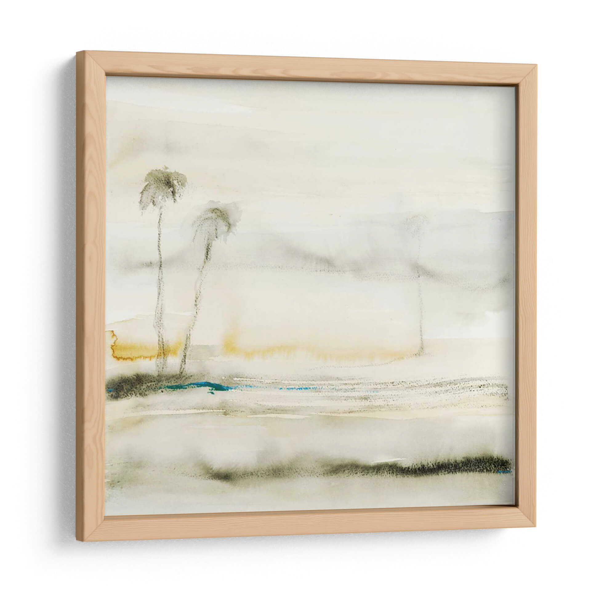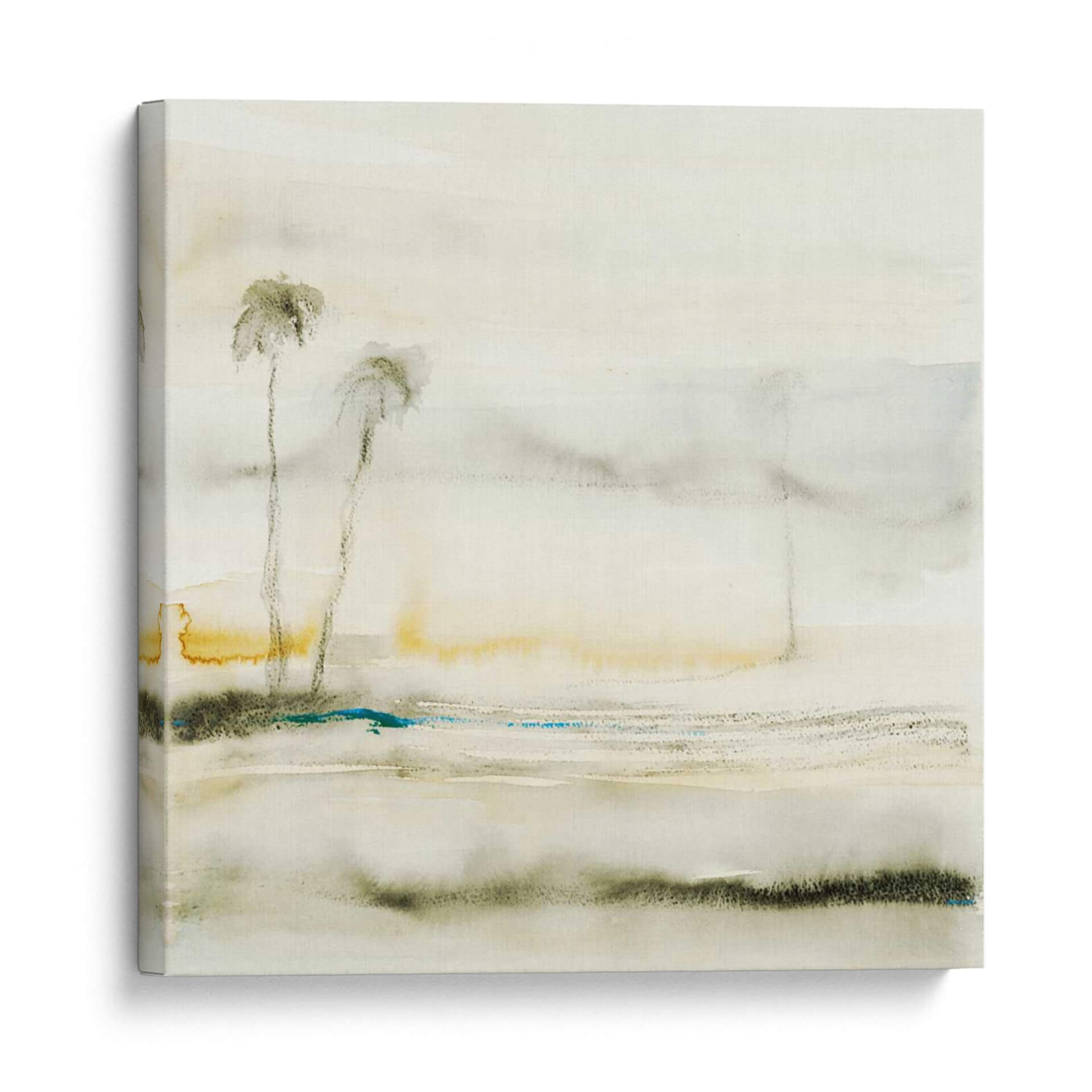 Sumérgete en la serena belleza de "Solsticio 5", una obra de arte que evoca la tranquilidad de un paisaje etéreo. A través de pinceladas delicadas y una paleta de colores sutiles, esta pieza captura la esencia de un atardecer o amanecer sereno. Las formas sugeridas de palmeras se alzan con elegancia contra un cielo difuminado, creando una atmósfera de paz y contemplación. Los tonos suaves de ocre, gris y blanco se entrelazan con toques de azul vibrante y negro, aportando profundidad y contraste a la composición. El estilo minimalista y etéreo invita a la introspección, haciendo de "Solsticio 5" el complemento perfecto para espacios que buscan un refugio de calma, como dormitorios, estudios o salas de estar donde se anhela un ambiente relajado. Este cuadro decorativo es ideal para quienes aprecian el arte abstracto con una conexión sutil con la naturaleza, añadiendo un toque de sofisticación y serenidad a cualquier rincón de tu hogar u oficina.