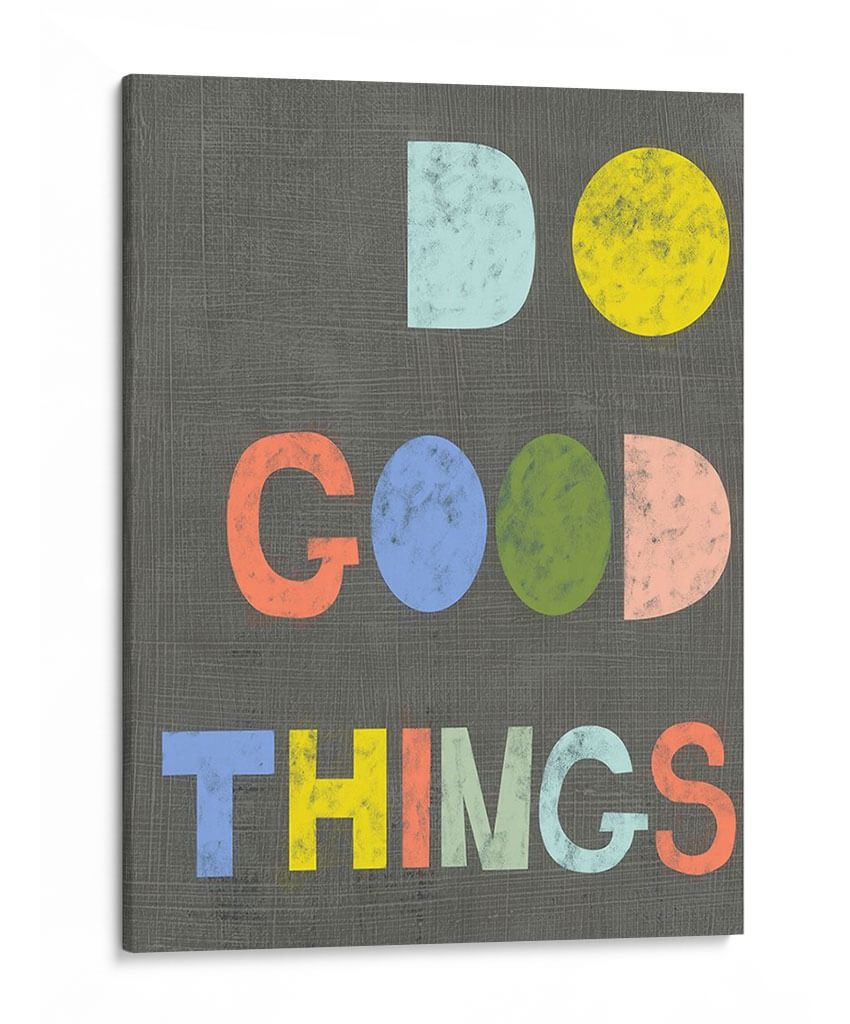 Inyecta optimismo y estilo en tu espacio con "Chat II", una obra de arte contemporáneo que irradia positividad. Este cuadro decorativo presenta la inspiradora frase "DO GOOD THINGS" en una tipografía audaz y colorida, sobre un fondo texturizado de color gris carbón. La paleta de colores vibrantes, que incluye tonos pastel y primarios como azul cielo, amarillo sol, naranja coral, verde musgo y rosa pálido, contrasta maravillosamente con el fondo oscuro, creando un efecto visual dinámico y alegre. La composición tipográfica es limpia y moderna, con cada letra y círculo de forma geométrica perfectamente definidos, invitando a la reflexión y a la acción positiva. Ideal para espacios que buscan un toque de motivación y calidez, como una oficina en casa, una sala de estar juvenil o incluso una cocina. "Chat II" no es solo una pieza decorativa, es un recordatorio diario para esparcir bondad. Transforma tu pared en una fuente de inspiración con este cuadro que combina diseño contemporáneo y un mensaje poderoso.