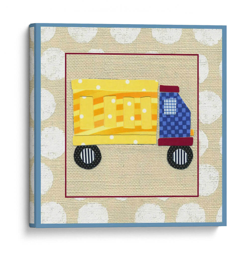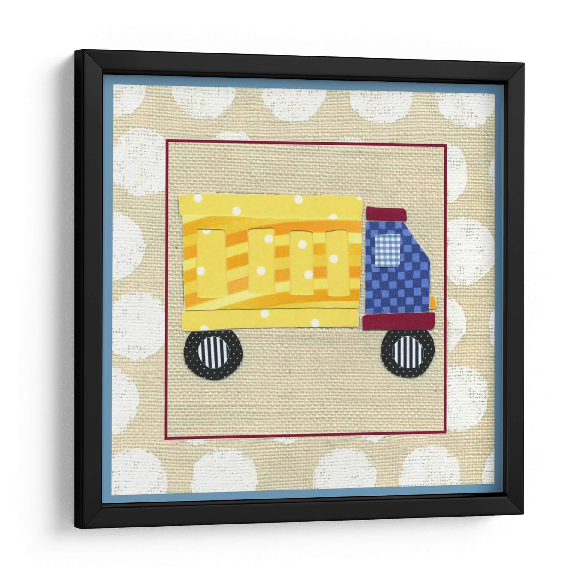 Transforma cualquier espacio con este encantador cuadro decorativo del artista Chariklia Zarris. La obra, titulada "Ejs Dumptruck", presenta un diseño lúdico y colorido de un camión volquete, ideal para inyectar una dosis de alegría y energía a habitaciones infantiles, zonas de juego o incluso a oficinas creativas. La composición utiliza una paleta vibrante de amarillos, azules y toques de rojo, que contrasta maravillosamente con el fondo texturizado de lunares blancos sobre un lienzo de tono arena. El estilo artístico, que evoca la técnica del collage o appliqué, crea una sensación de tridimensionalidad y textura, añadiendo profundidad a la pieza. Las formas simples y los patrones geométricos, como los lunares y el entramado en la cabina del camión, le otorgan un aire moderno y juguetón. Este cuadro decorativo no solo es una pieza de arte visualmente atractiva, sino que también evoca sentimientos de diversión, construcción y aventura. Es perfecto para aquellos que buscan añadir un elemento distintivo y con carácter a su decoración, creando un punto focal que seguramente generará conversaciones y sonrisas. Añade un toque de originalidad y color a tu hogar u oficina con esta obra única.